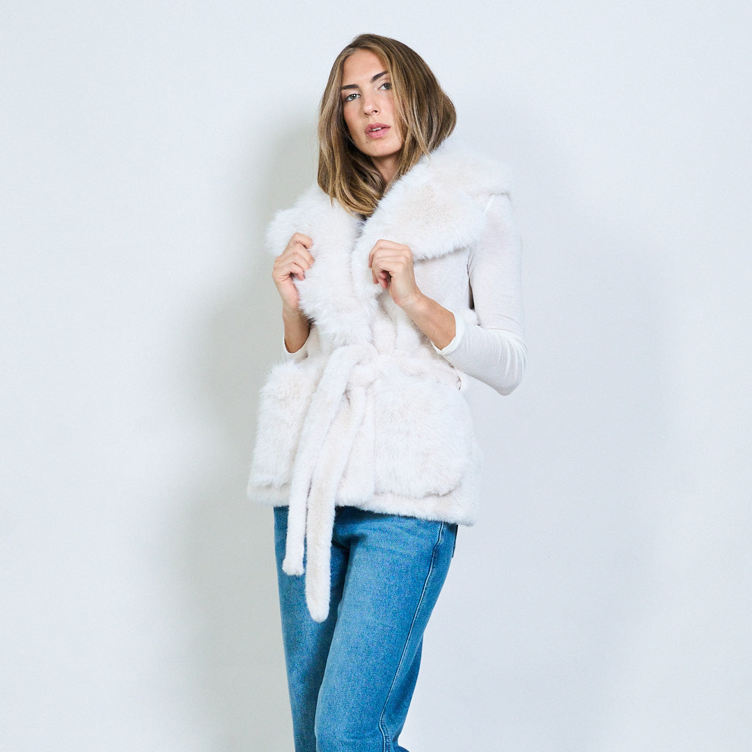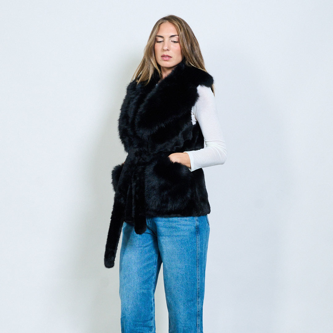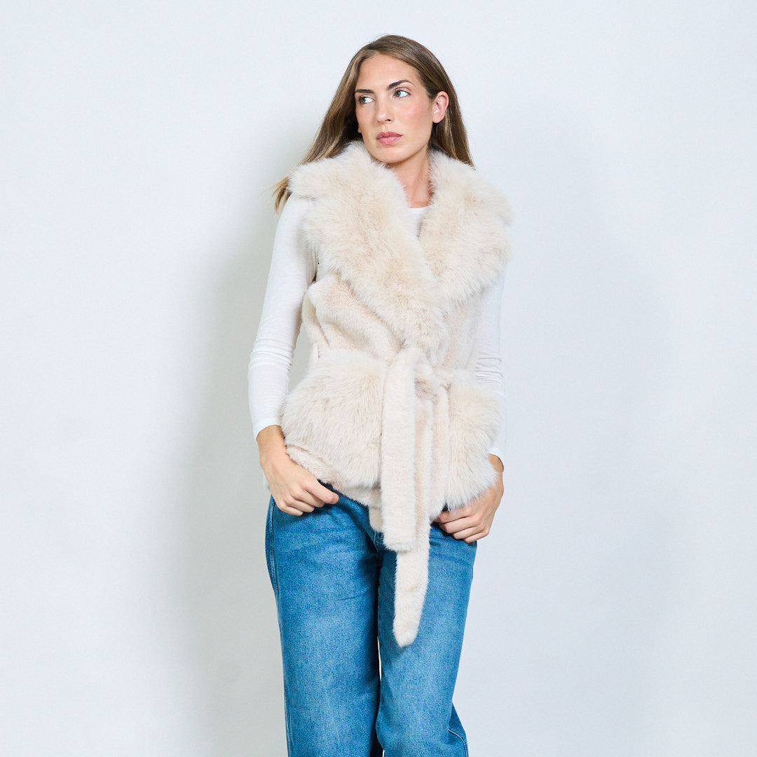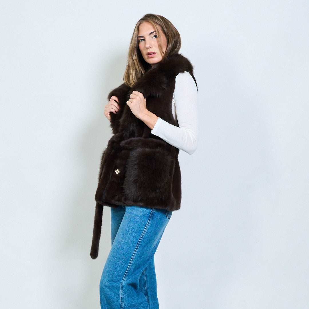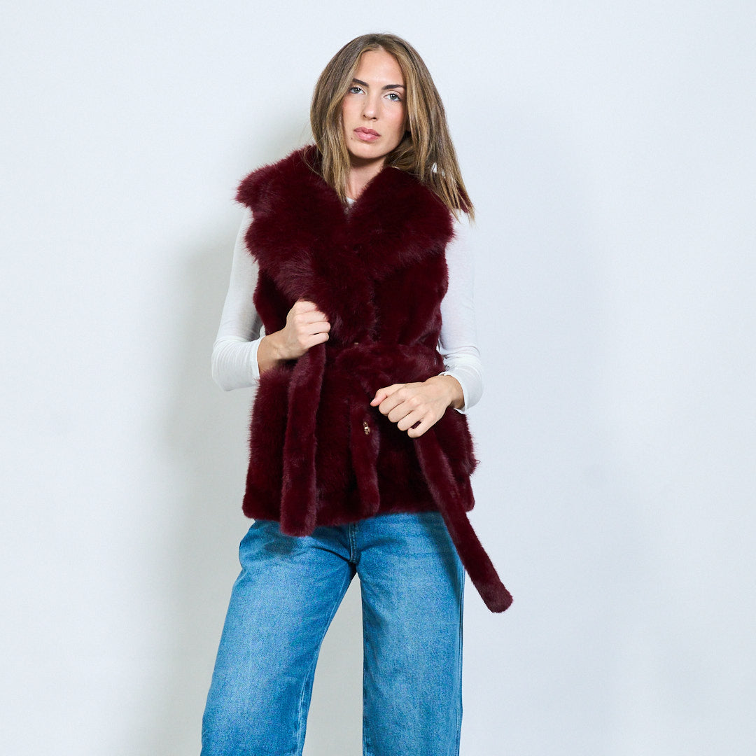 Луксозна дълга козина с изкуствена козина с колан и шал на едро
