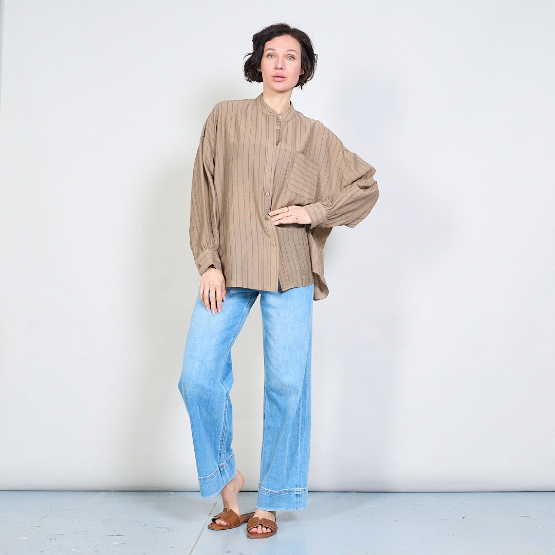 Раирана мандарина яка блуза на едро