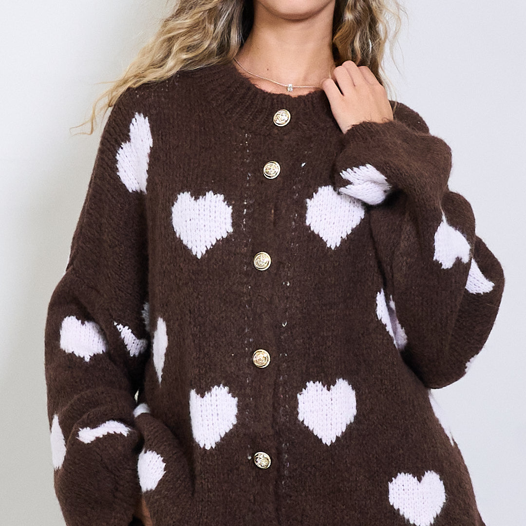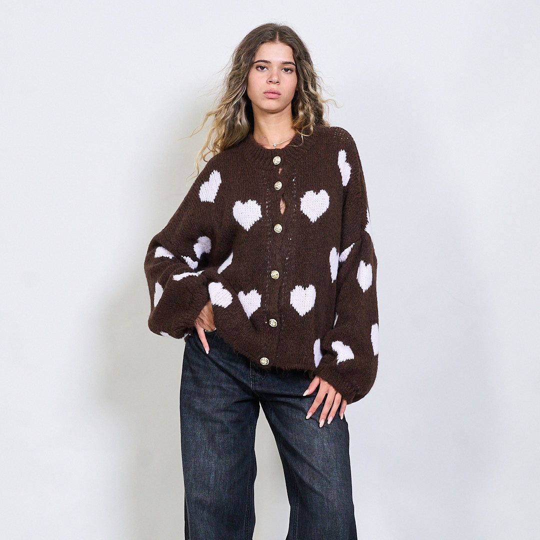 Сърце Жакард пухкав плетен жилет със златни копчета на едро