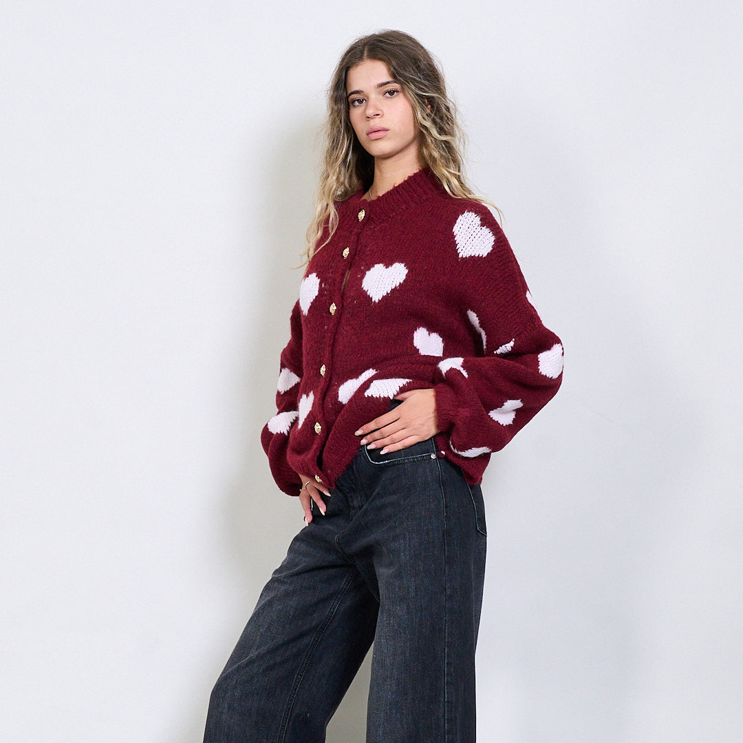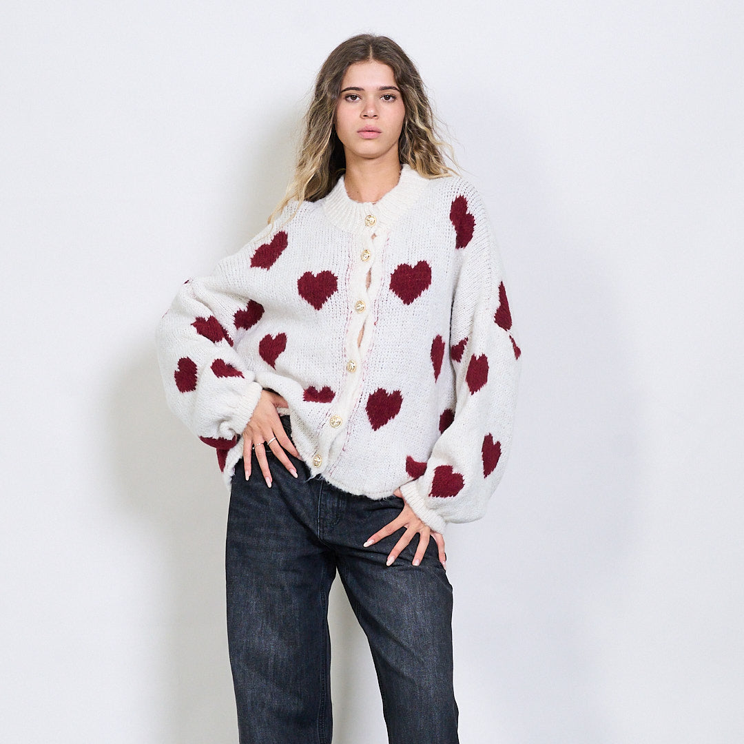 - Мек и пухкав плетен жилет с все по-голямо сърце Жакард