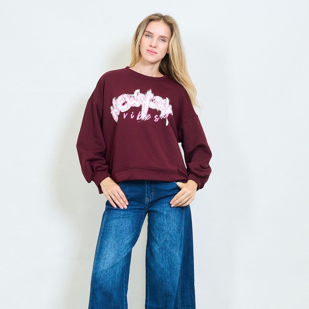 - Смел „Ню Йорк вибрации“ предния печат с детайли с ефект на боя
