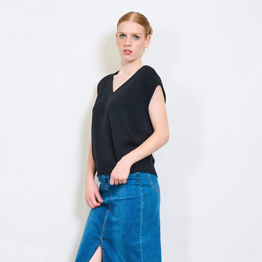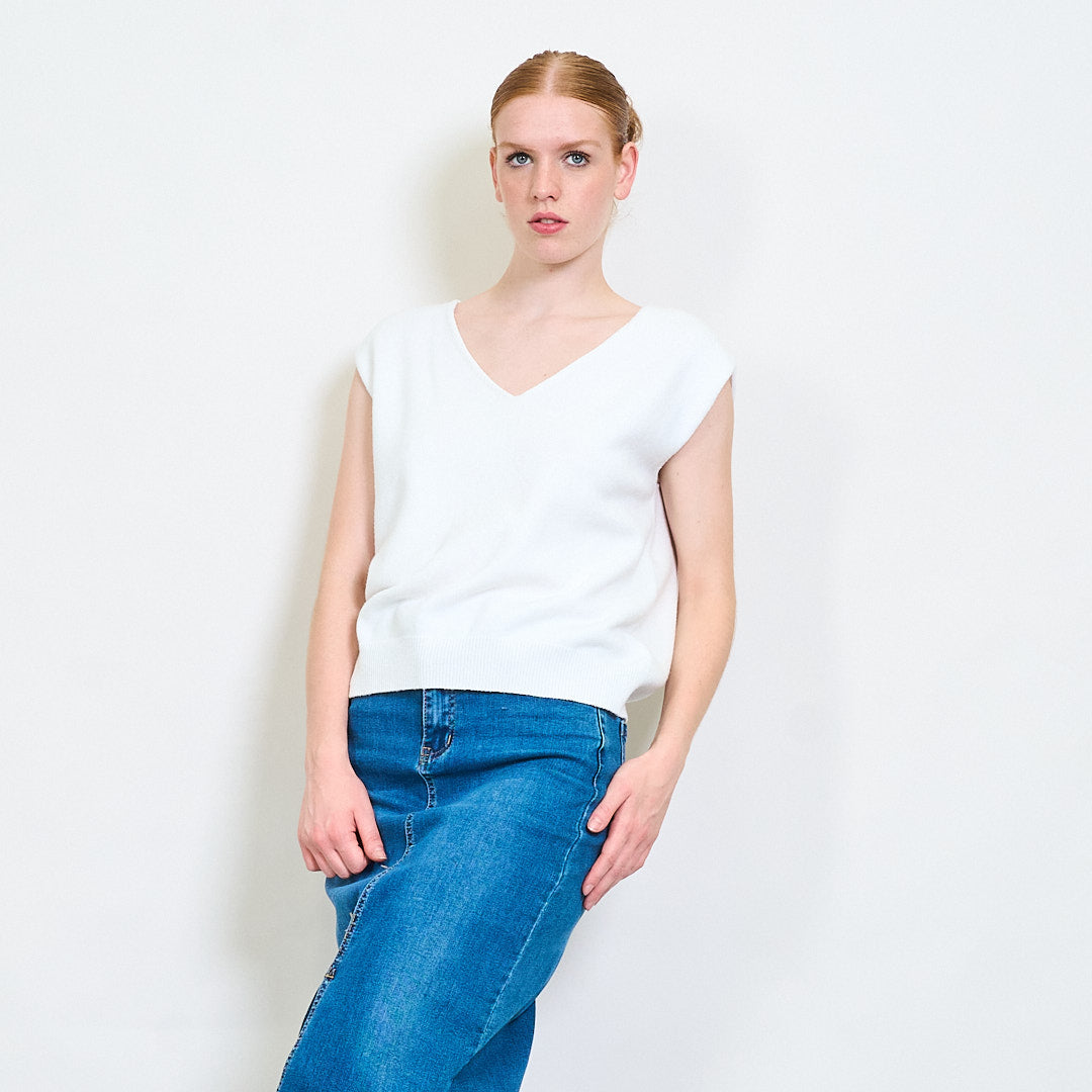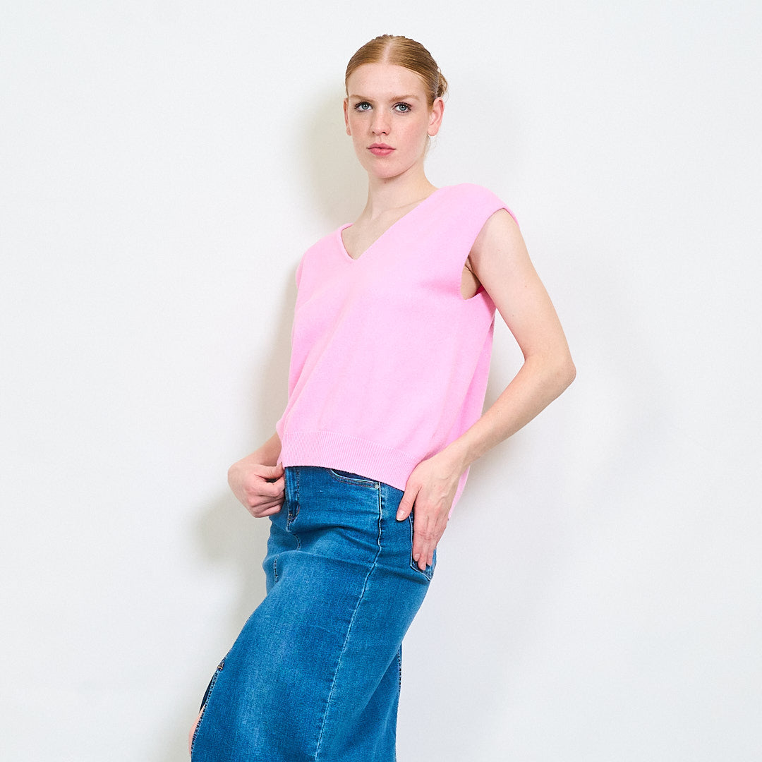 - Чиста V-образно деколте, идеална за наслояване върху ризи или блузи