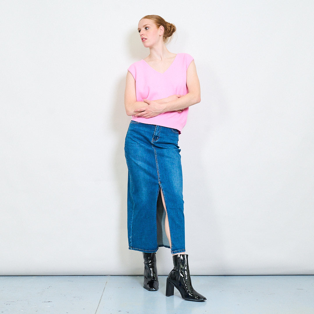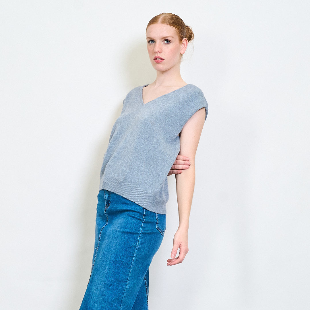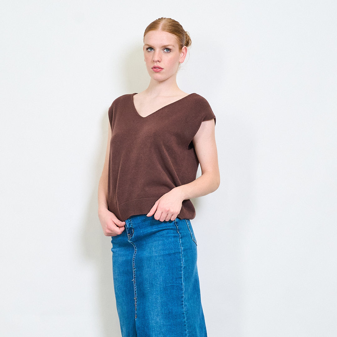 - Чиста V-образно деколте, идеална за наслояване върху ризи или блузи