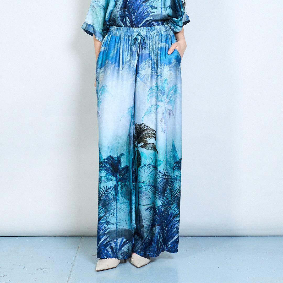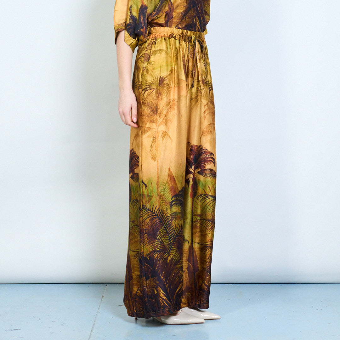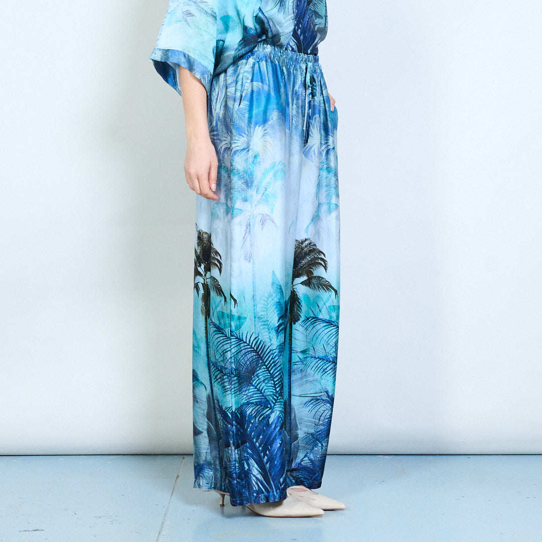 Спокойни панталони с щампа на флорални палми и еластична талия на едро