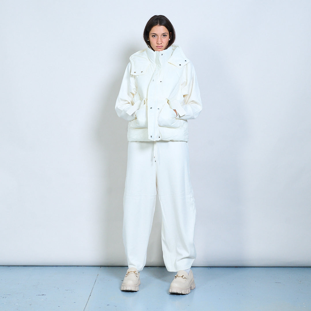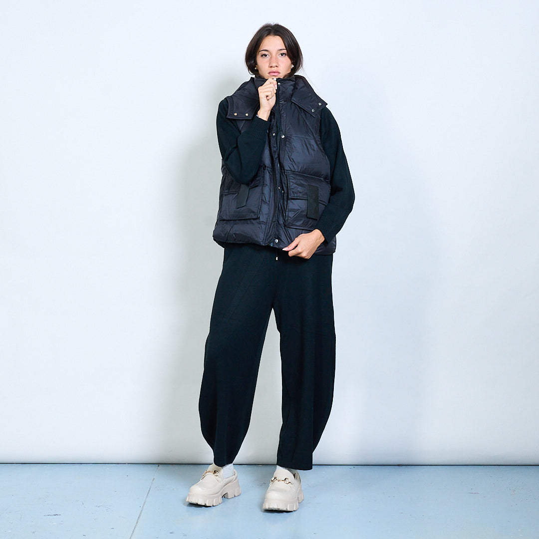 Координатен комплект с подплатена жилетка, пуловер и спокойни панталони на едро