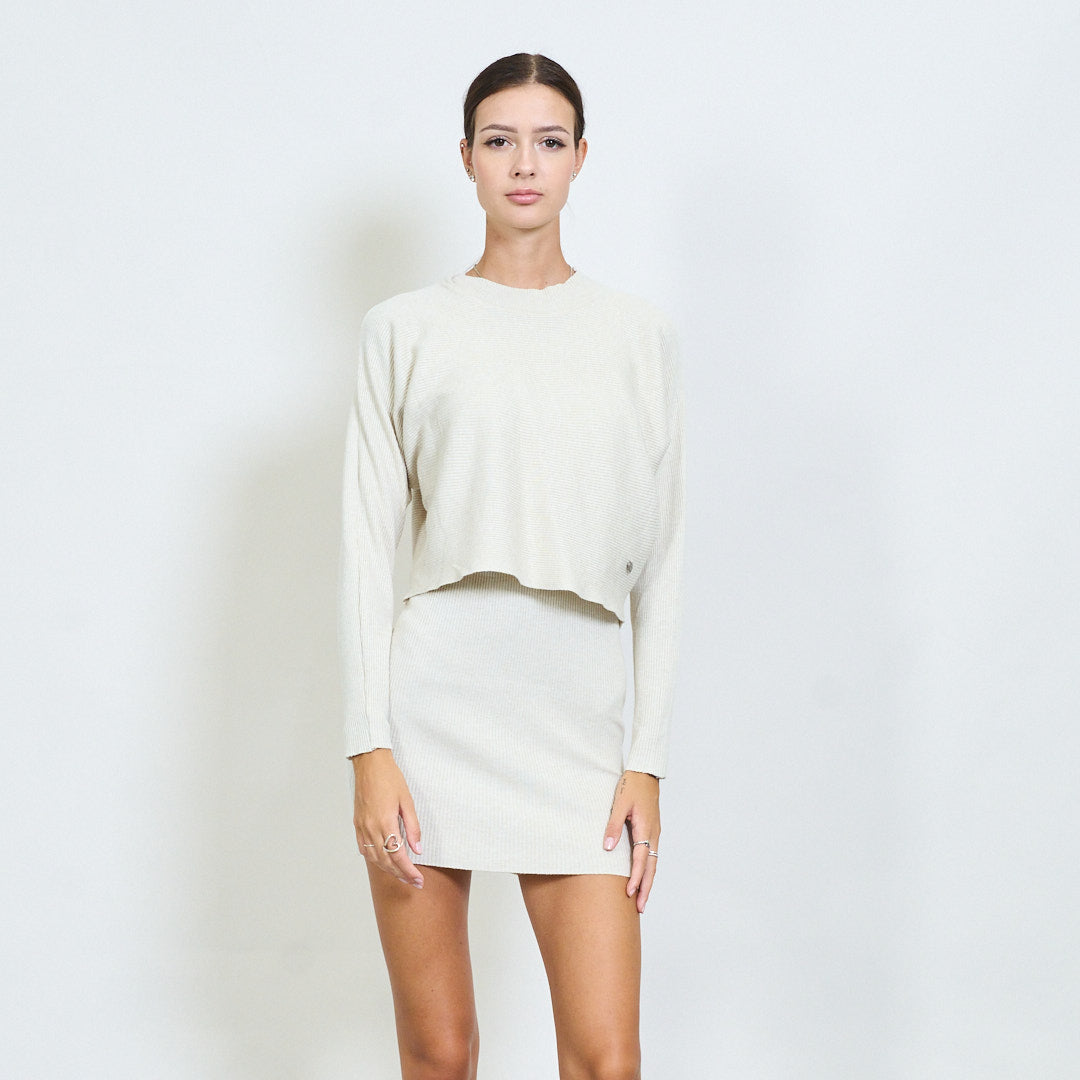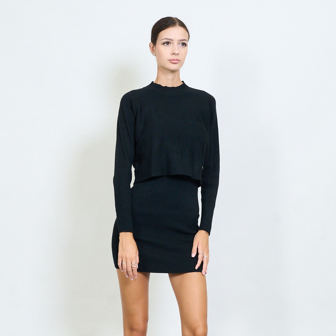 - Оребрен комплект с две части, включително рокля с пуловер и без ръкави