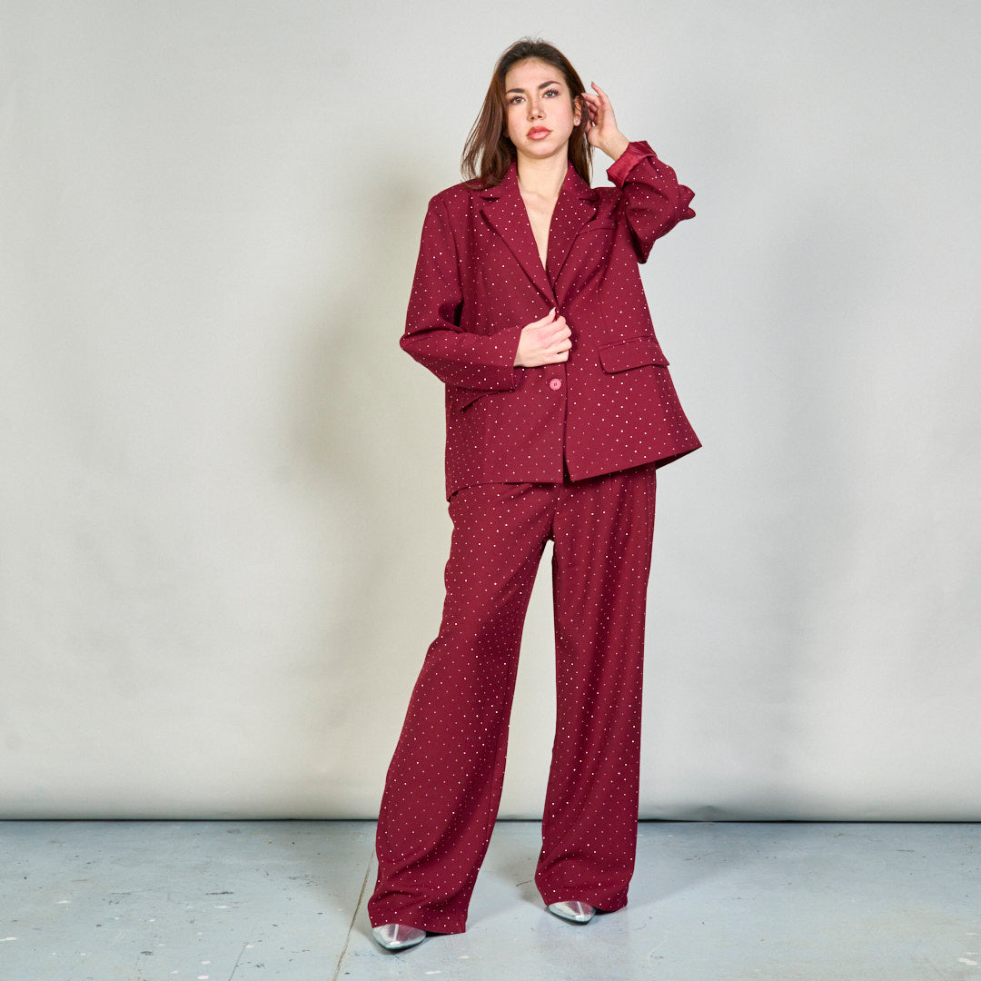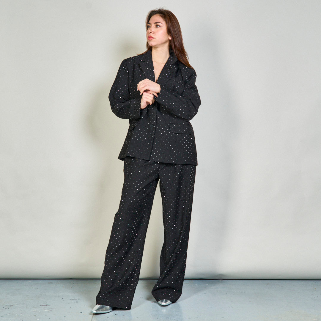Полка точка блейзър и панталони с широк крак поставете на едро