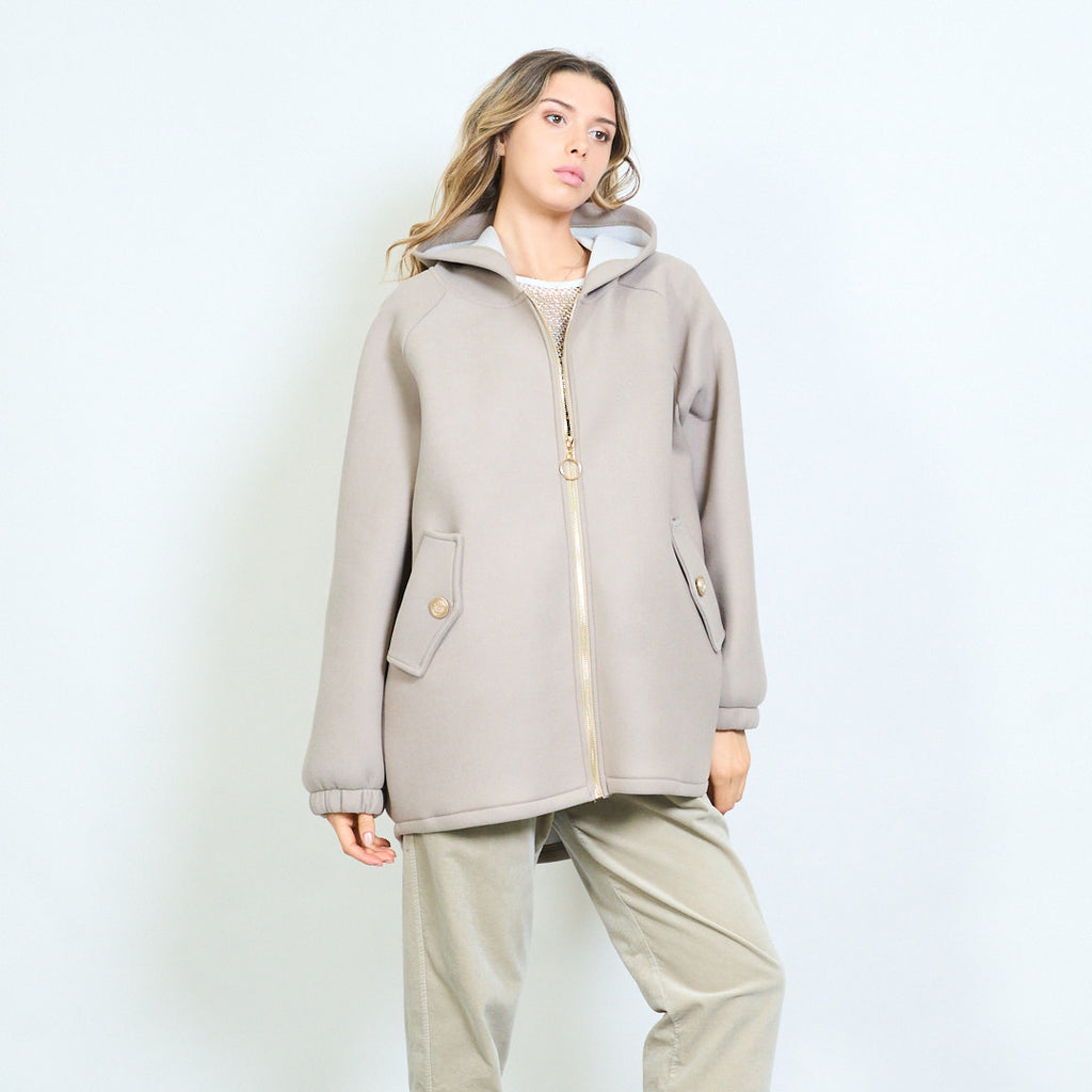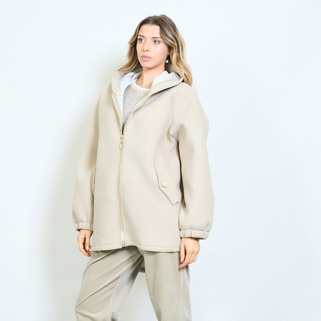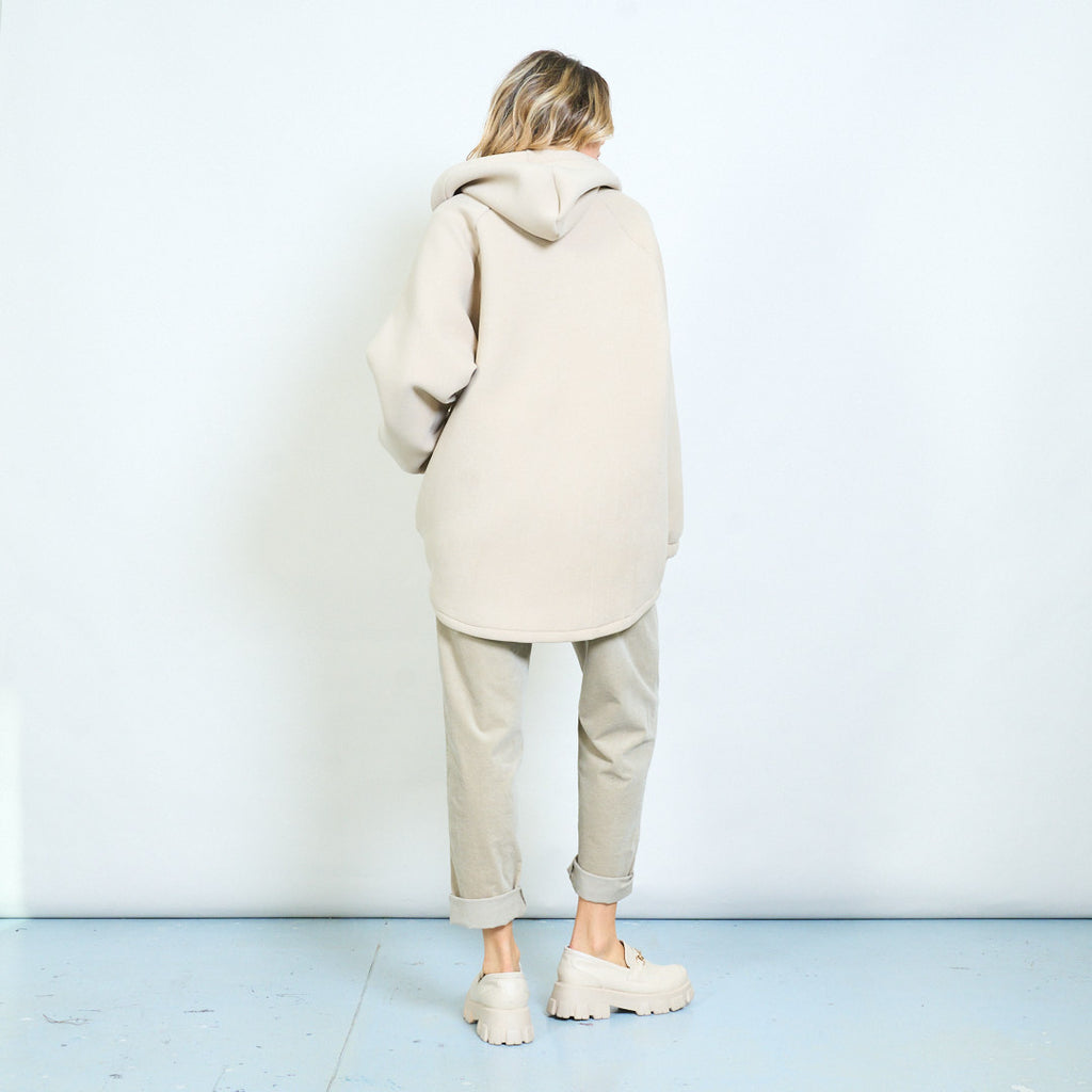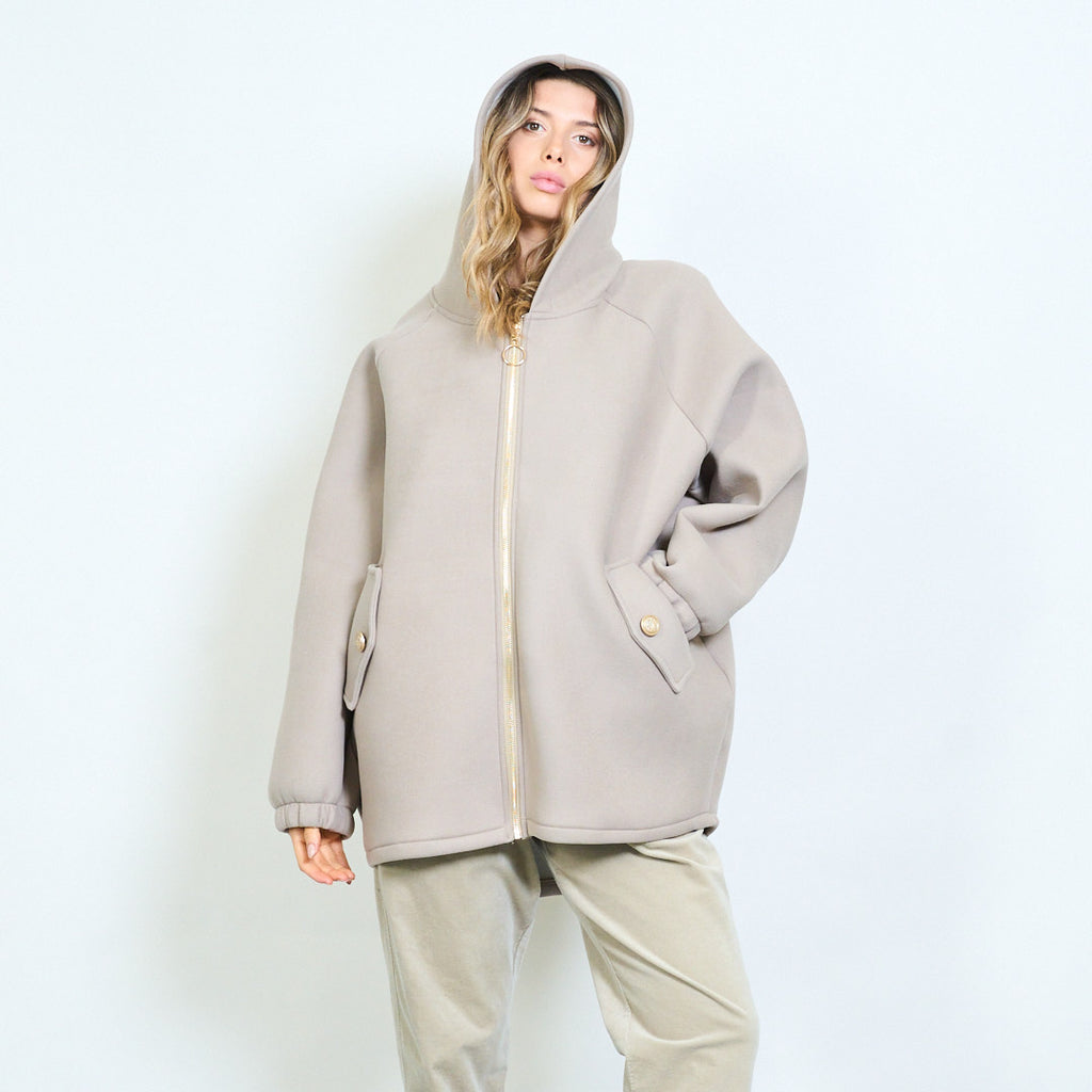 • Прикрепена качулка с детайл с цип за издърпване на пръстена