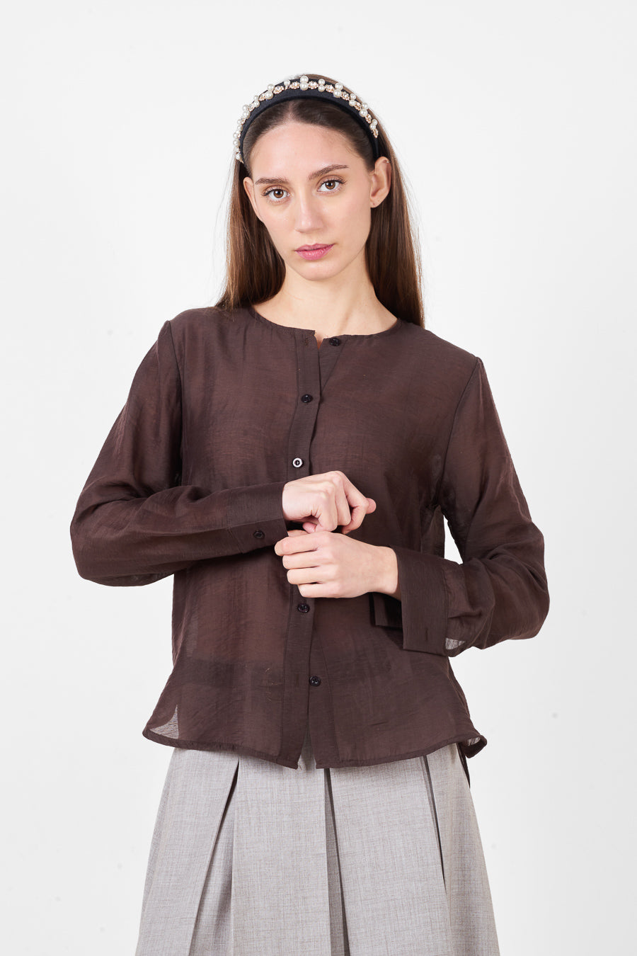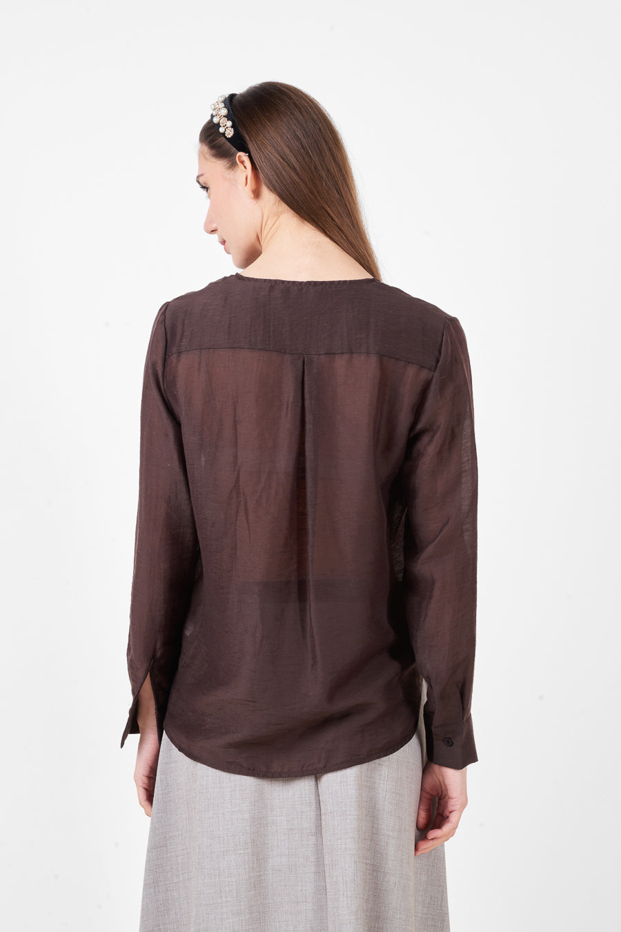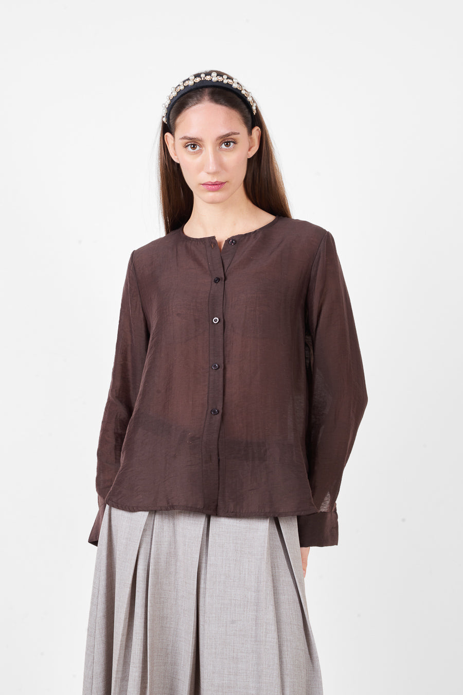 Лека риза с копчета и обло деколте с дълги ръкави на едро