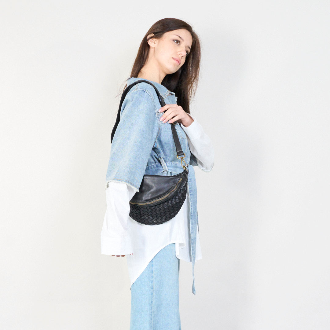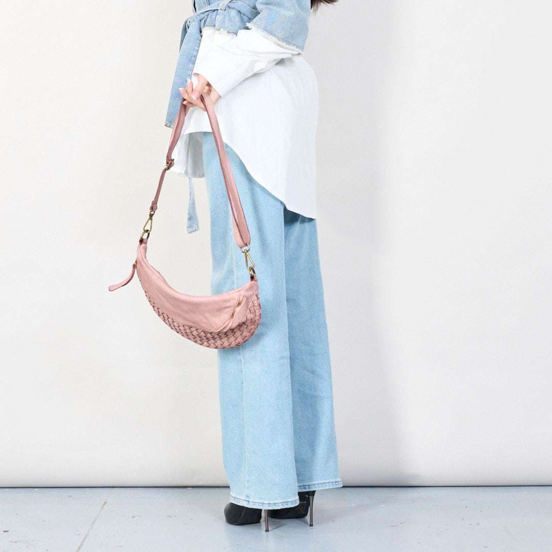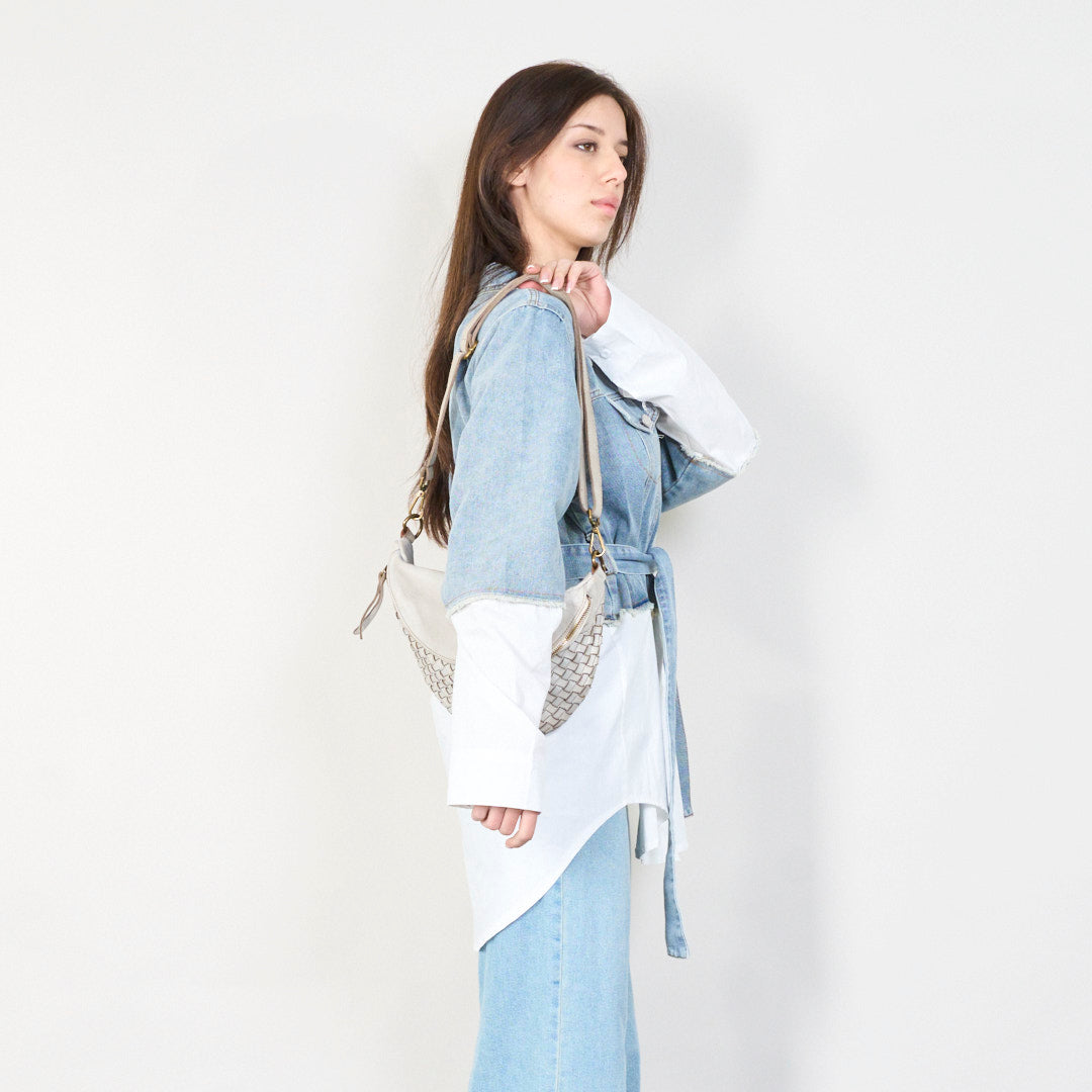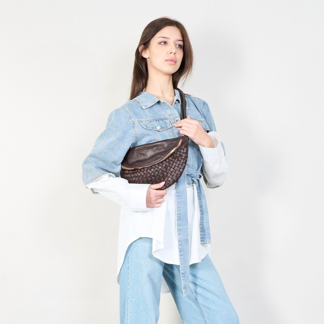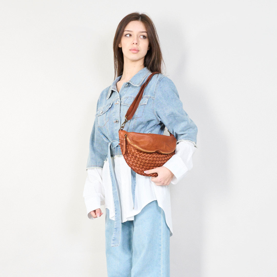 Модерна тъкана кожена чанта с кръстосано тяло на едро