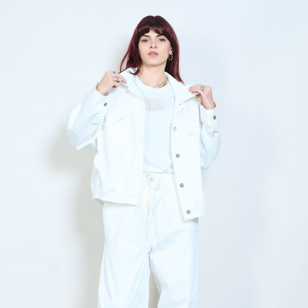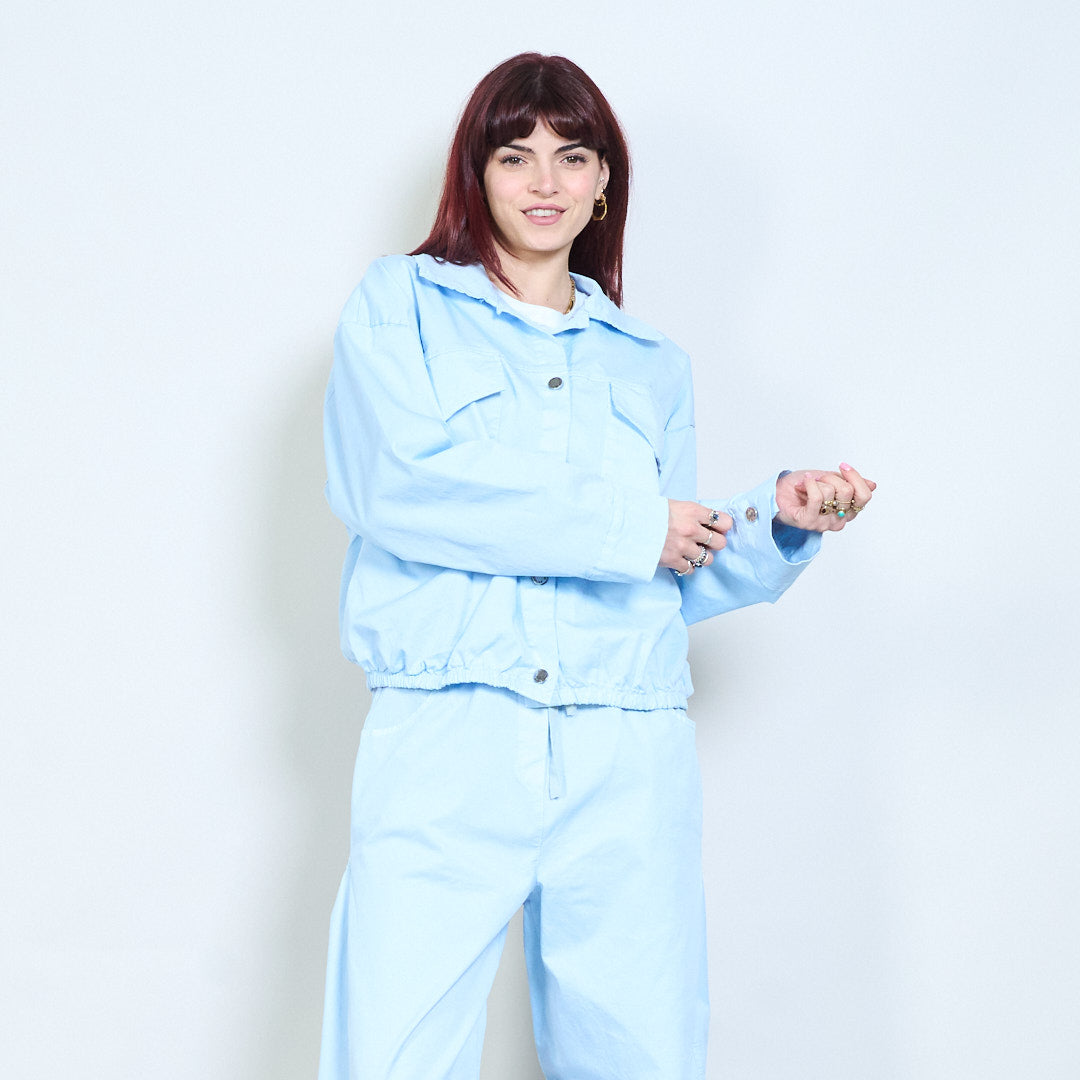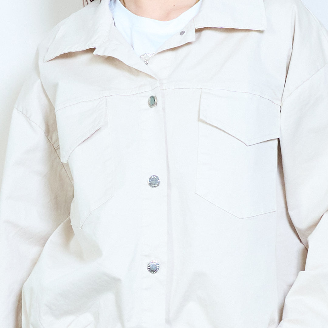 Универсално изрязано яке с копчета и джобове на едро