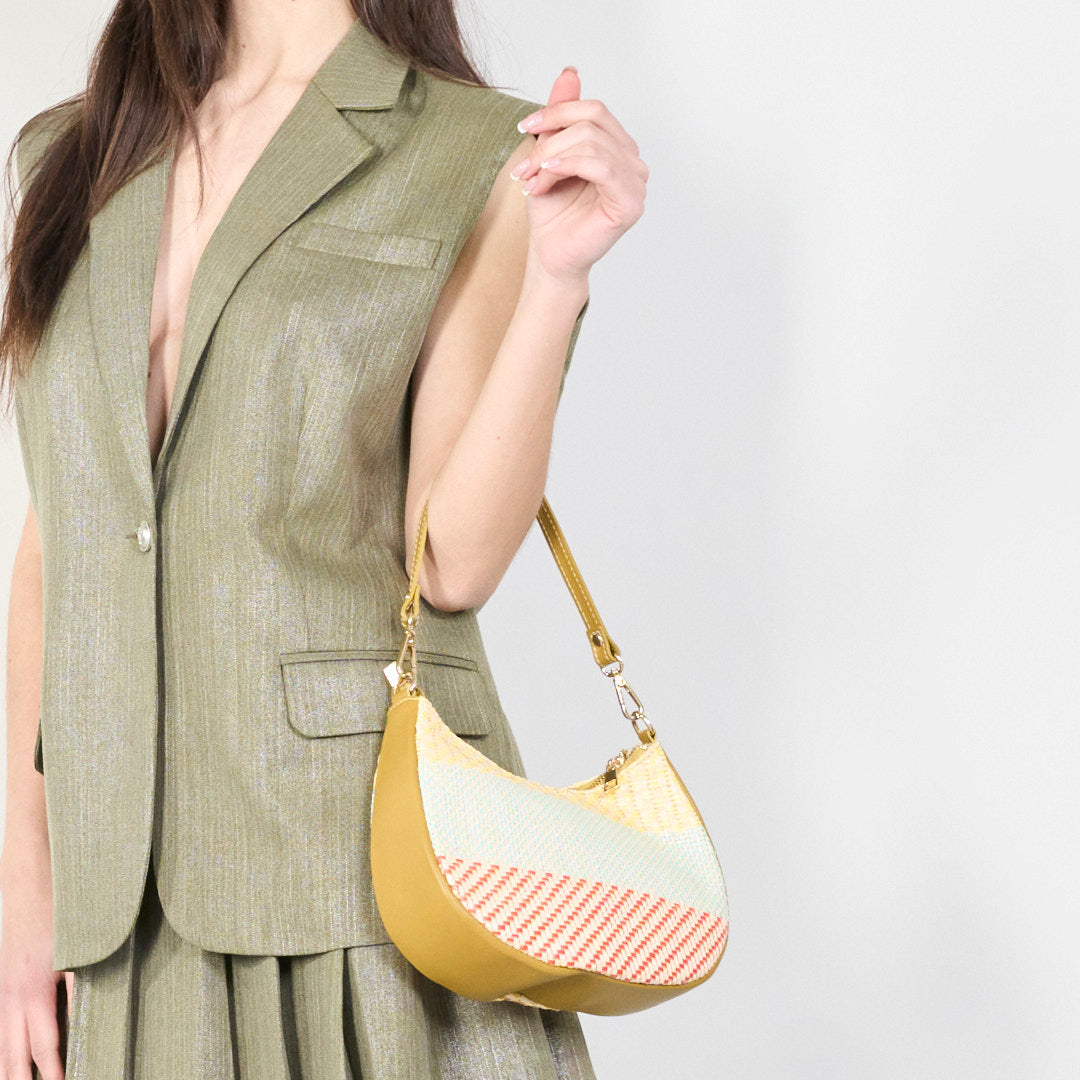 Изтъкана слама чанта за рамо с кожена облицовка на едро