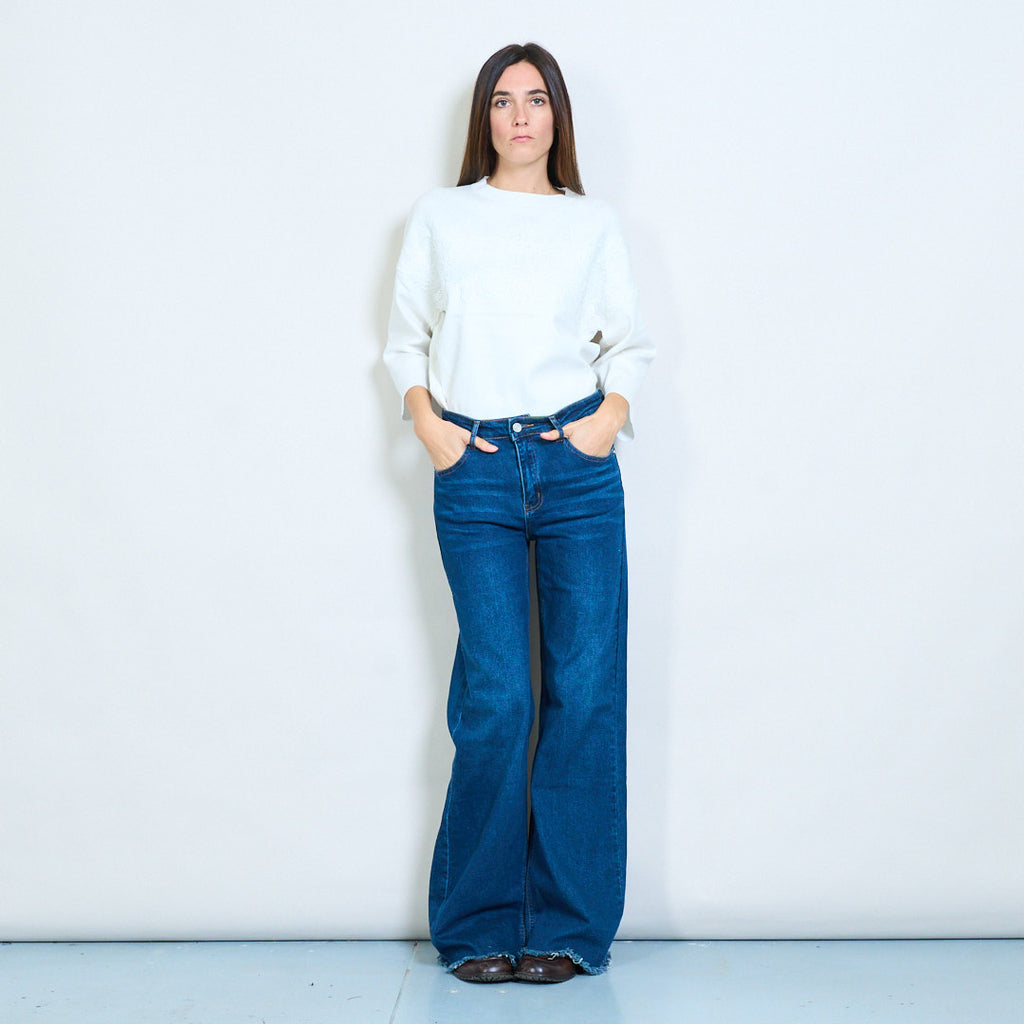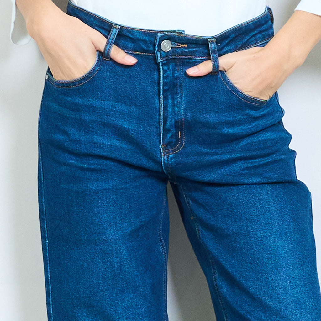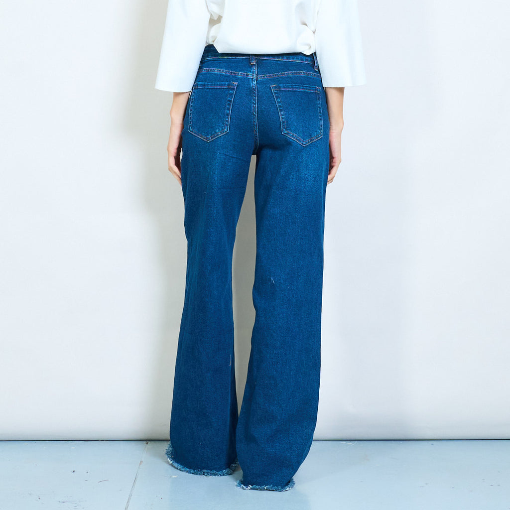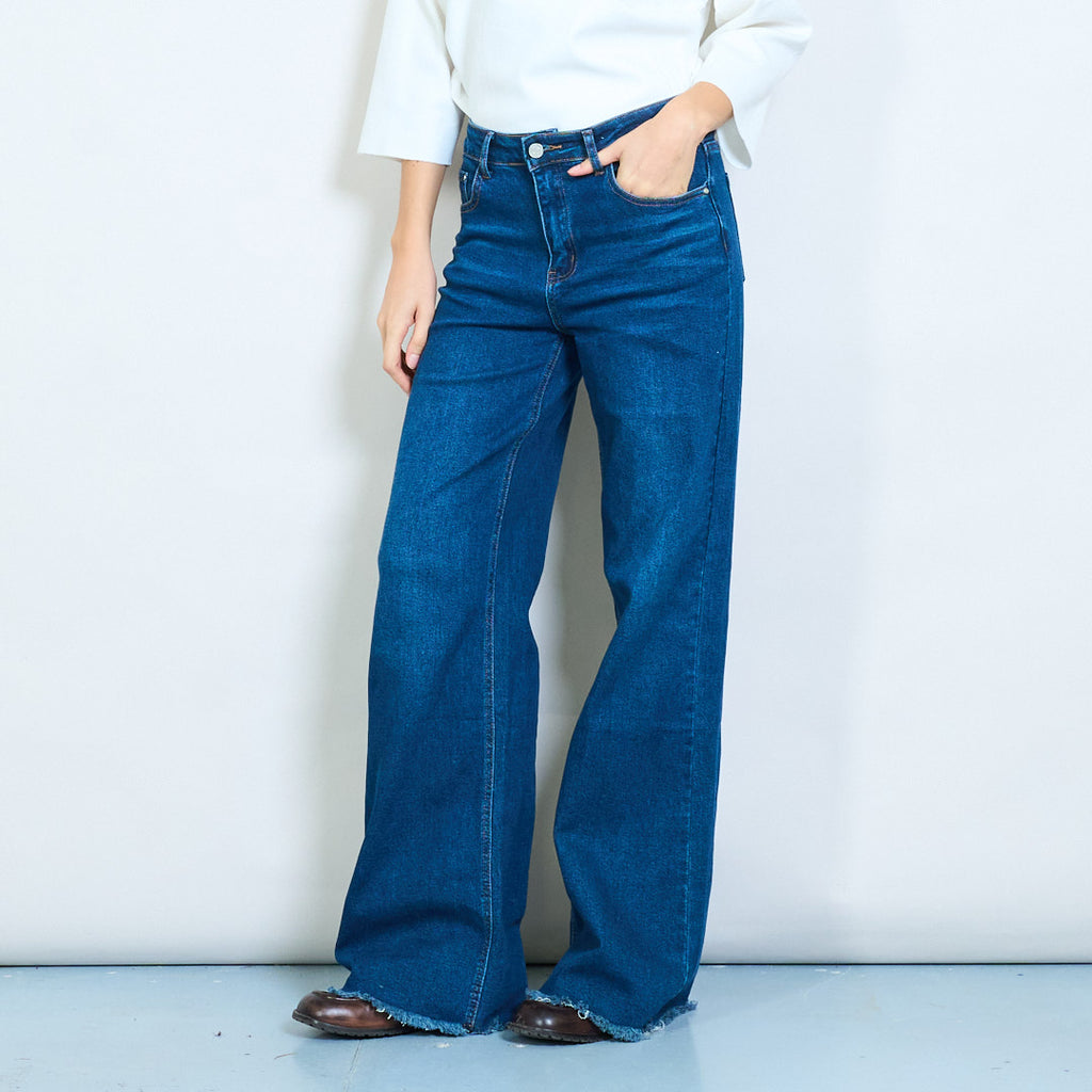Дънки с висок ръст с широк крак със суров подгъва на едро