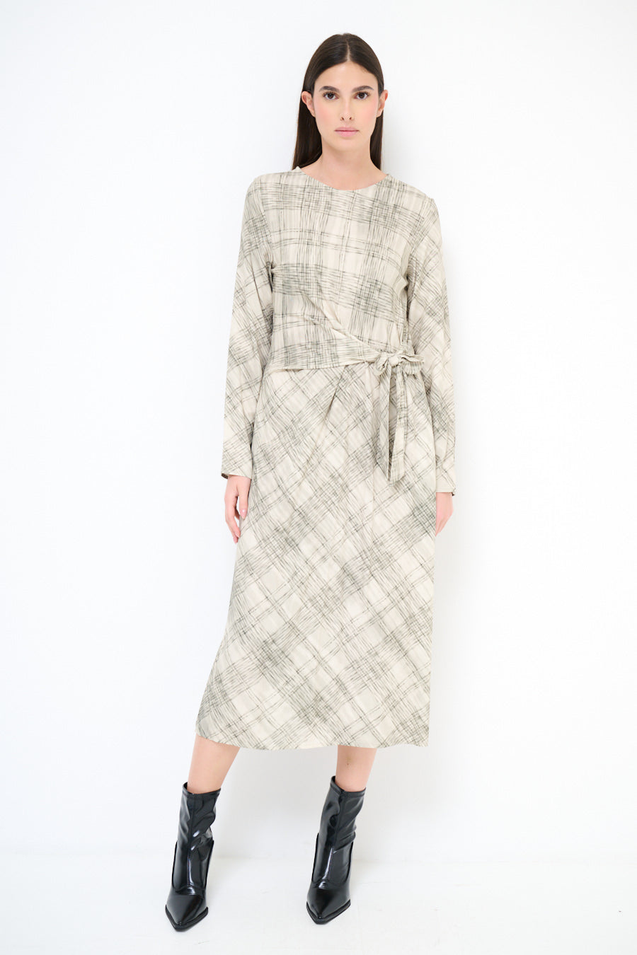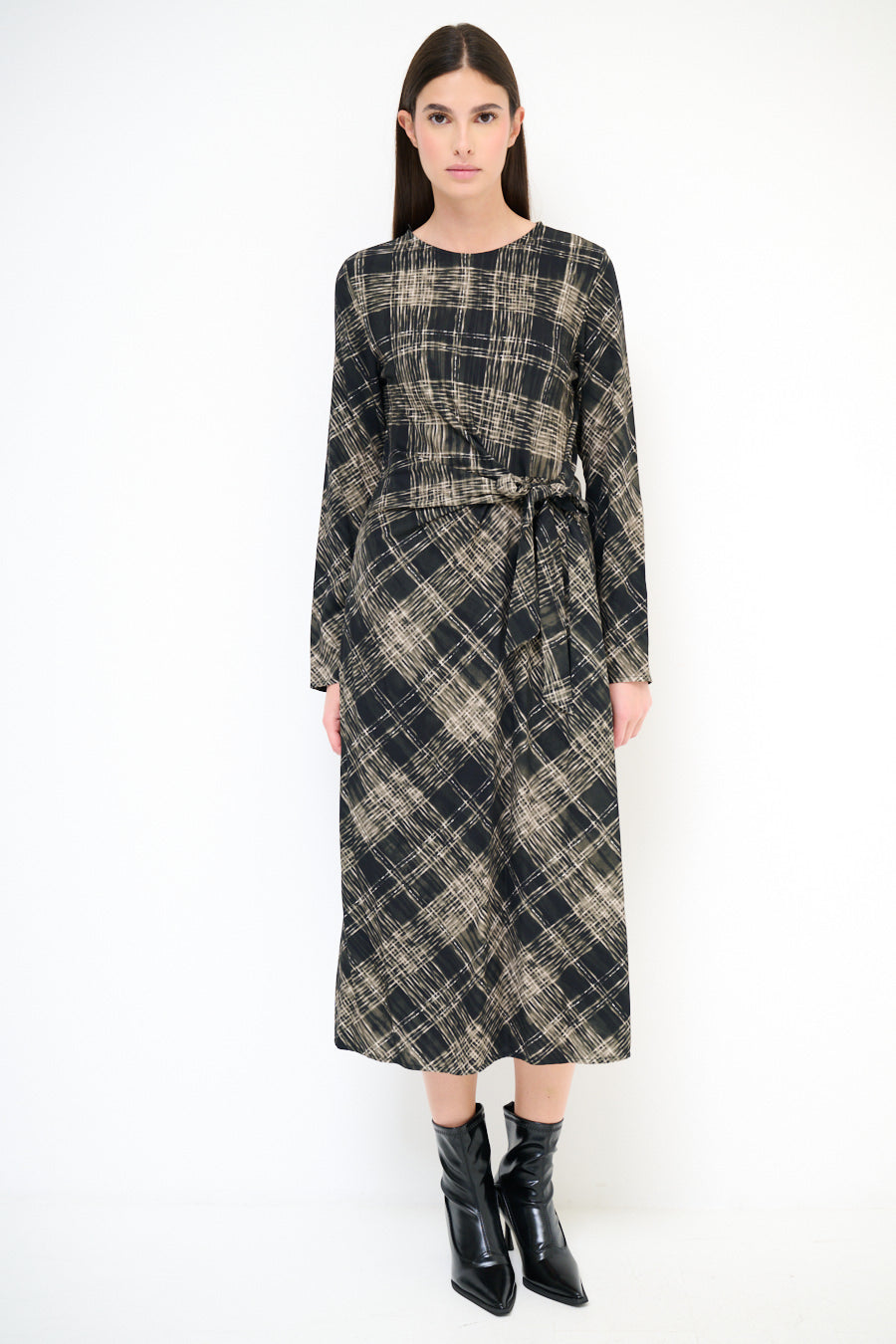 Резюме кариран модел Belted Midi рокля на едро