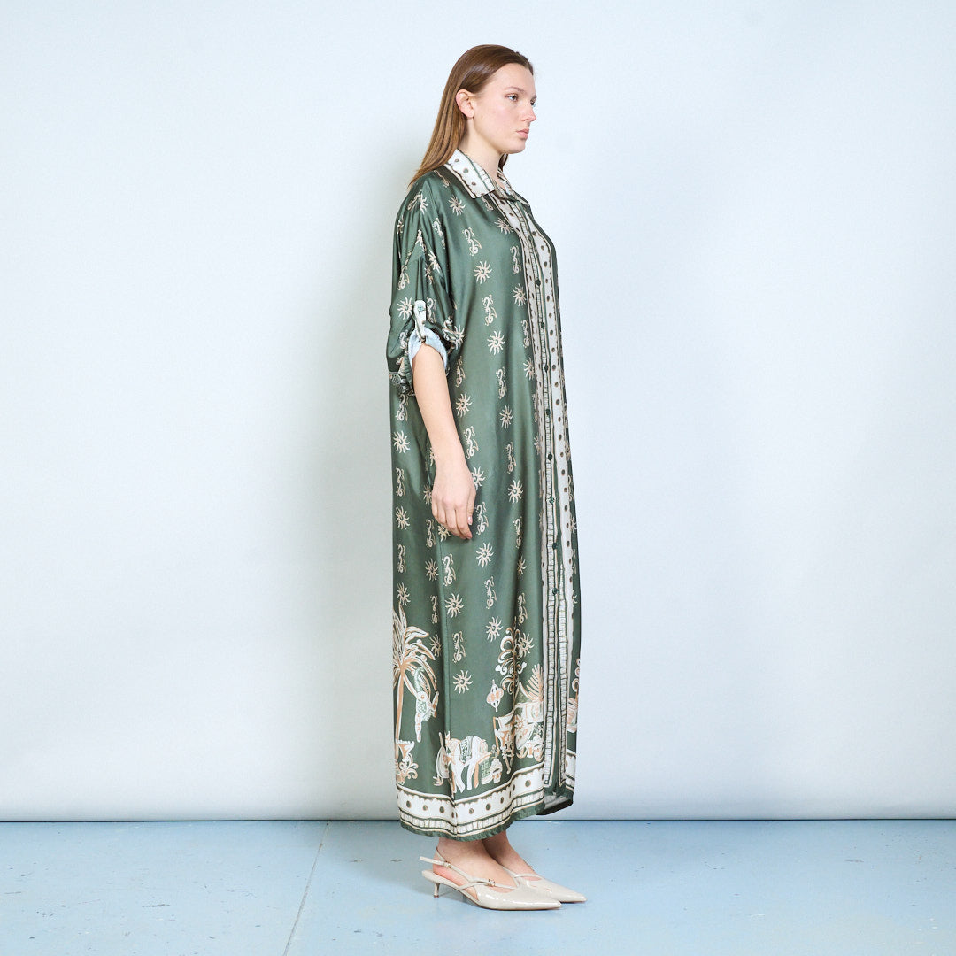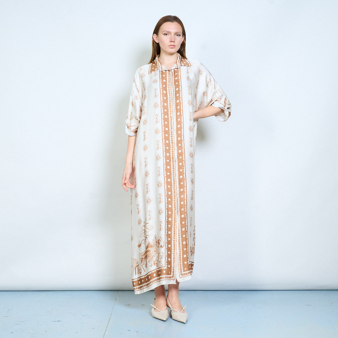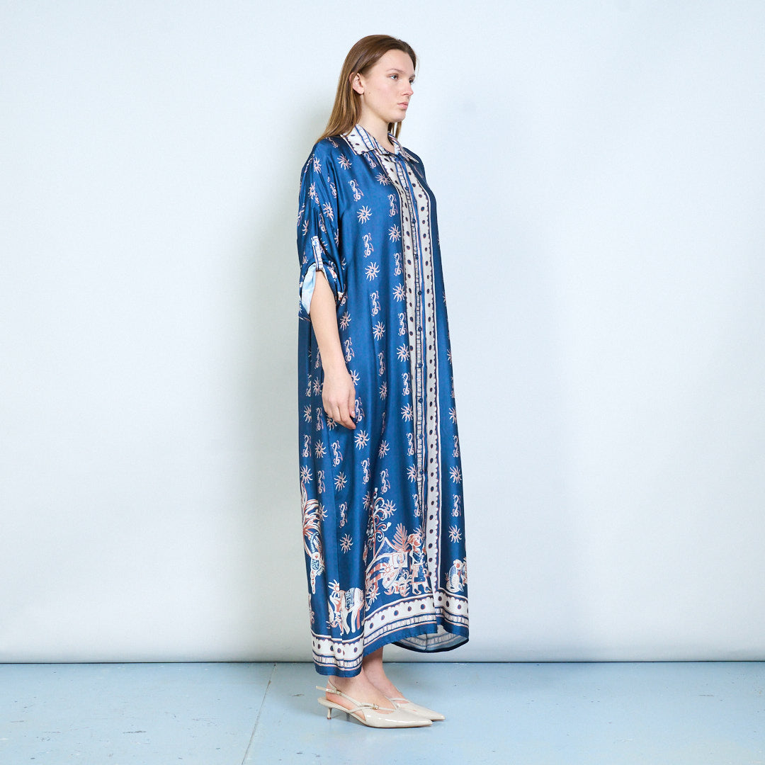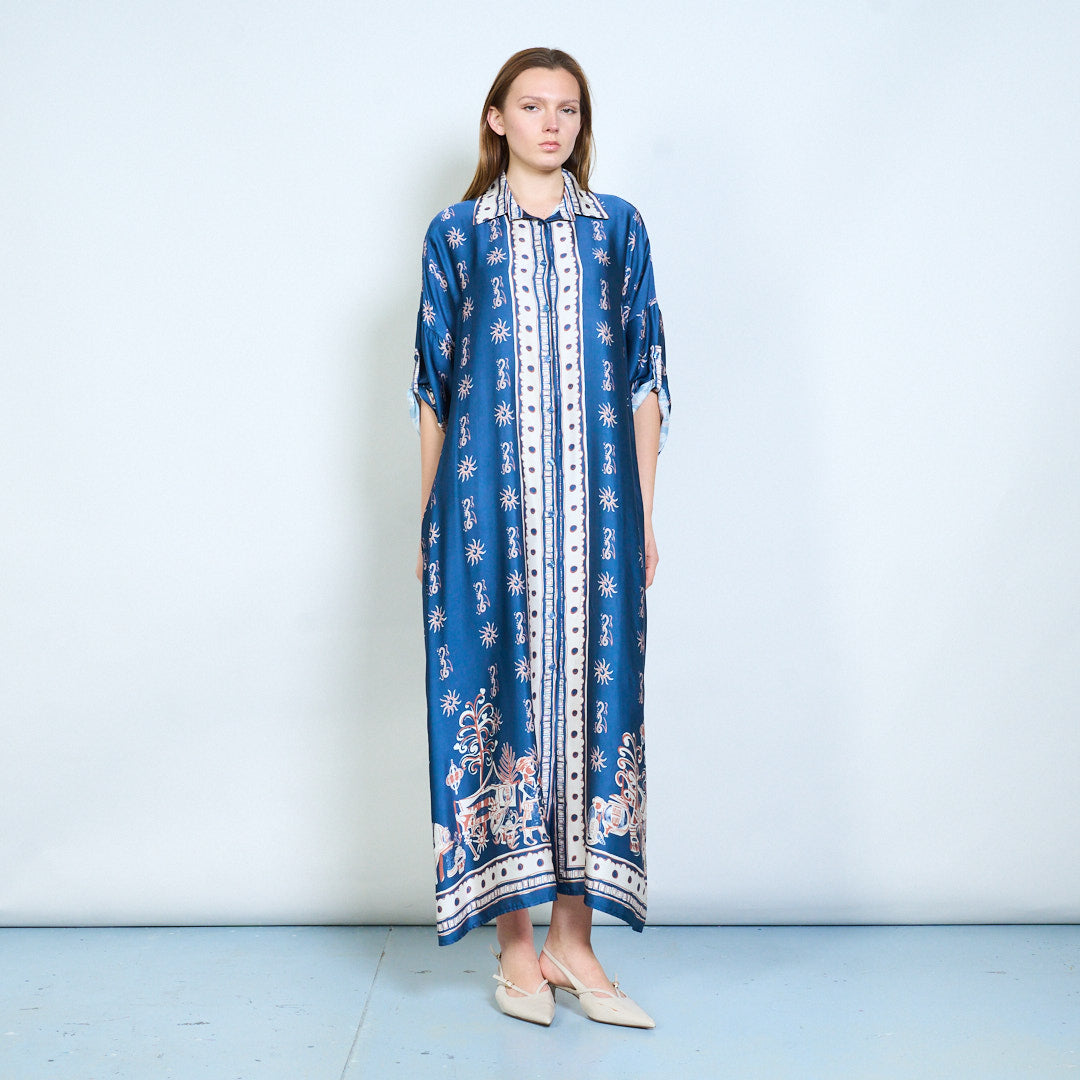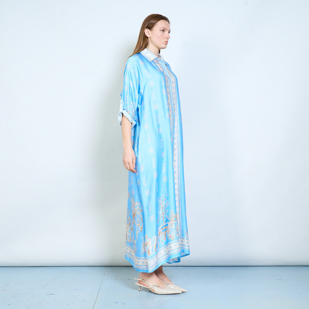 - Предната част с копчета позволява универсално носене като рокля или многопластова част