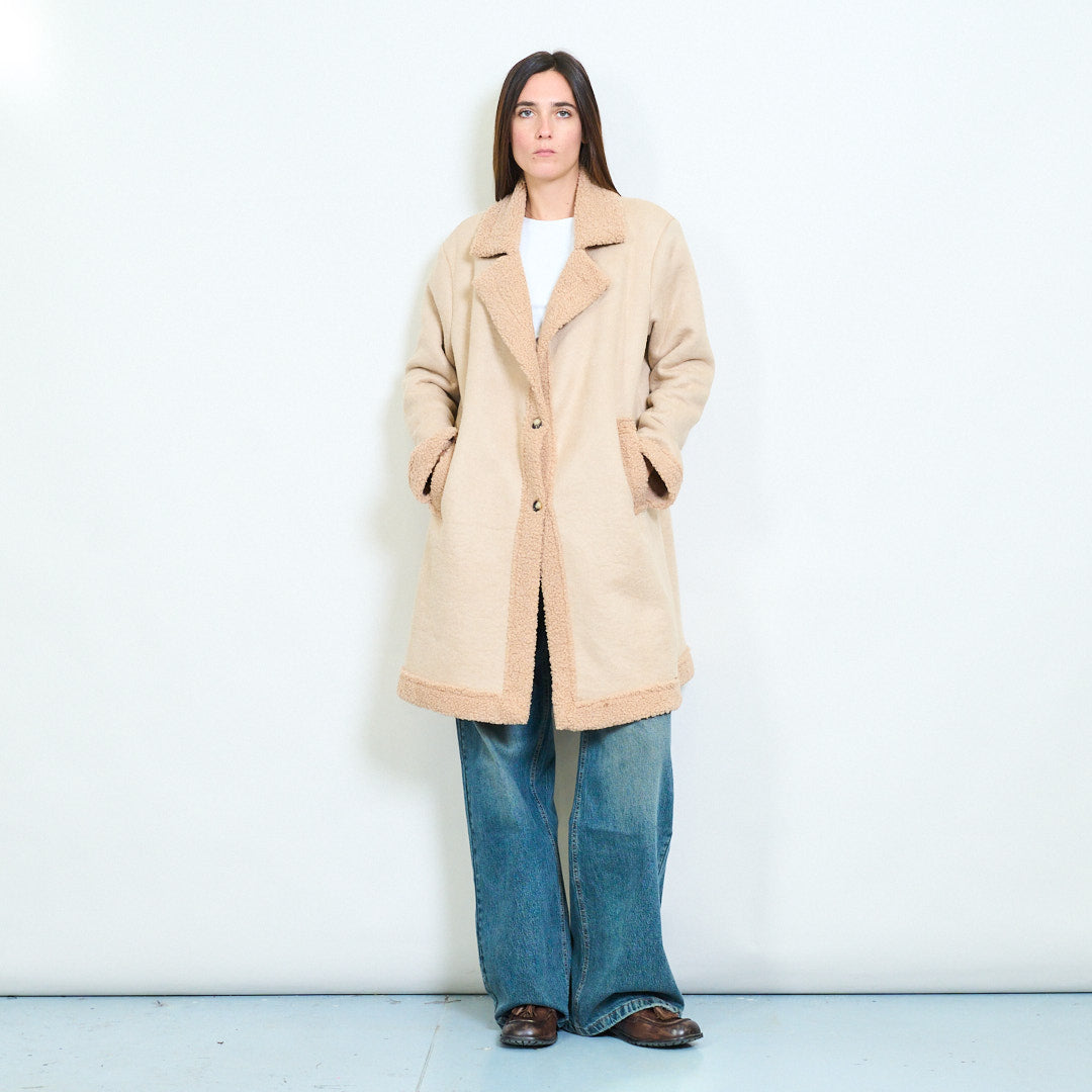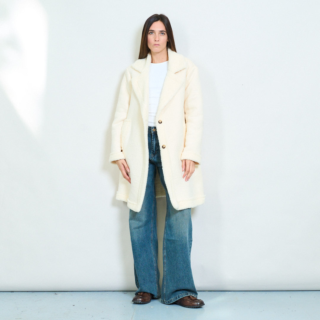 - Широка назъбена ревера с изкуствена текстура за срязване за уютен вид