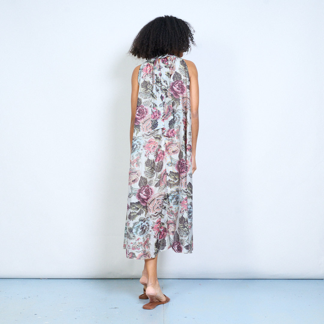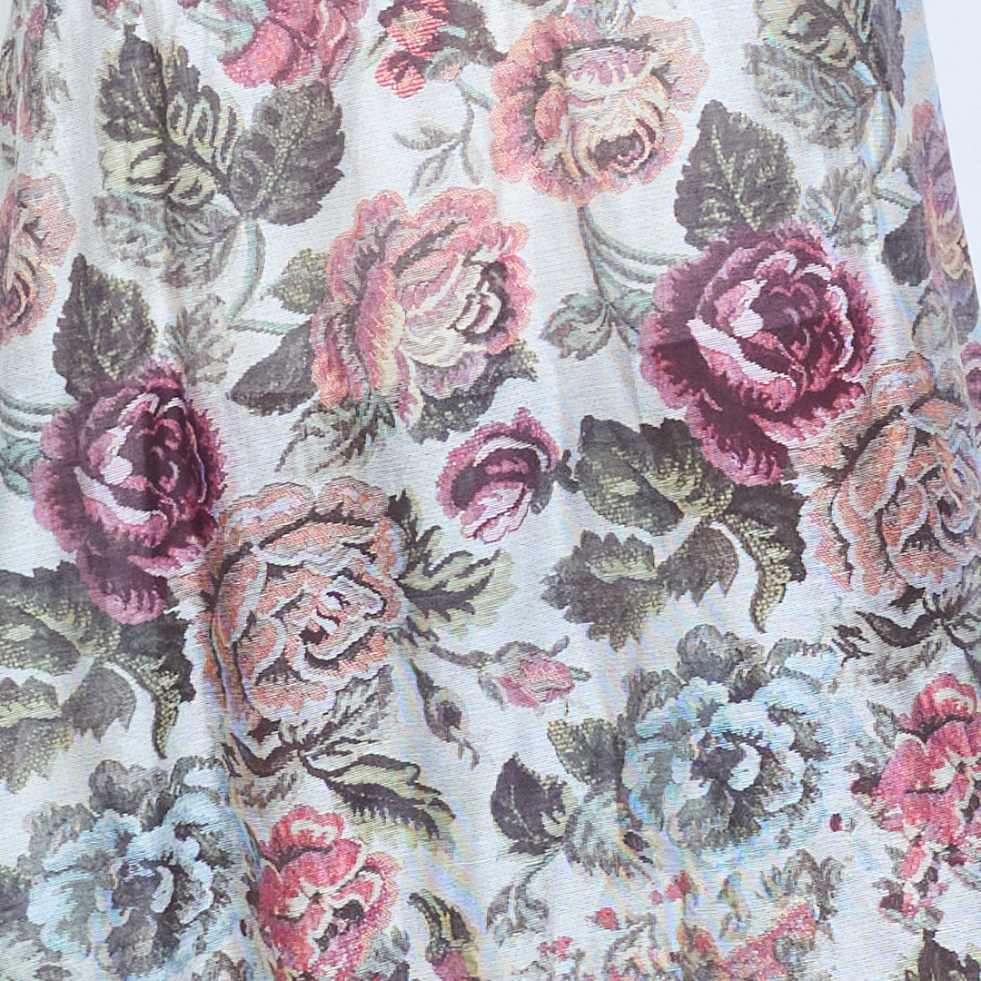 Винтидж широка макси рокля с високо деколте и флорални рози на едро