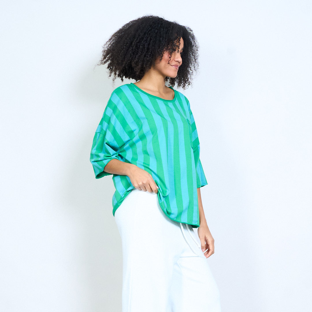 Гръден джоб с вертикални райета Спокойна широка горна част на едро