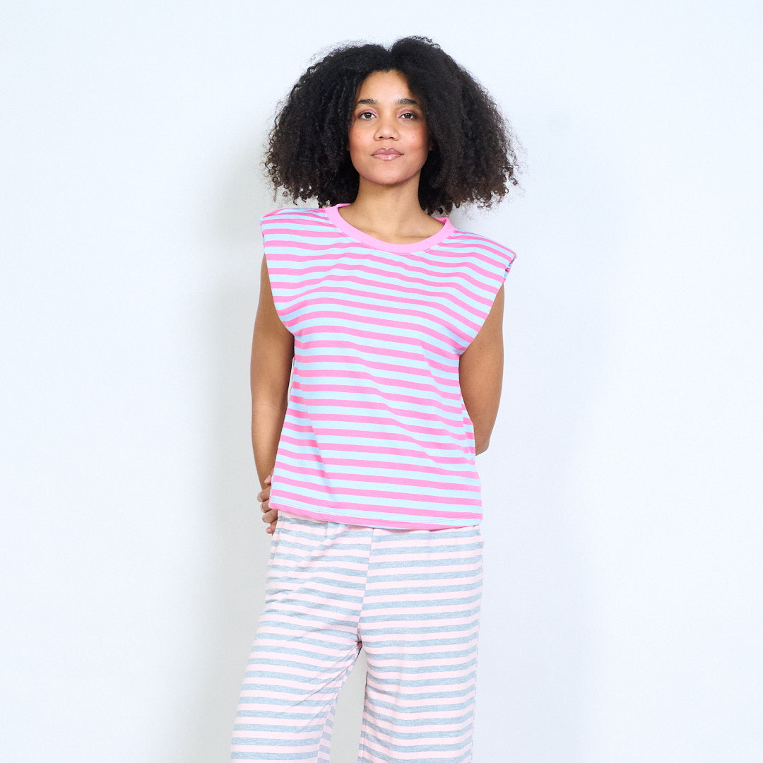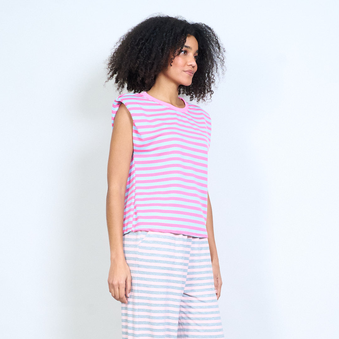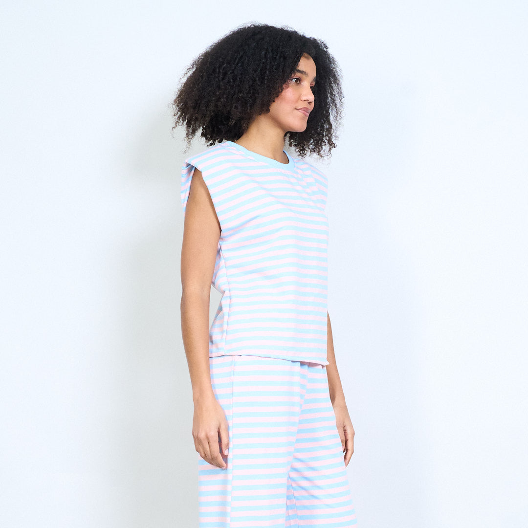 Рирана горна част без ръкави с подплатени рамена на едро