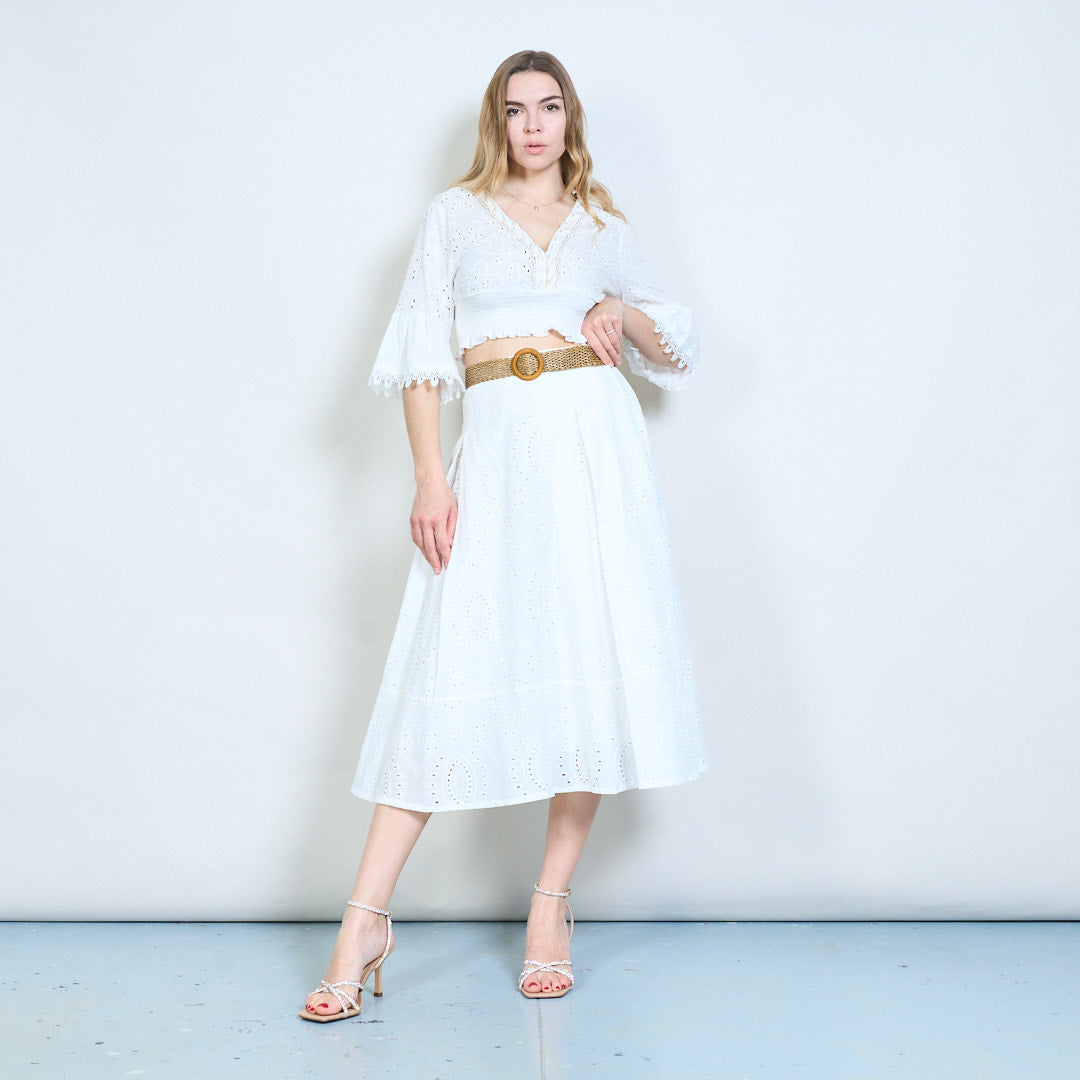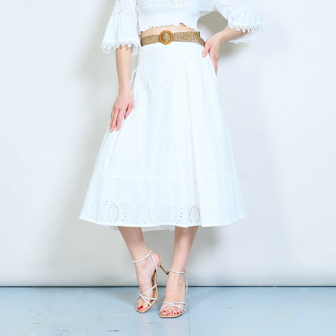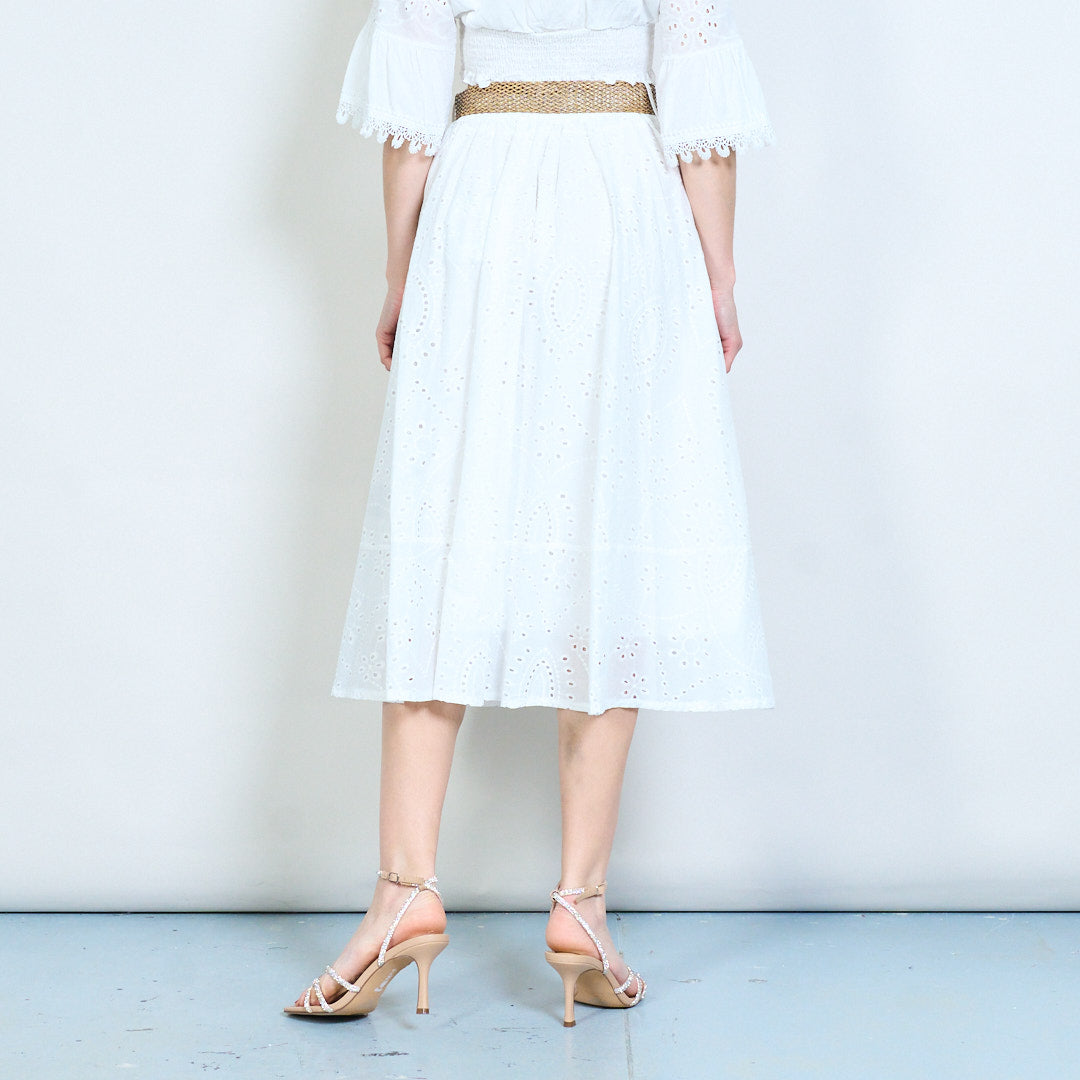Развяваща се пола с колан с флорални капси и висока талия на едро