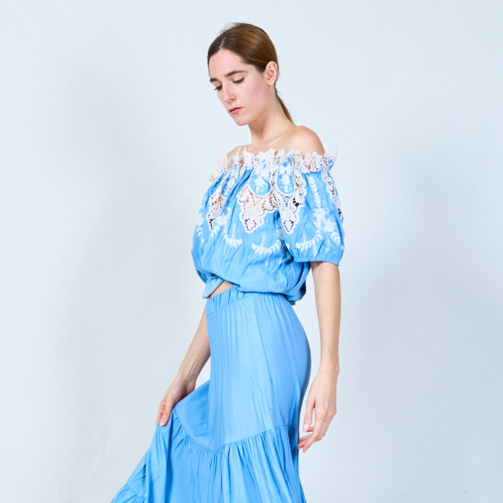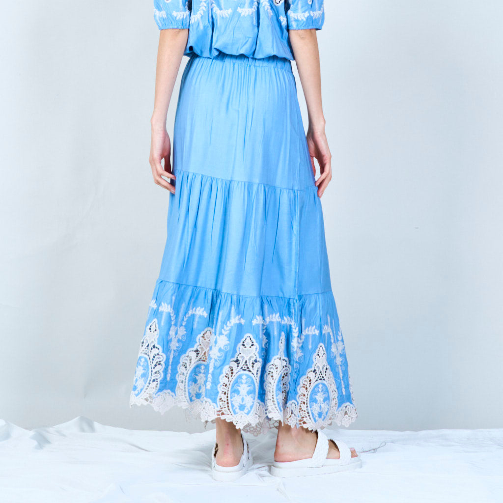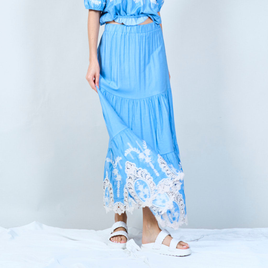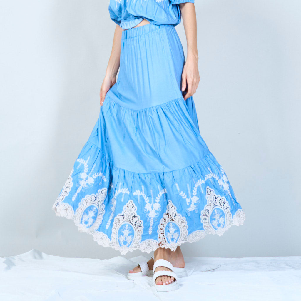 Елегантен комплект и пола с пола с дантела с дантела на едро