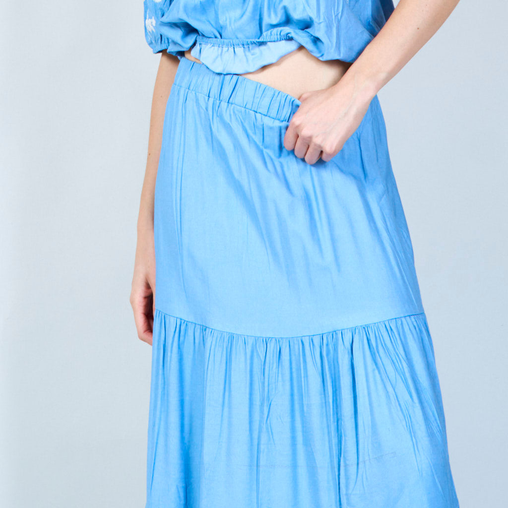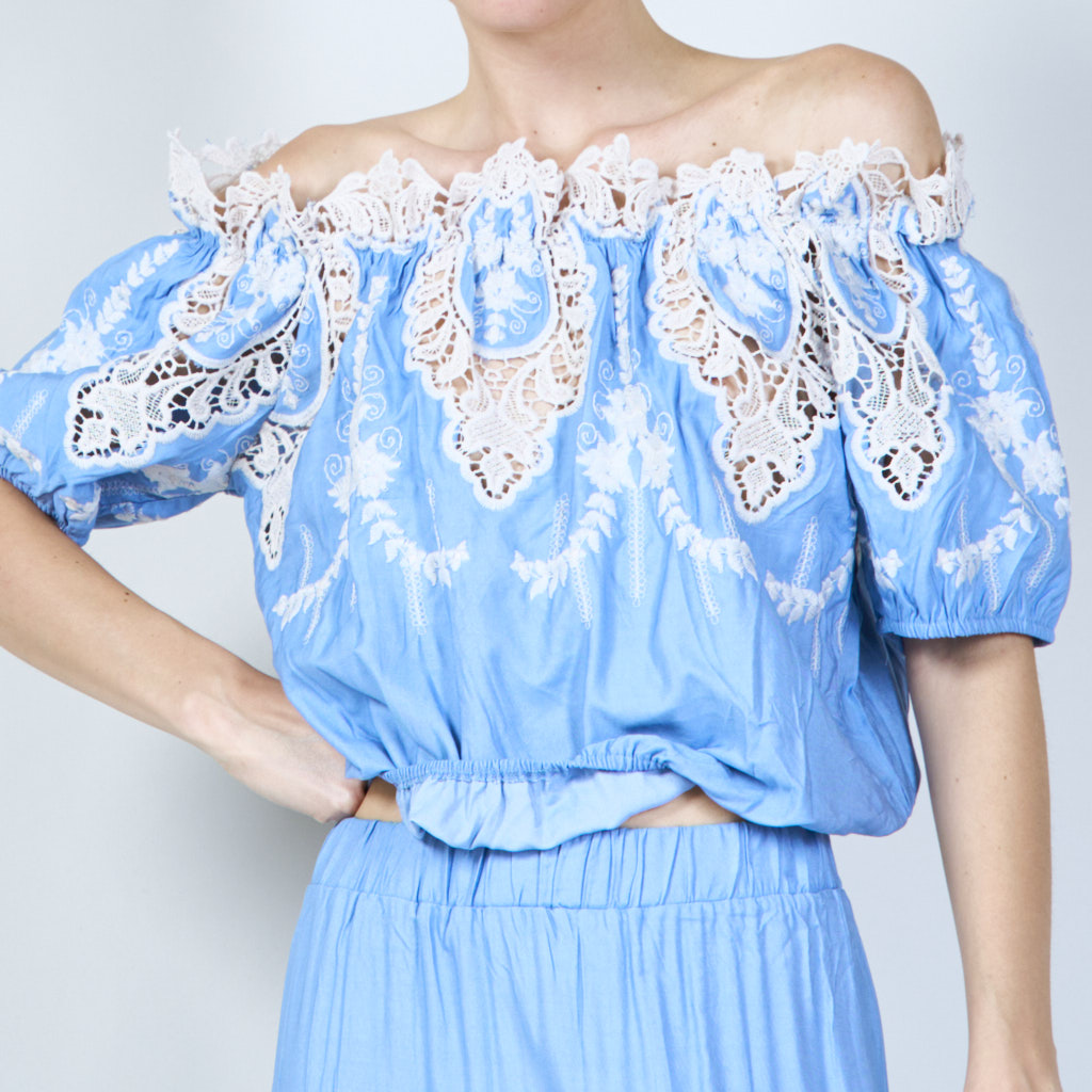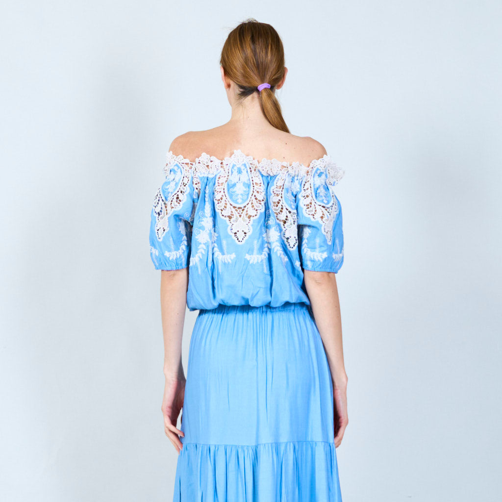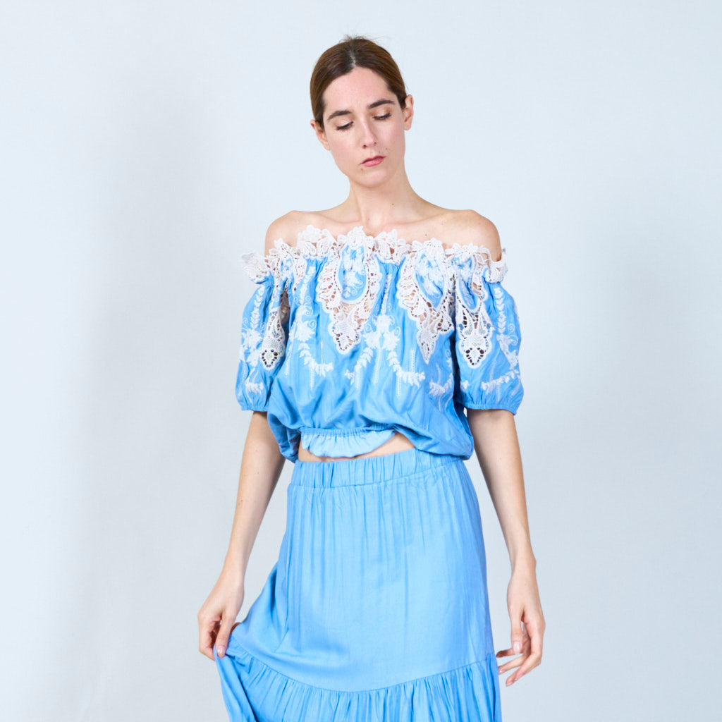 Елегантен комплект и пола с пола с дантела с дантела на едро