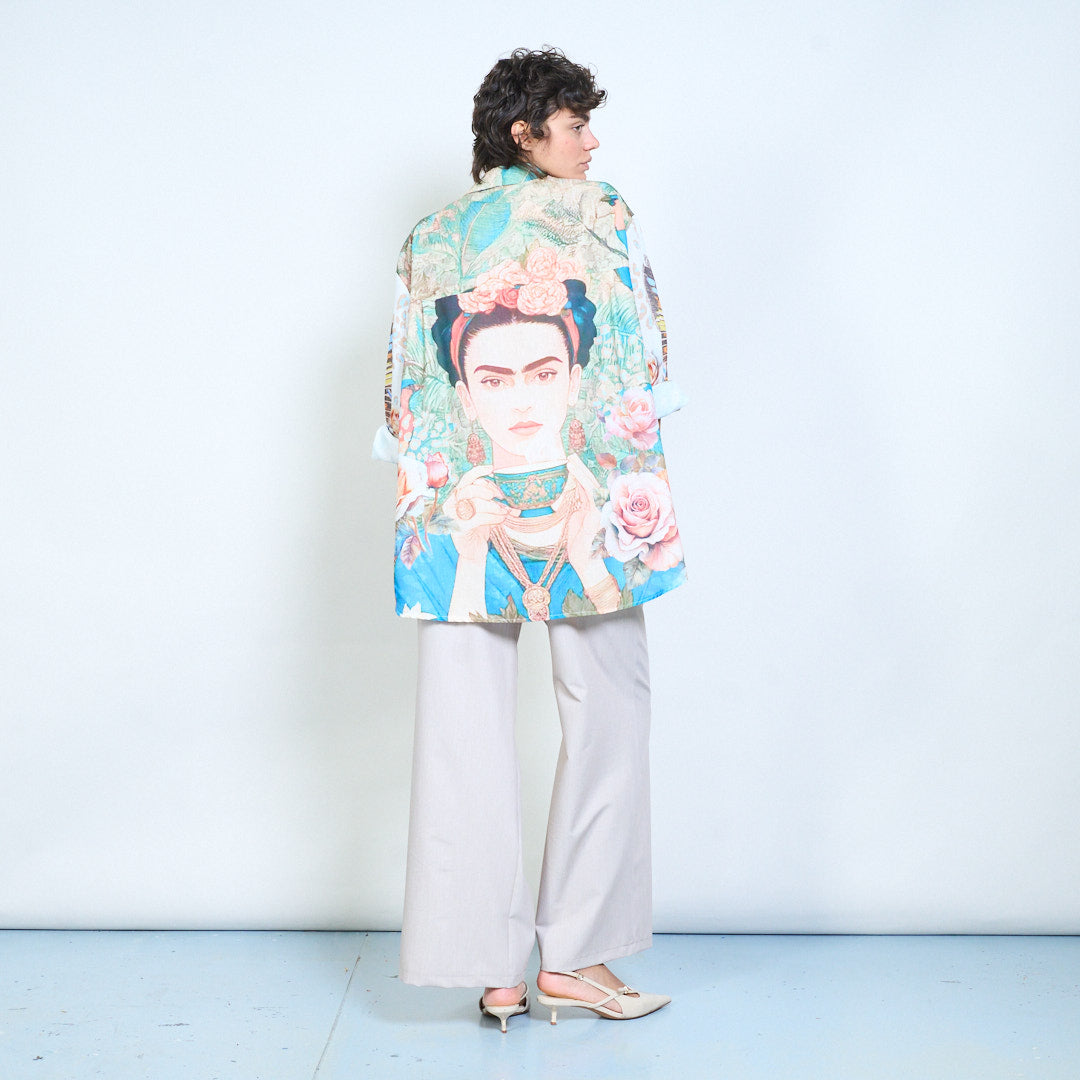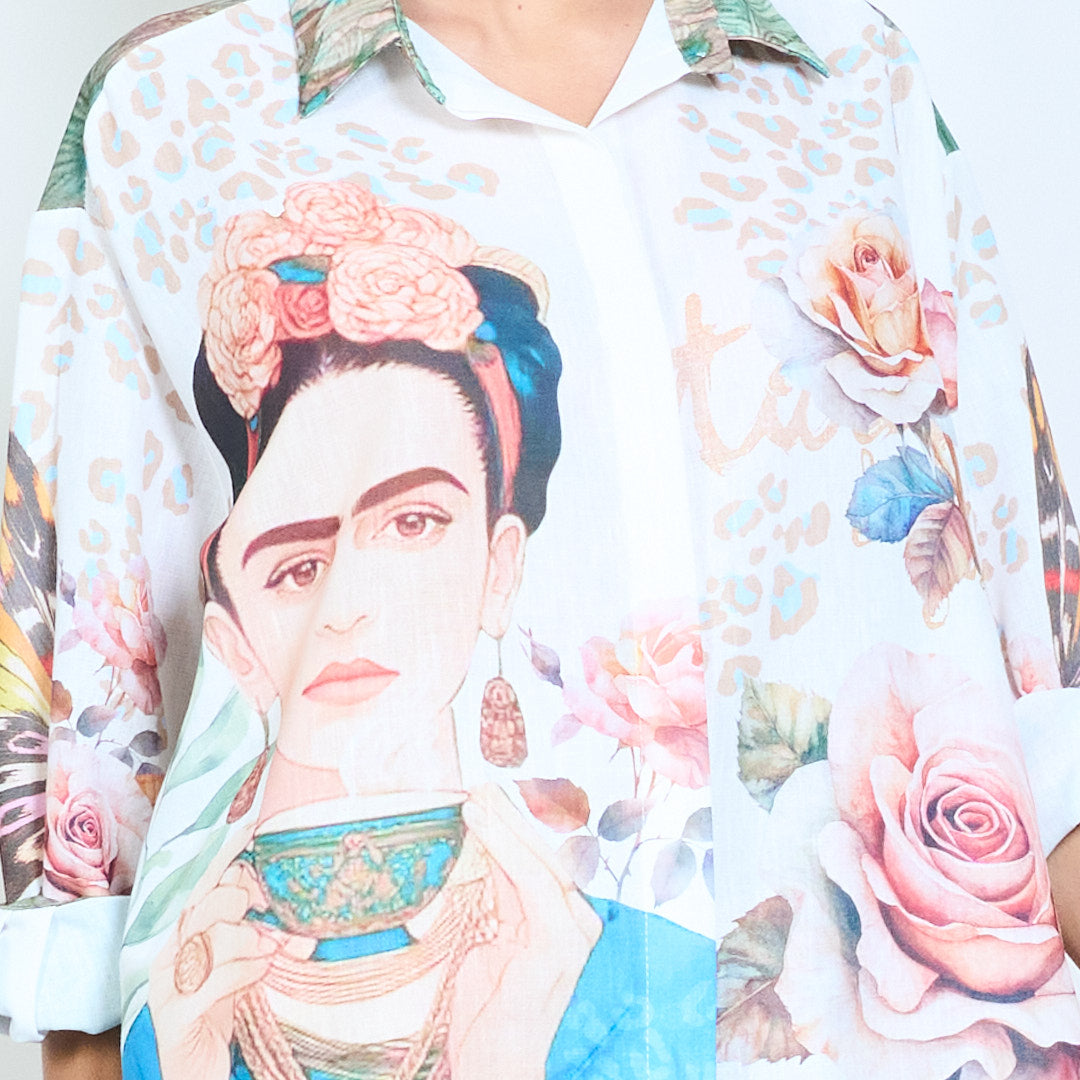 Блуза риза с портретен флорален и животински принт на едро