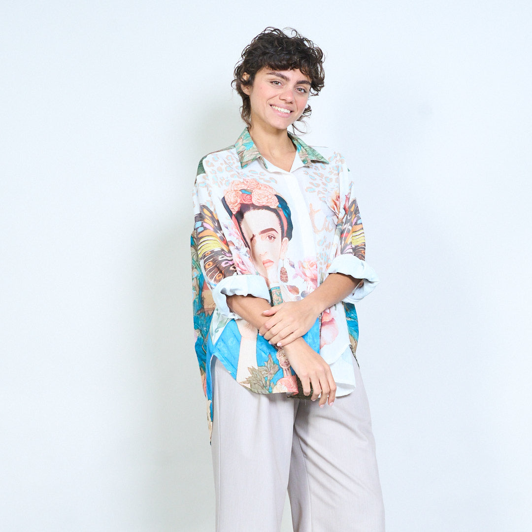 - Лека блуза тип риза с артистичен цял смесен принт