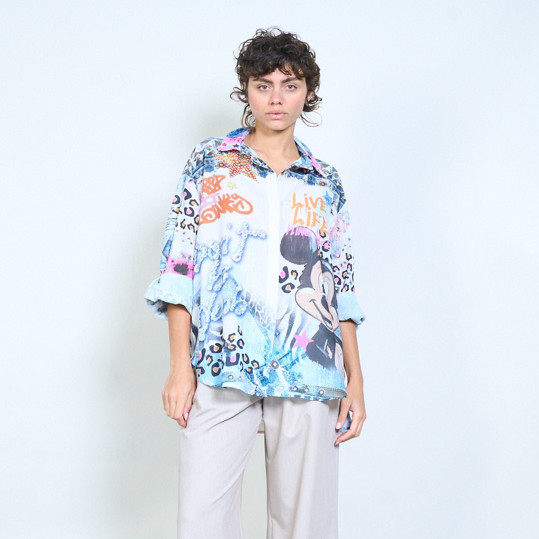 Блуза с щампована риза с графити и звезди на едро