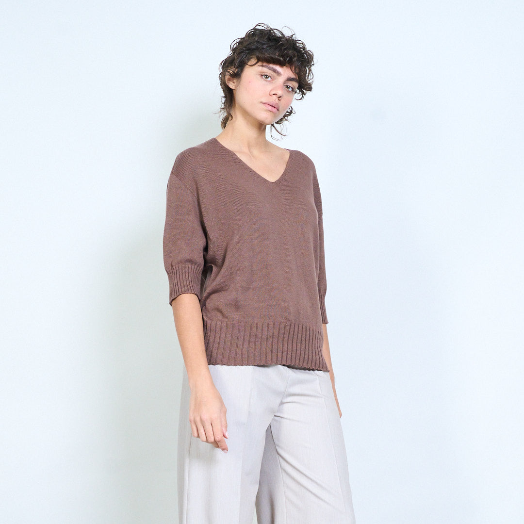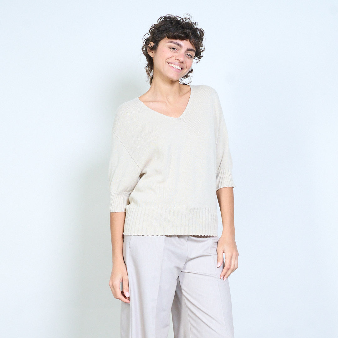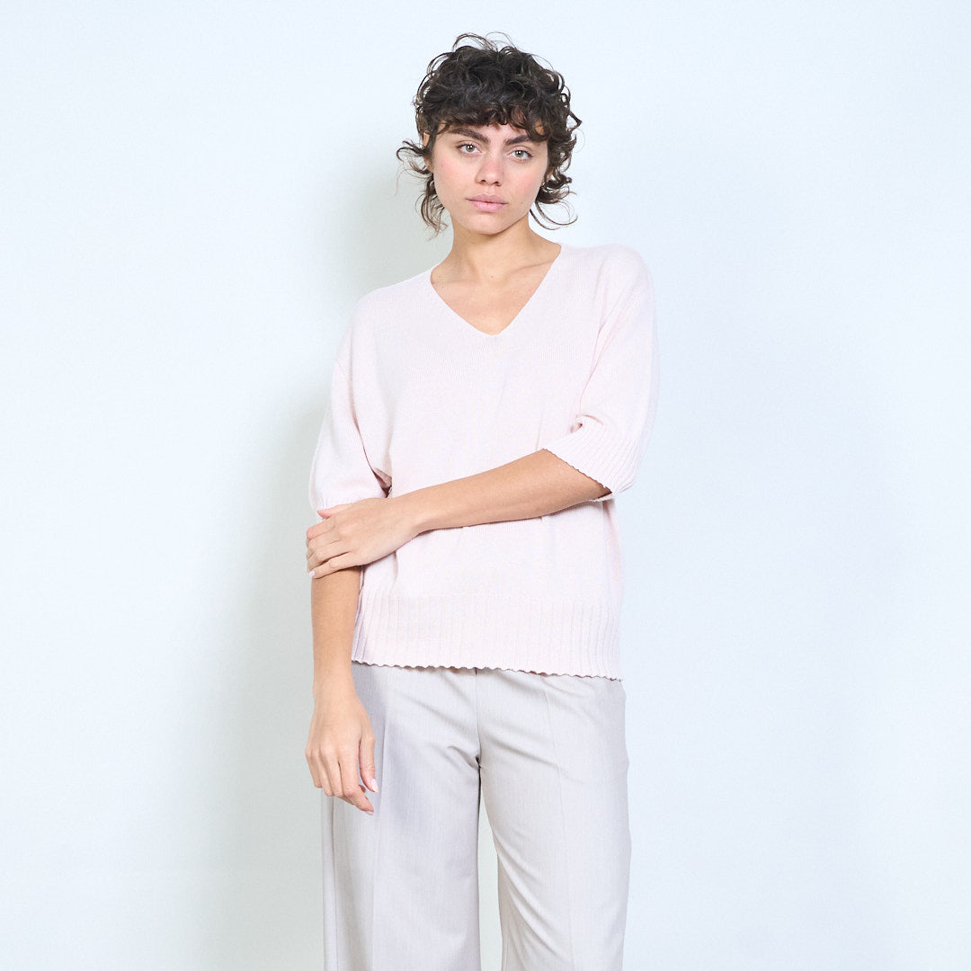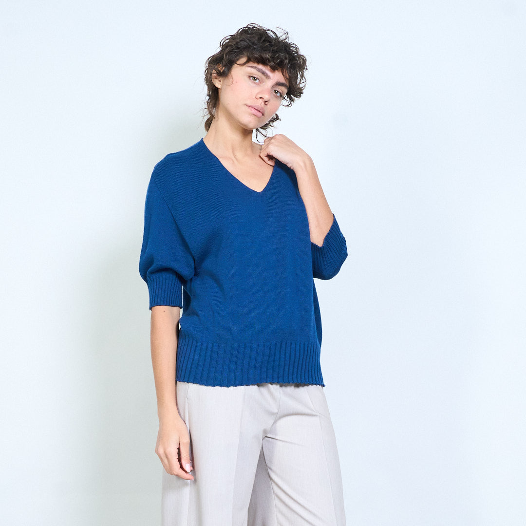 Плетено горнище с V-образно деколте и къс ръкав на едро