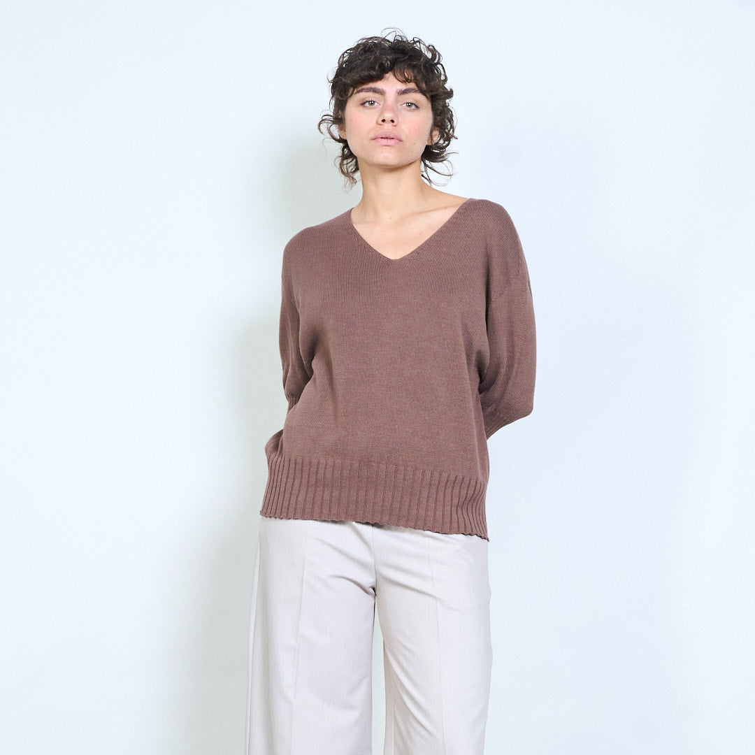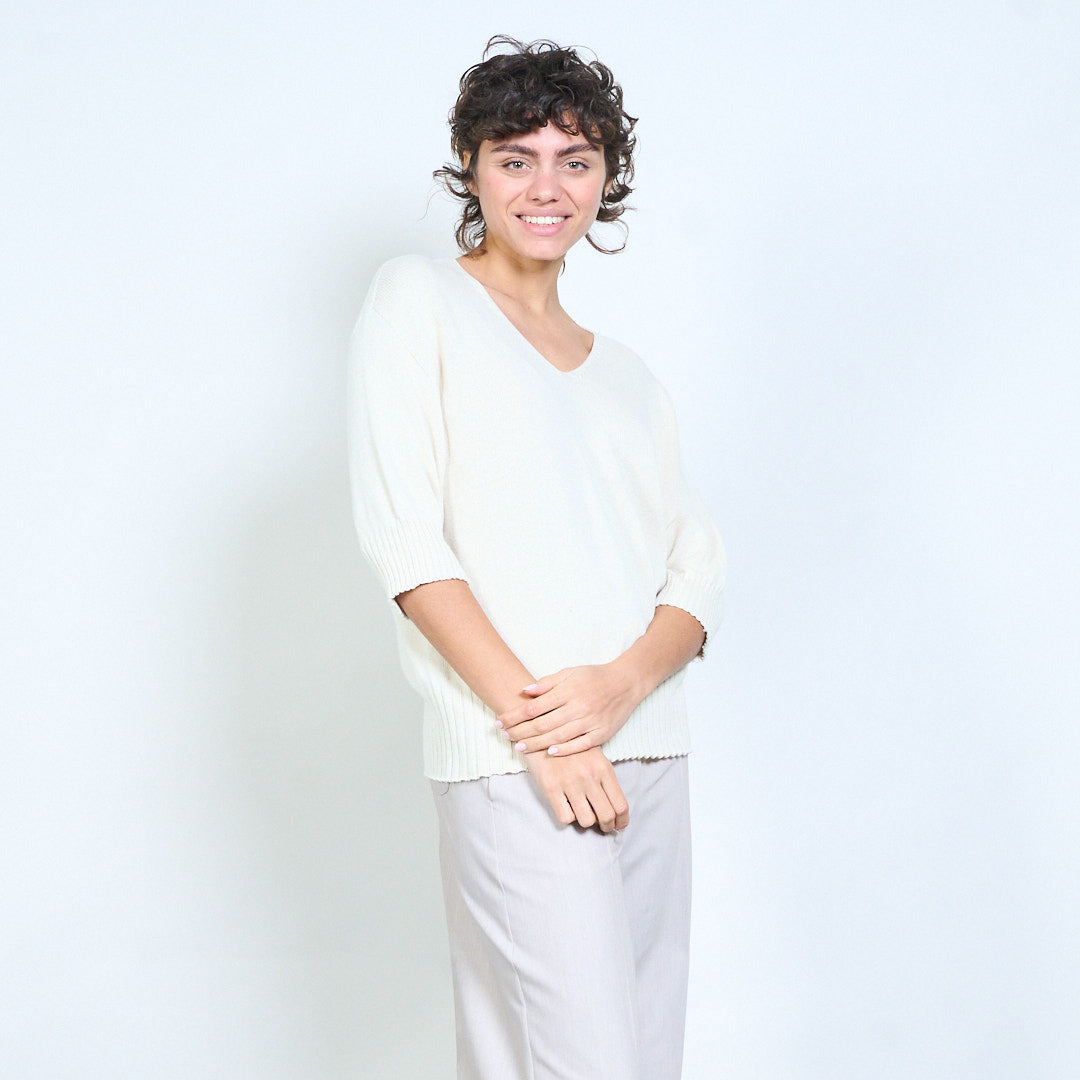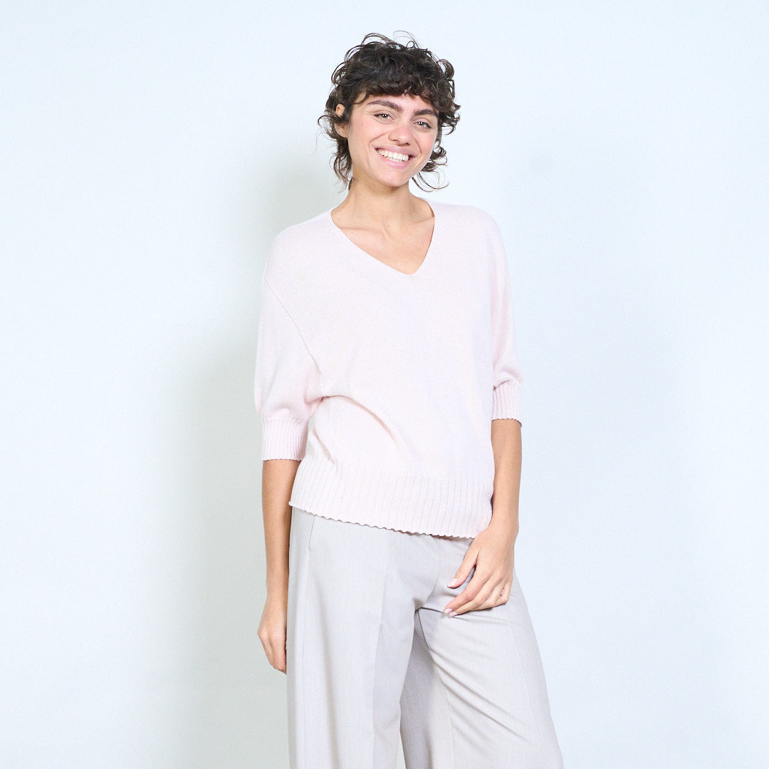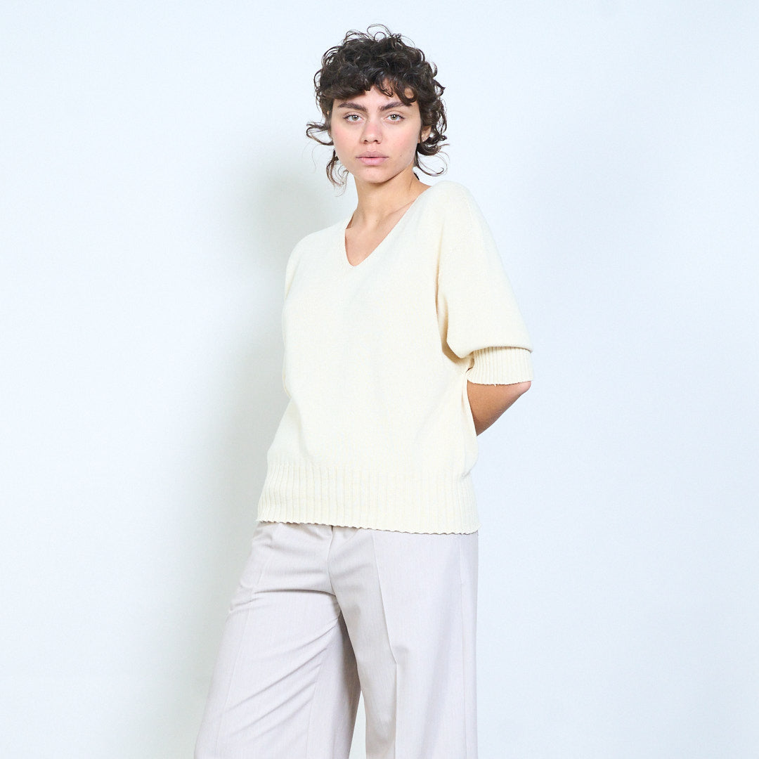 Плетено горнище с V-образно деколте и къс ръкав на едро