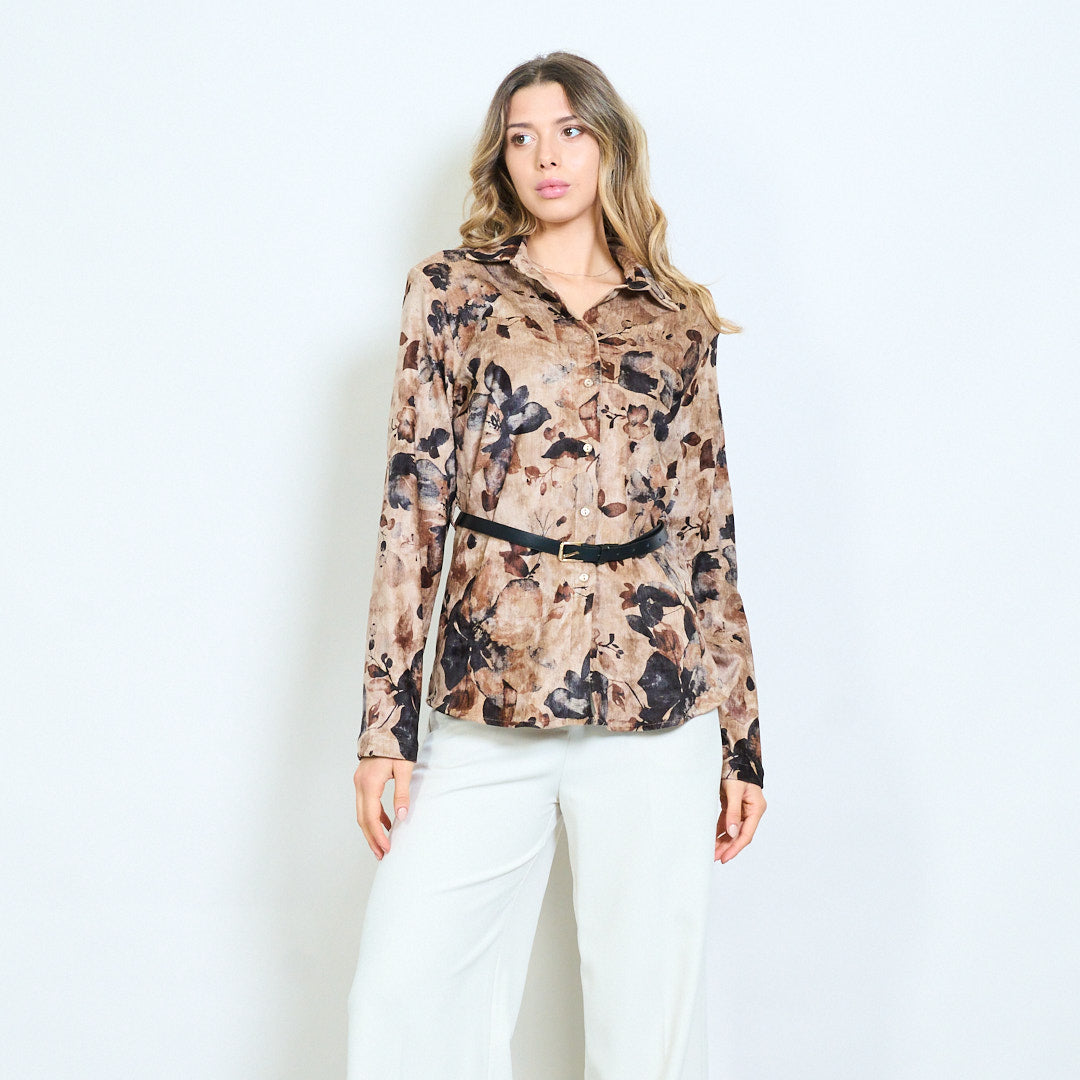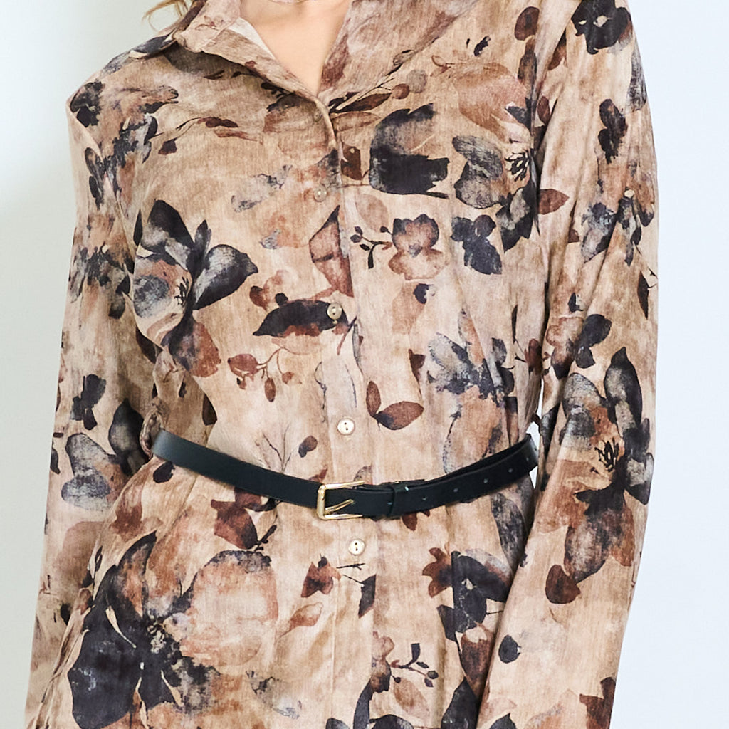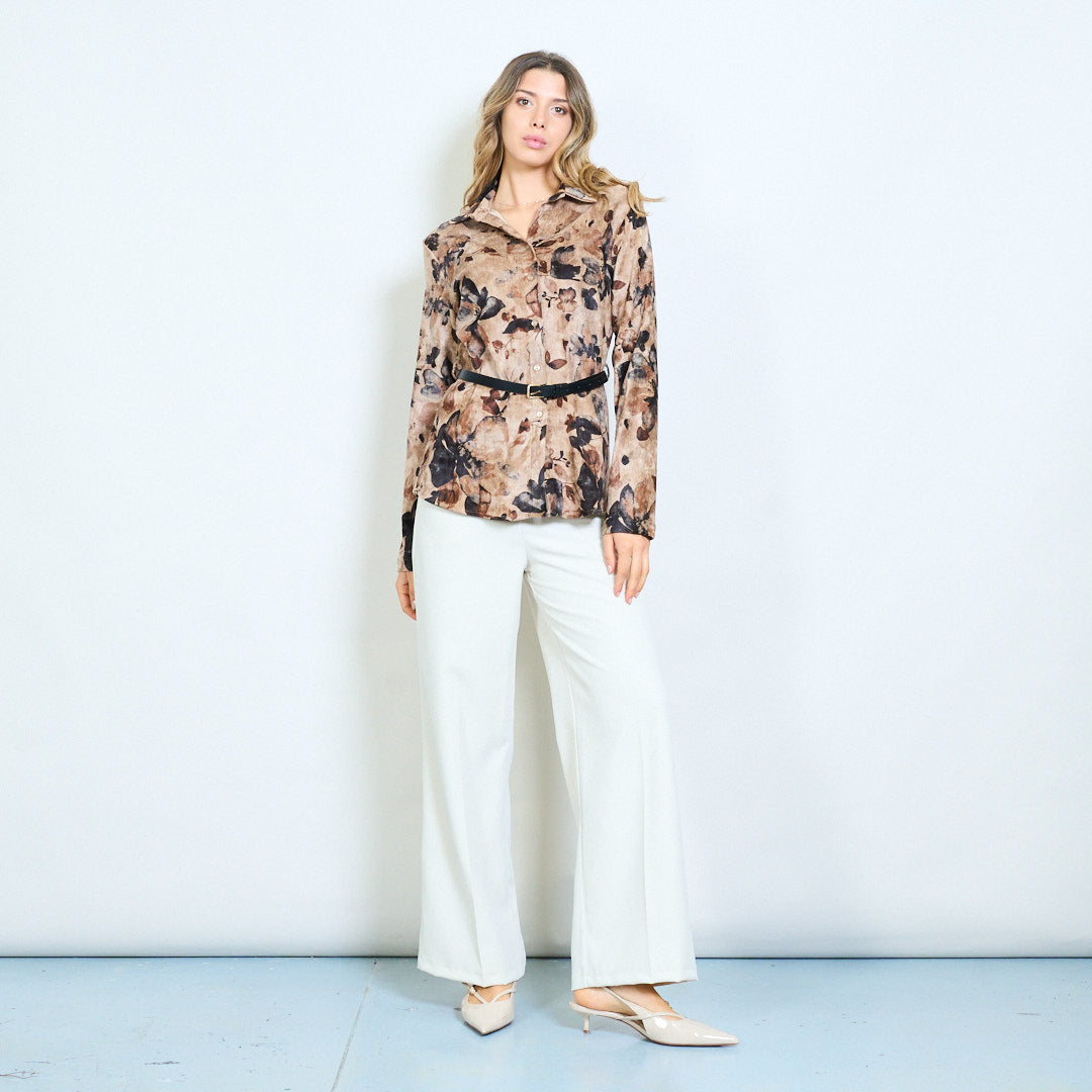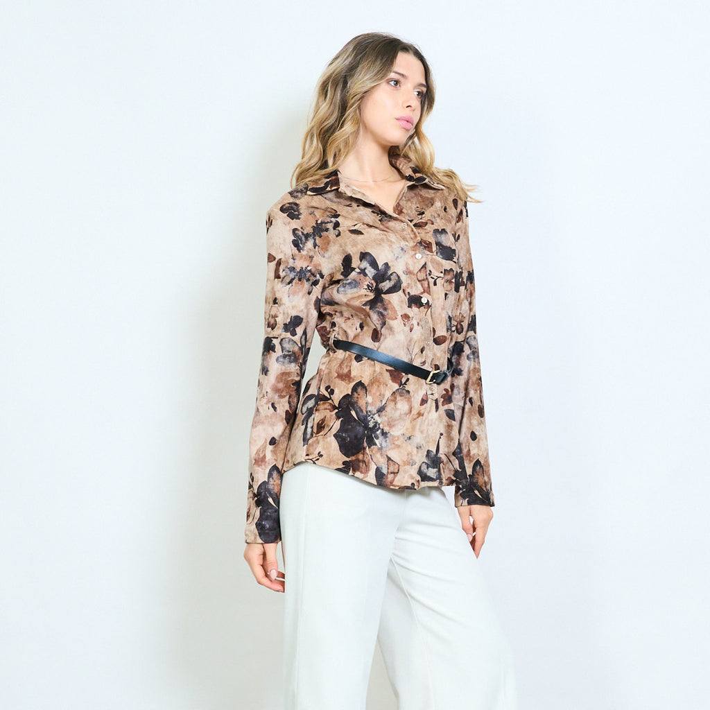 • Изявление блуза, представяща all-over флорален вдъхновен печат