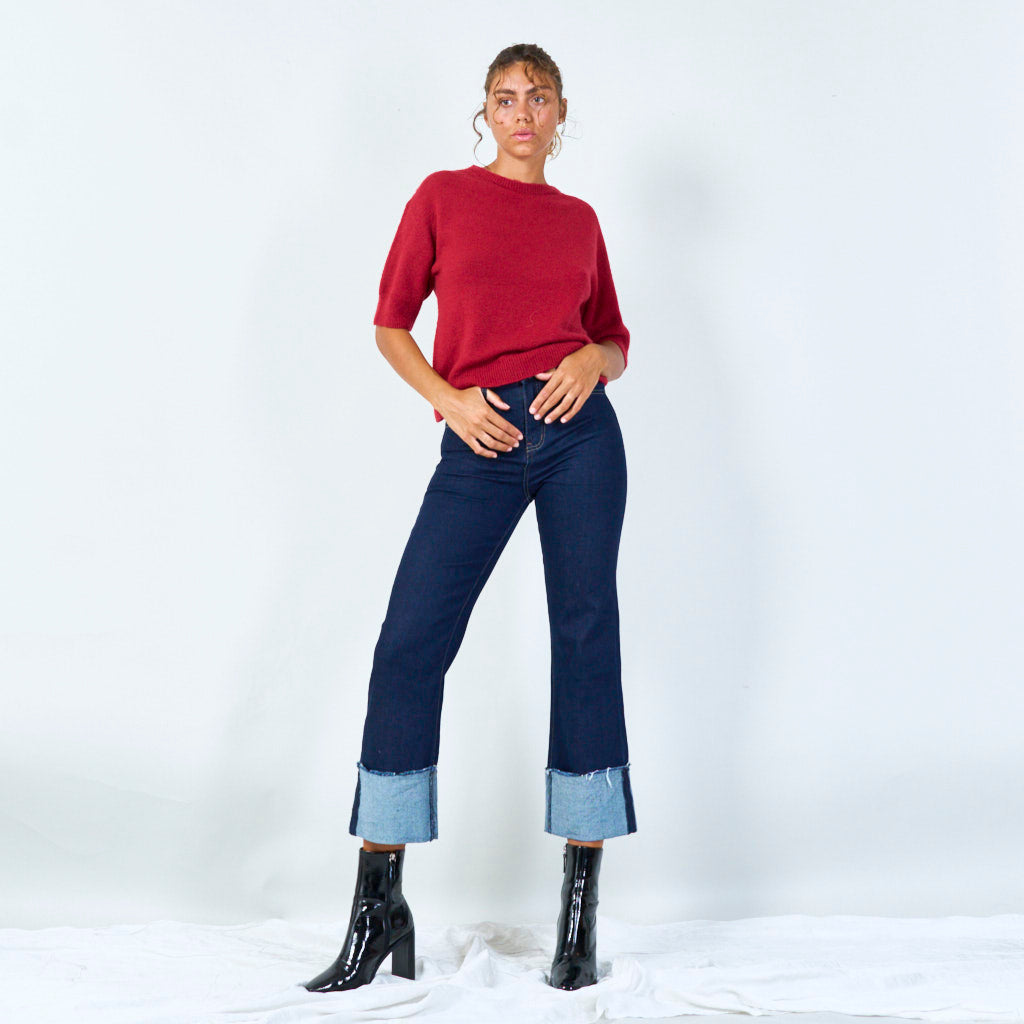 - Оребрена екипаж, подгъва и ръкави за структурирано прилепване
