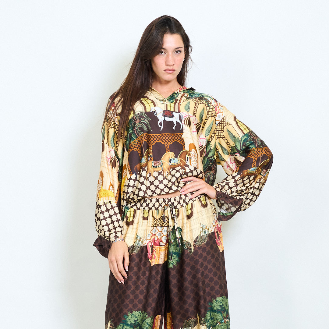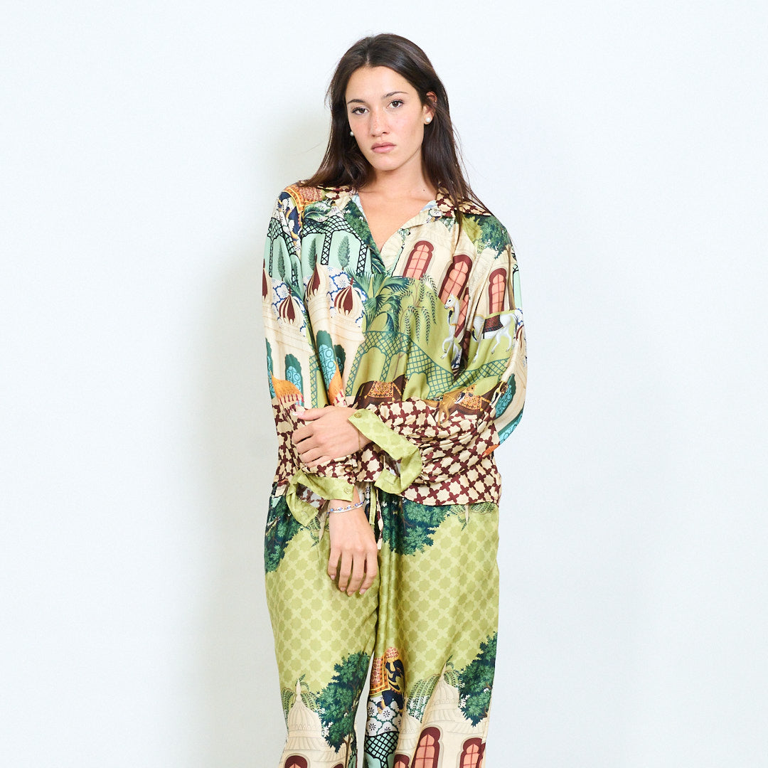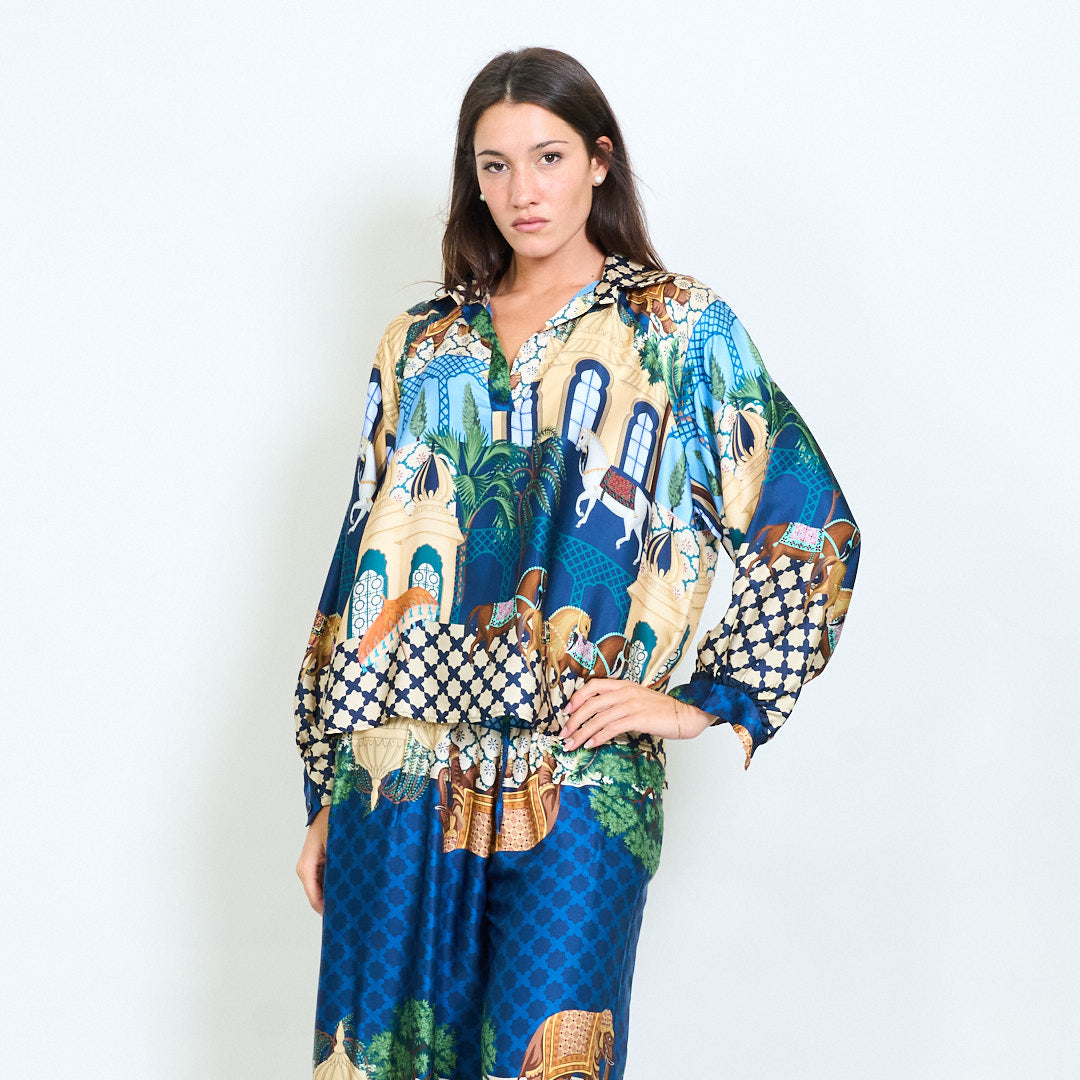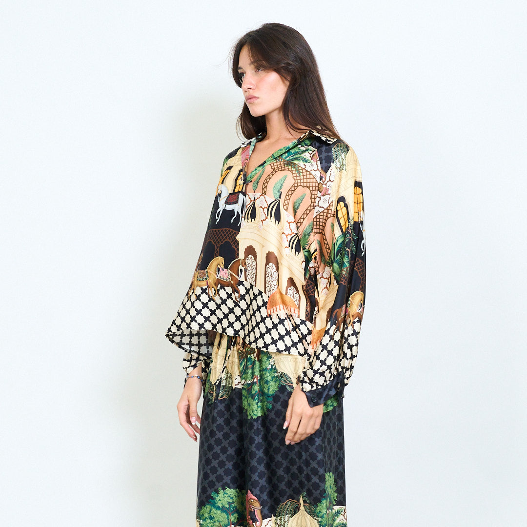 • Дълги ръкави с детайл за вратовръзка на маншета