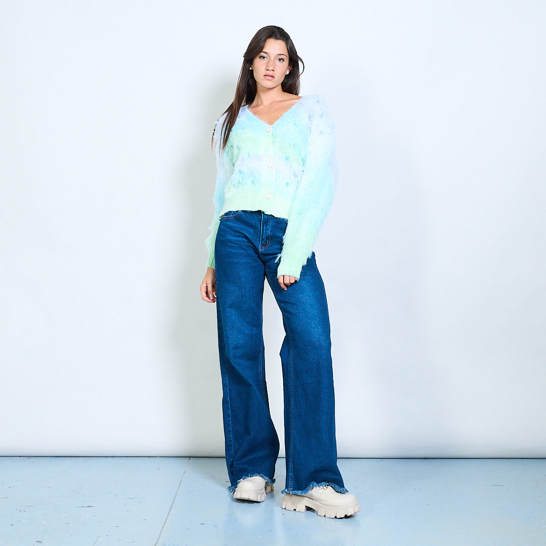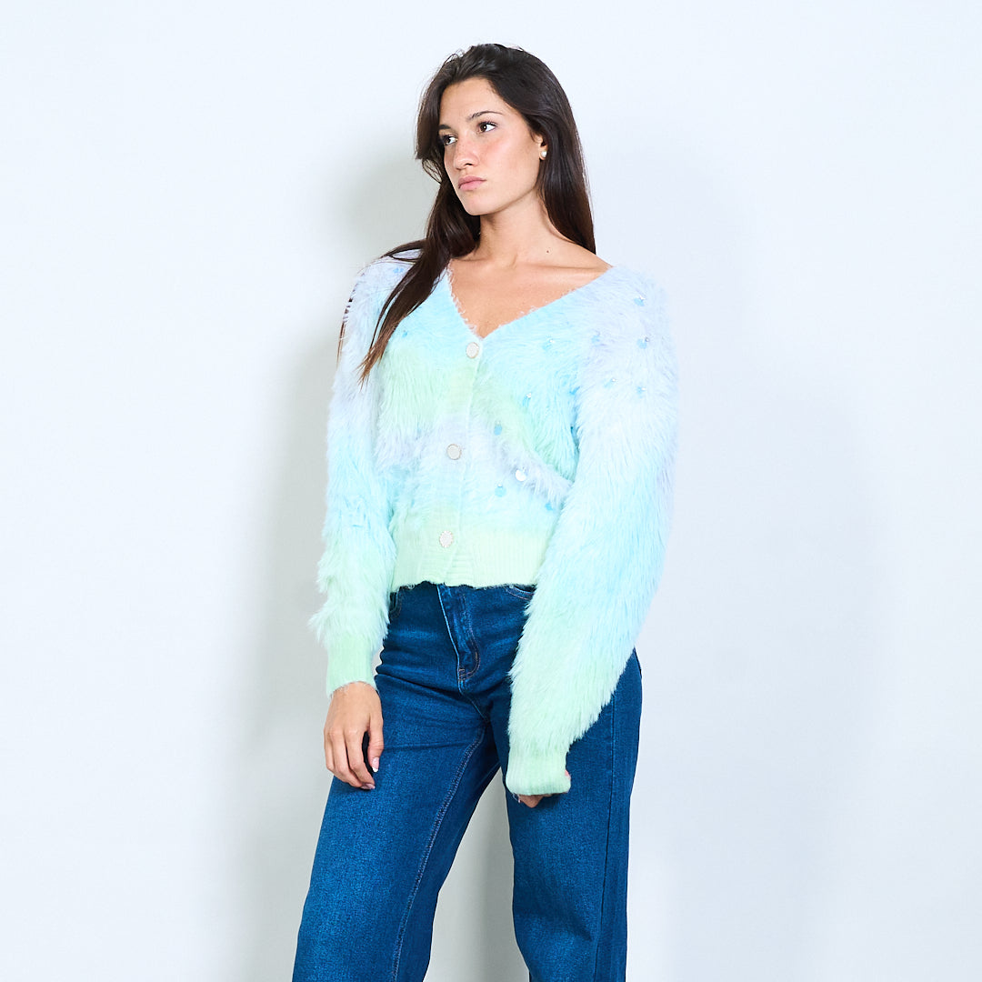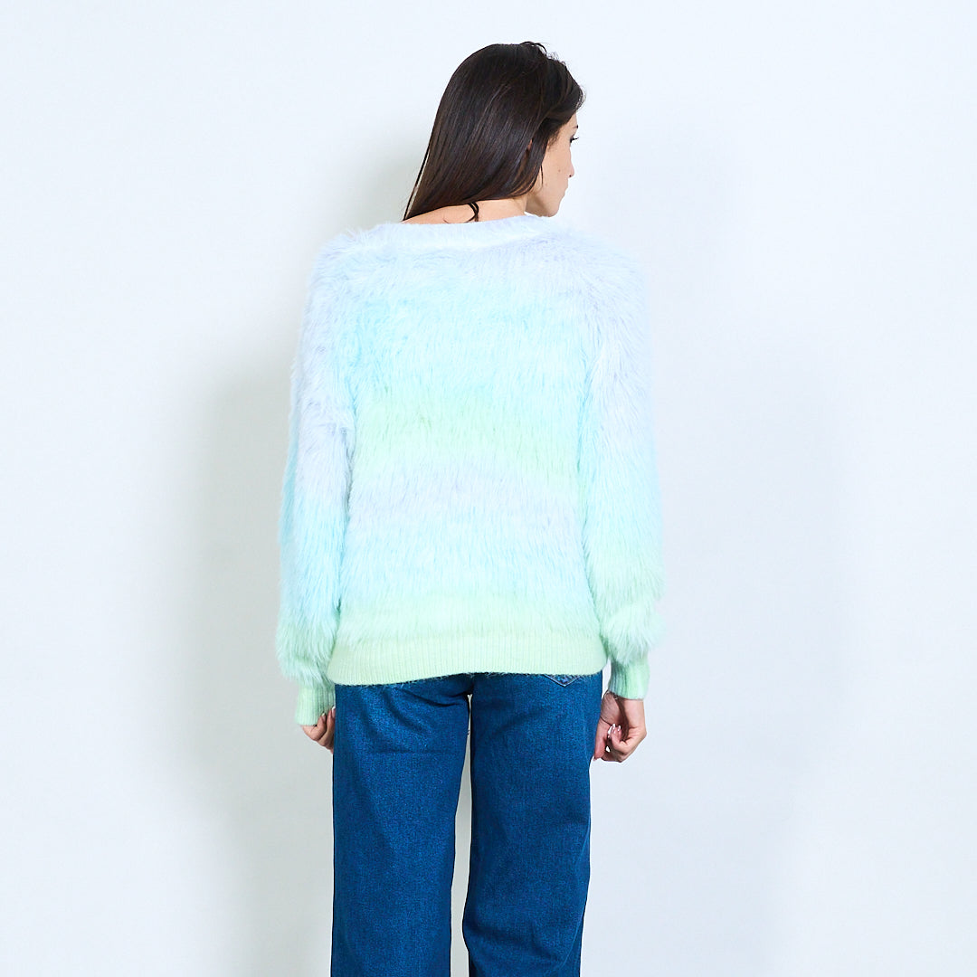 Пухкав градиент плетен жилетка на едро
