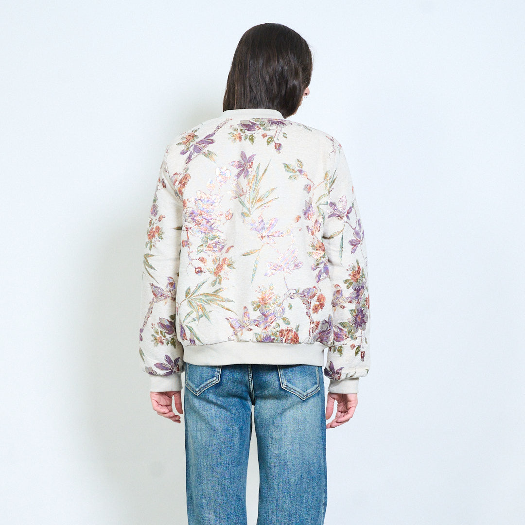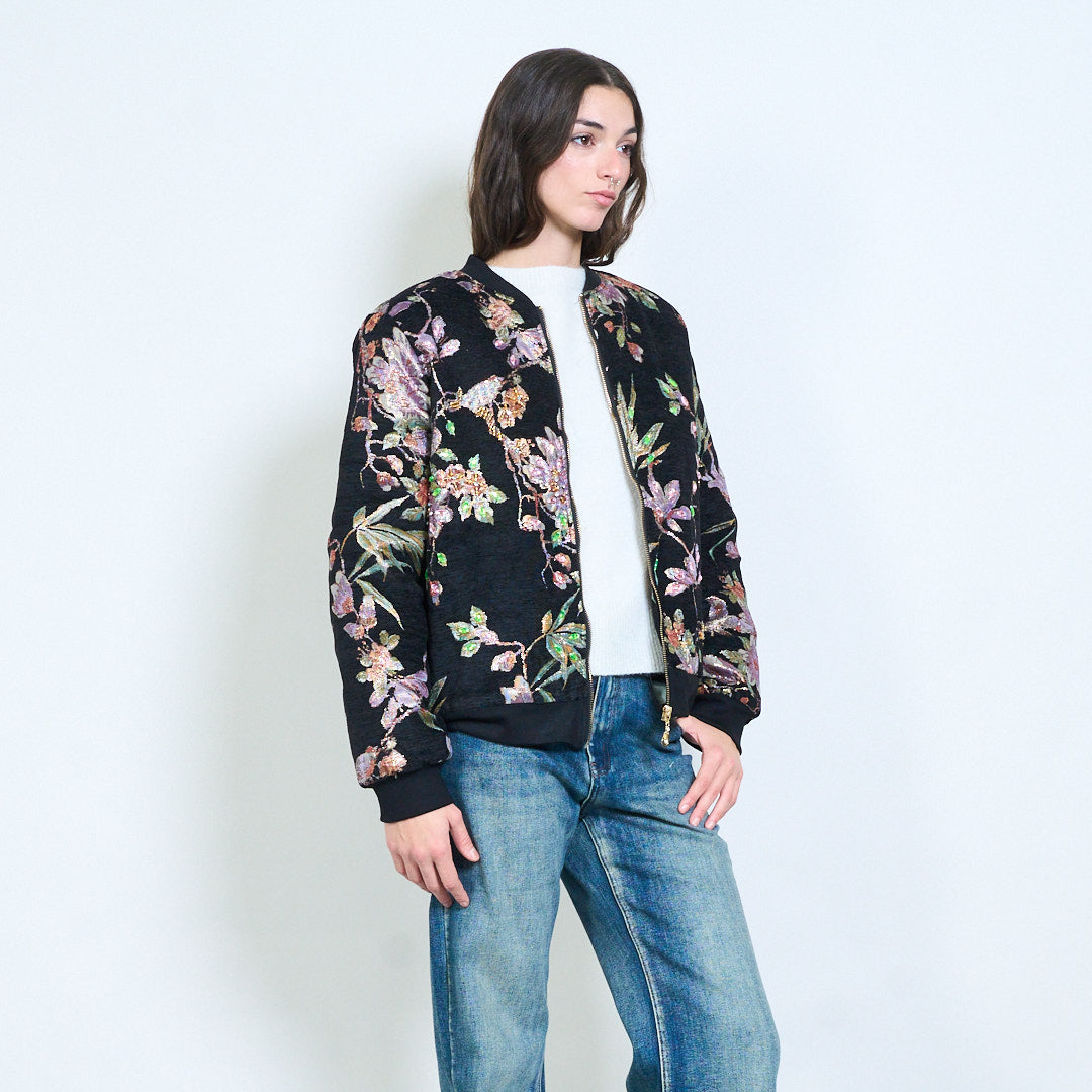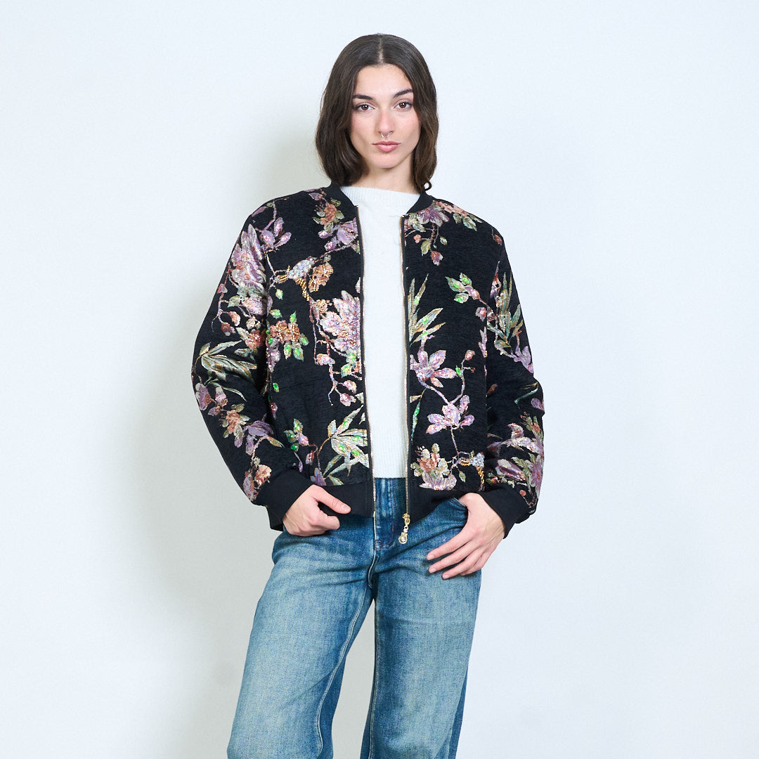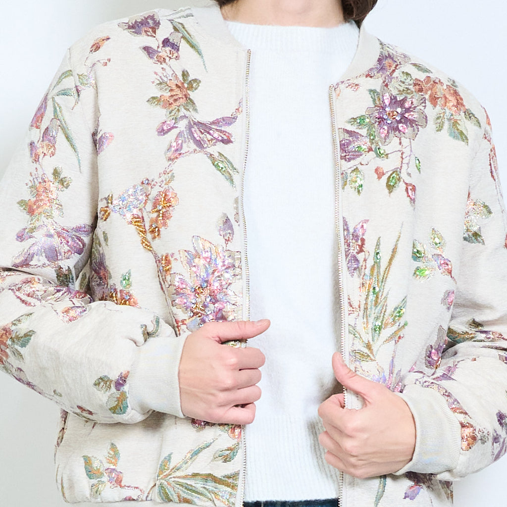 Ботаническо яке с цип, украсено с флорални пайети на едро