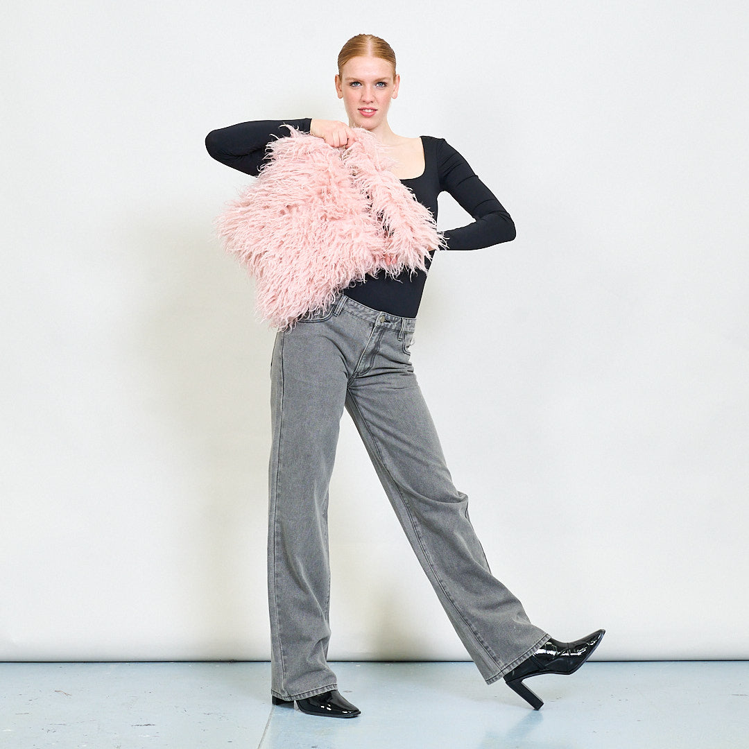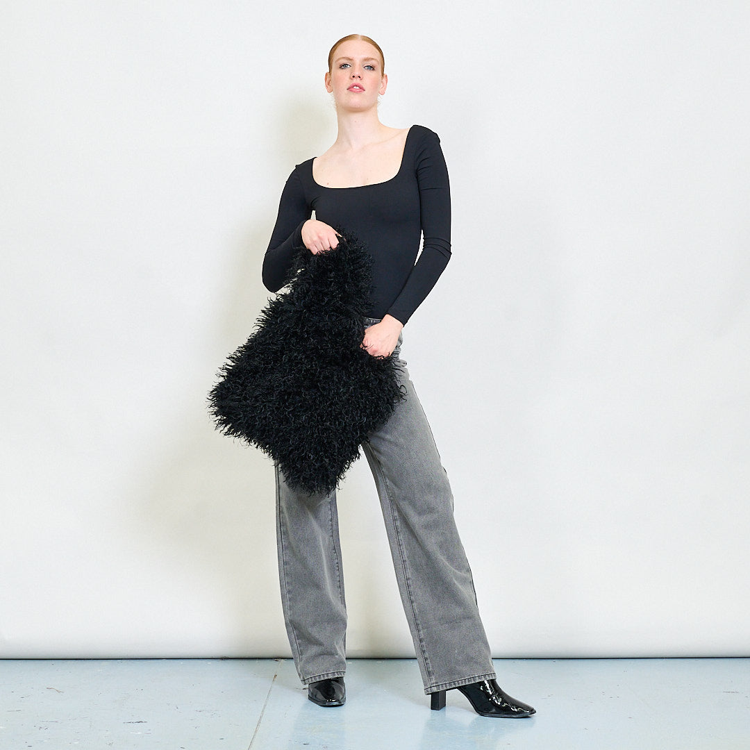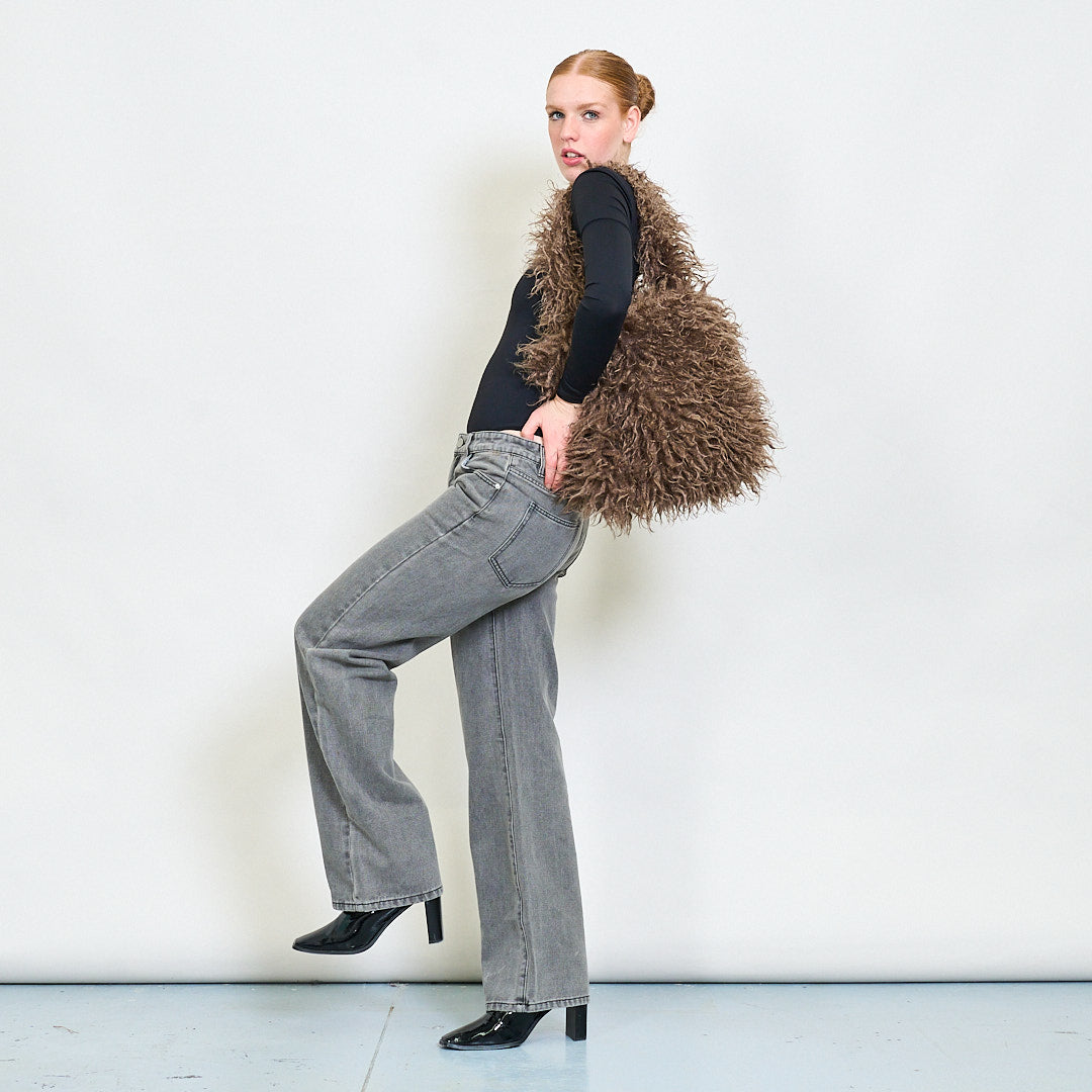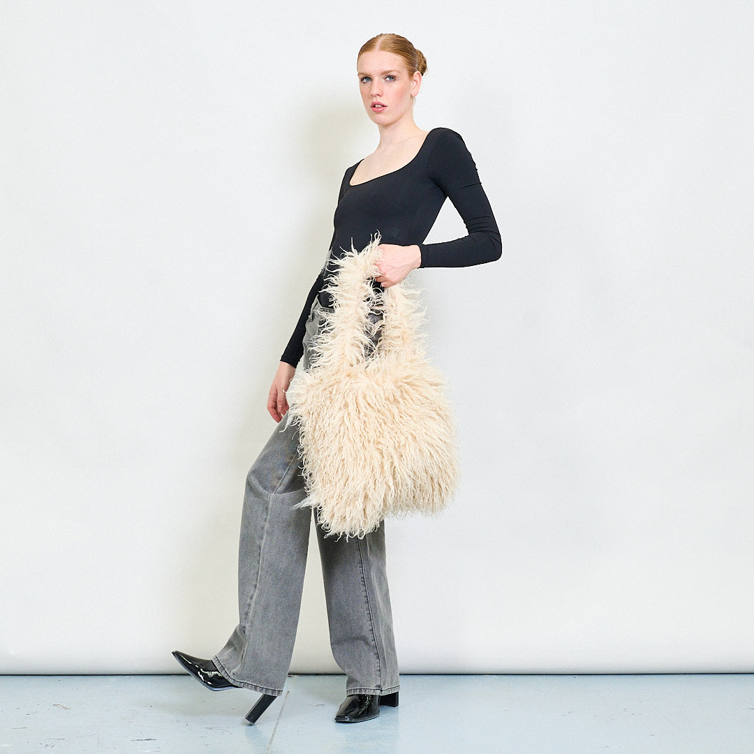 Шагираща торба с изкуствена козина с усукани дръжки в различни цветове на едро