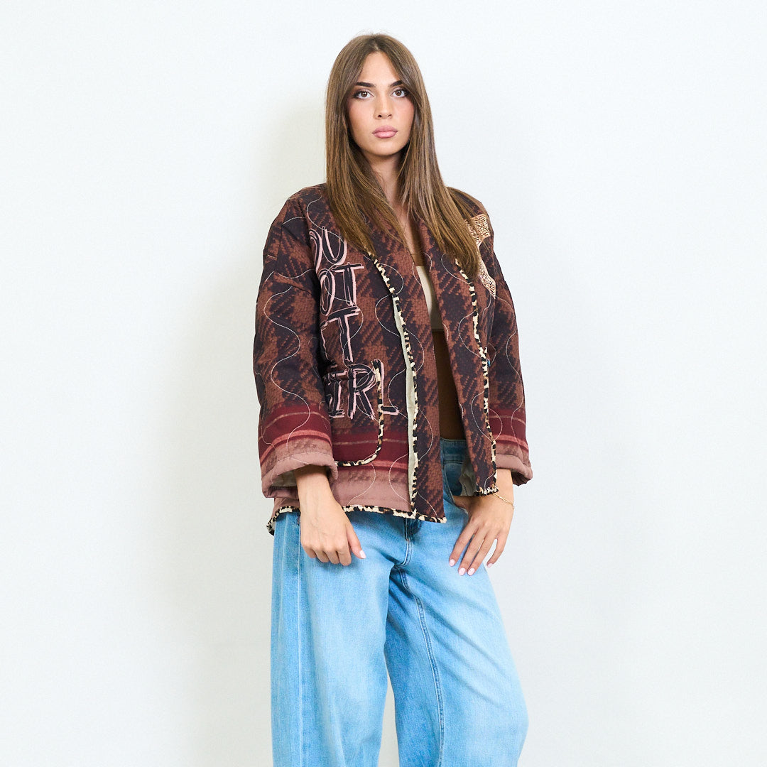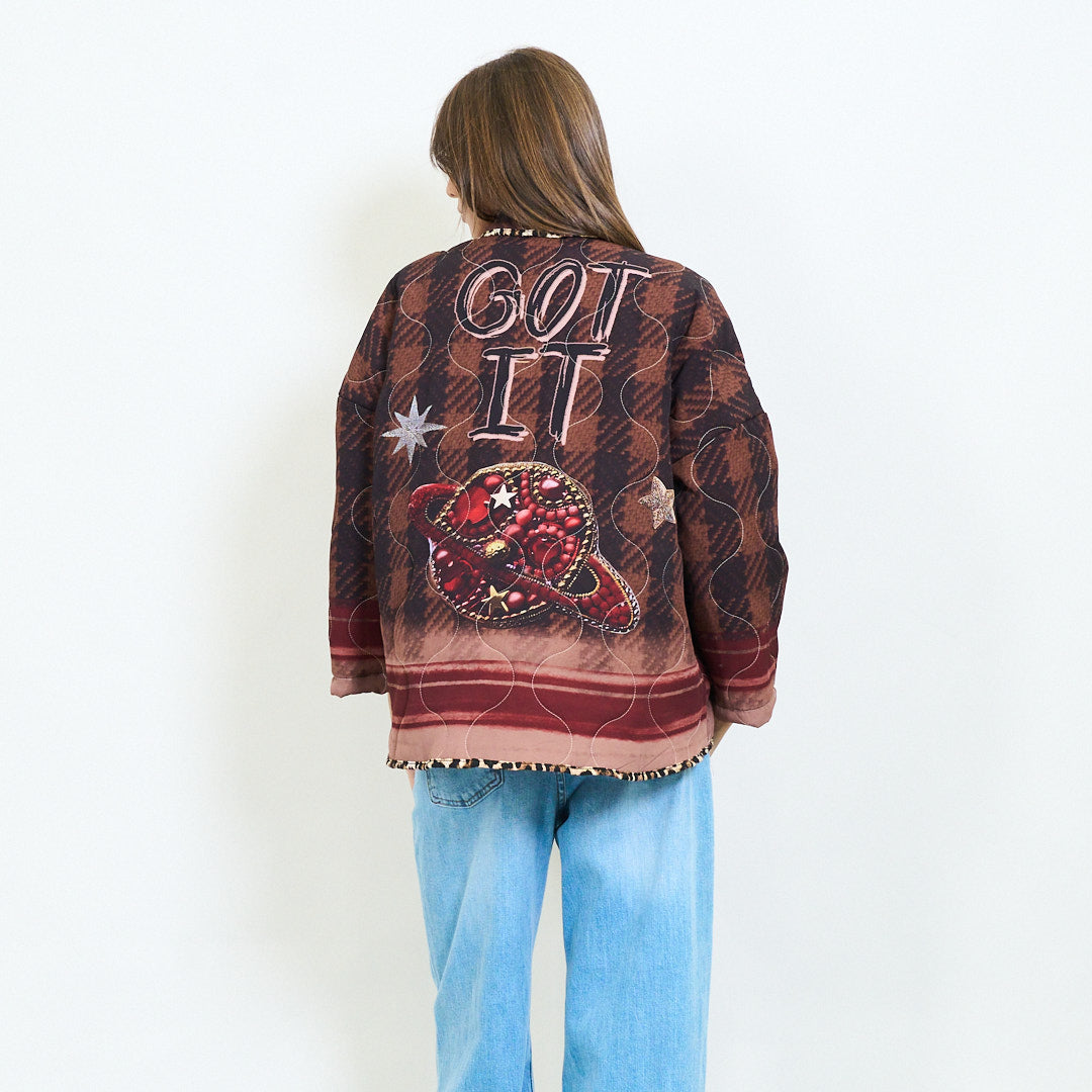 Кариран бродиран „Ти си го получил момиче“ яке на едро
