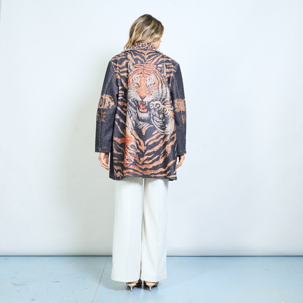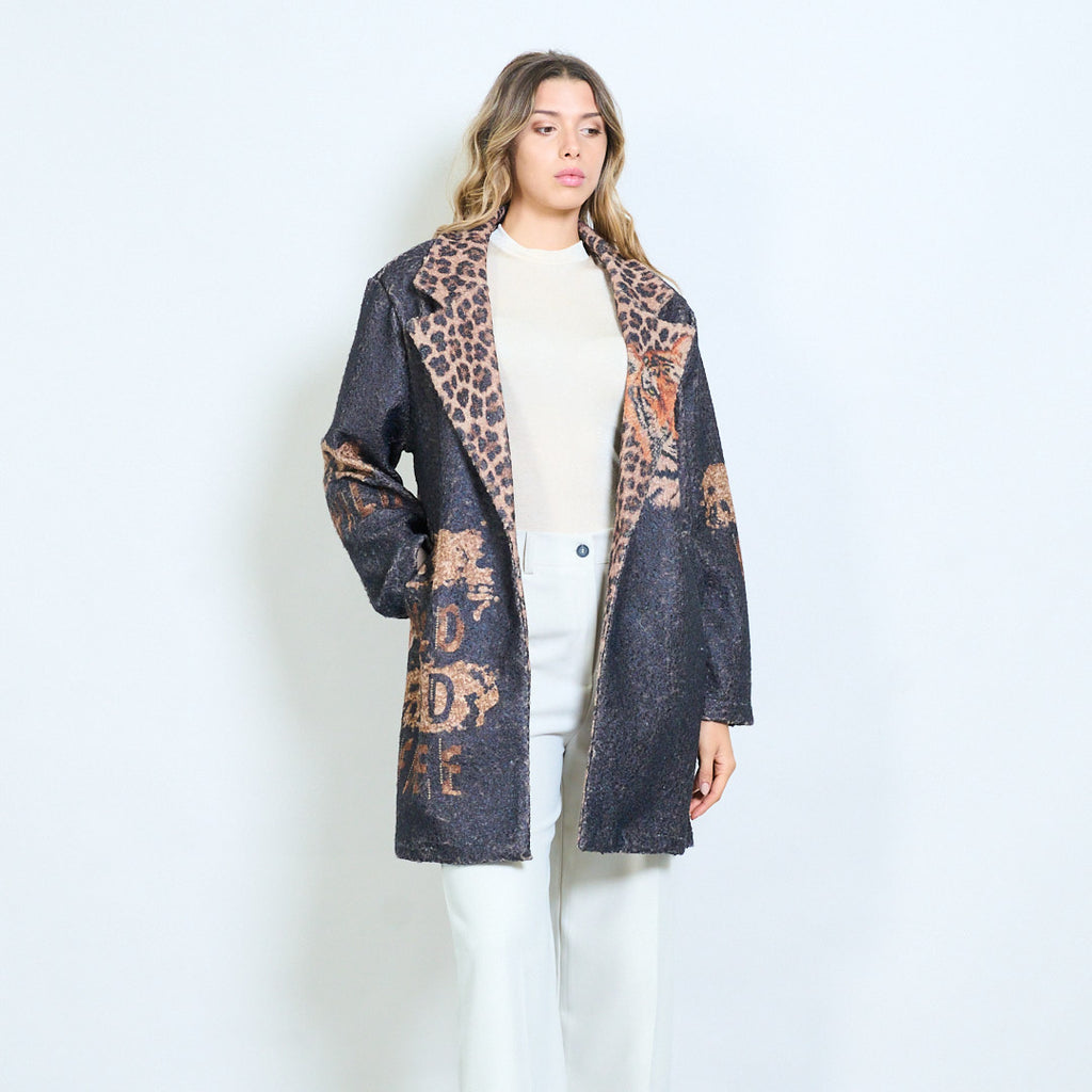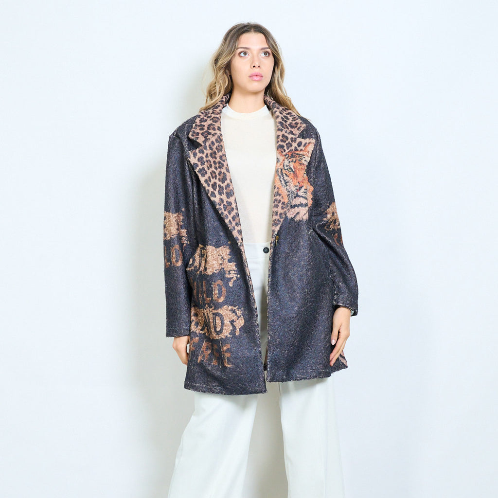 Леопардова яка Тигър Графичен "Жив див и безплатен" отпечатан блейзър на едро