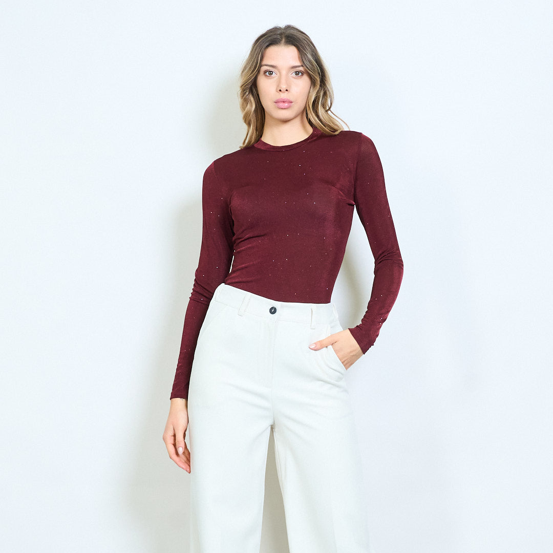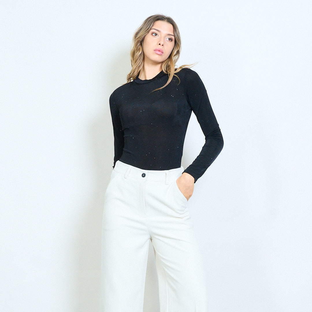 - Силует с дълъг ръкав, предлагащ опростен вид