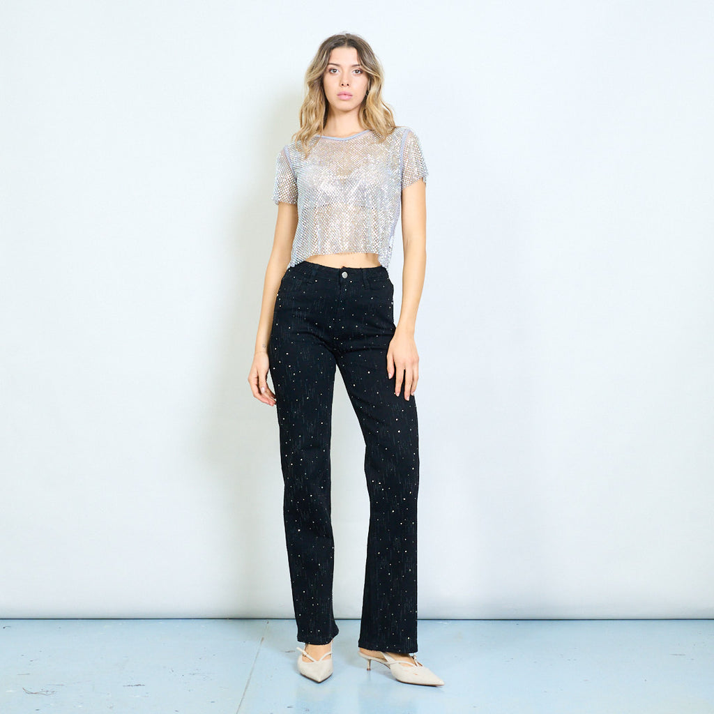 - Смел дизайн на Fishnet Mesh, създаващ дръзки ефект на прозорче