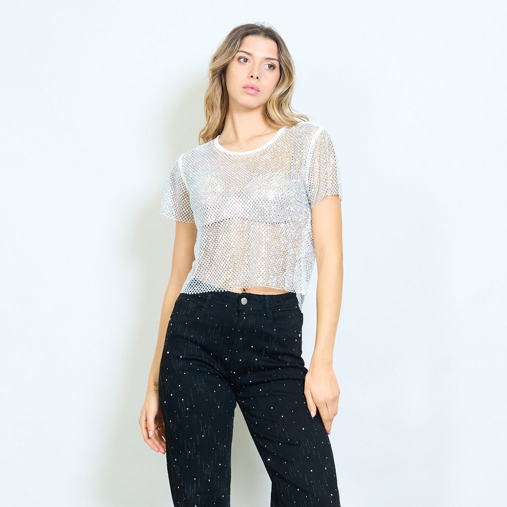 Fishnet мрежа с къс ръкав вижте през реколтата на едро