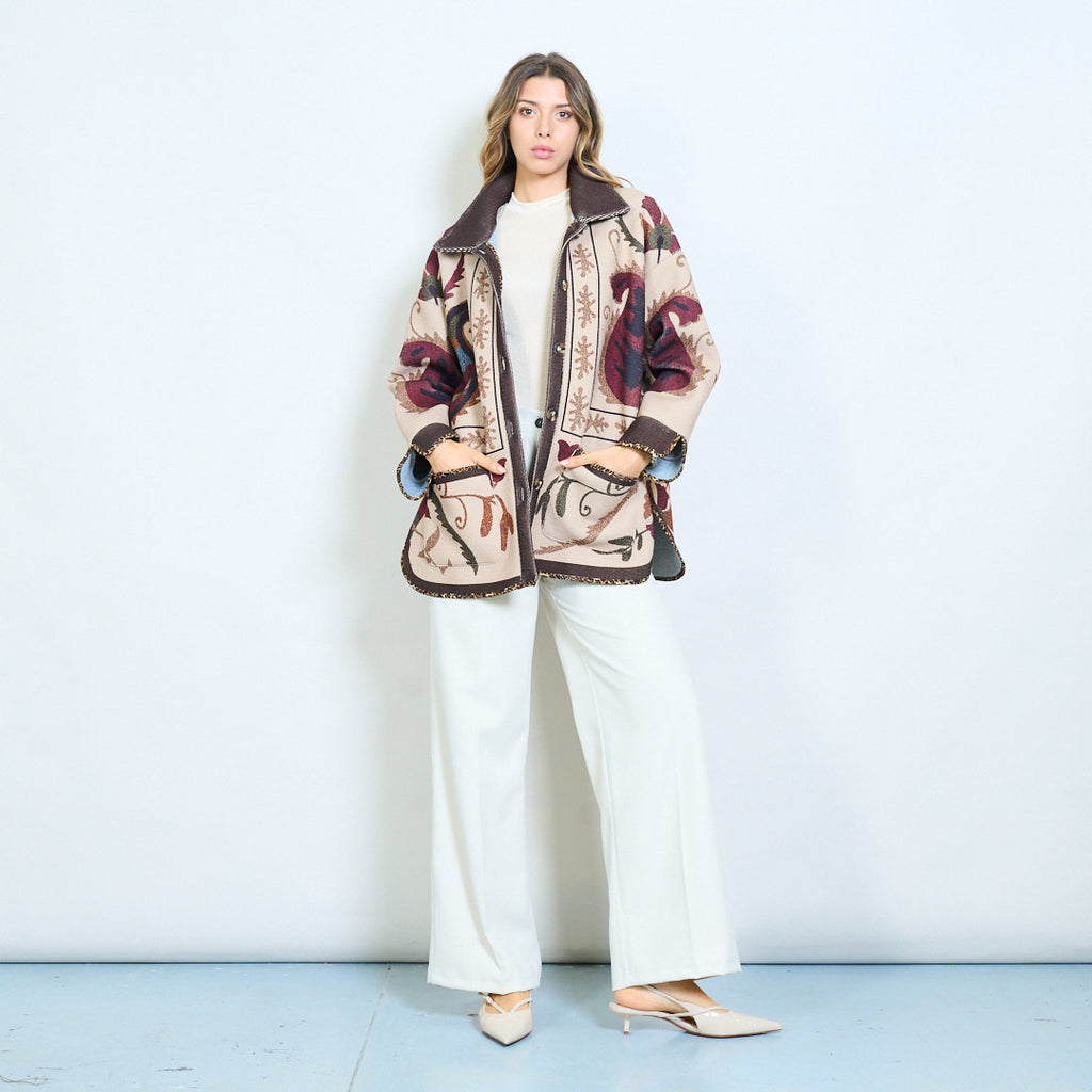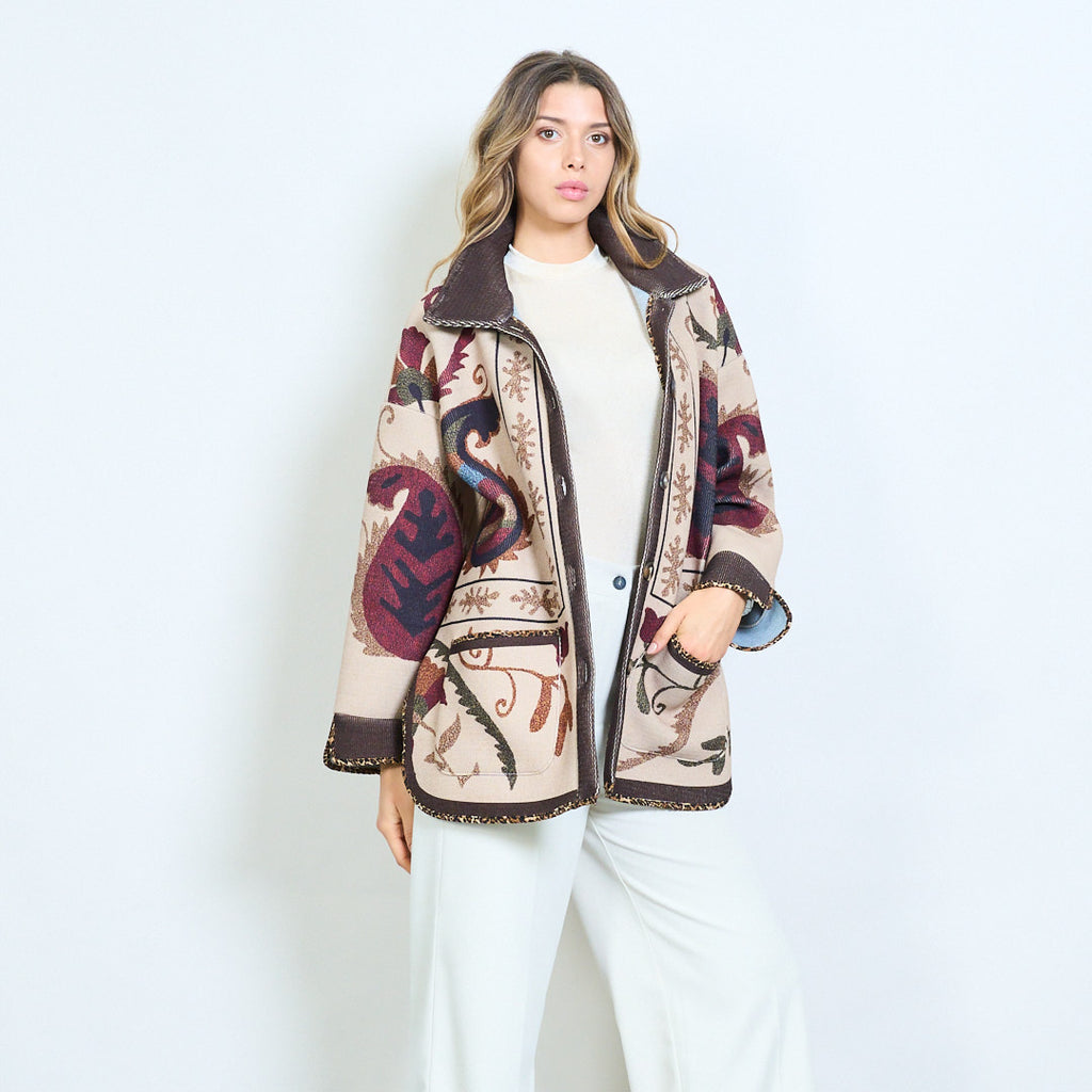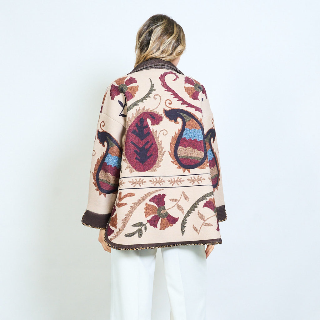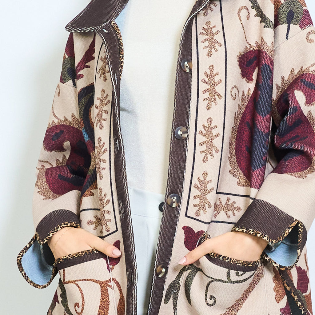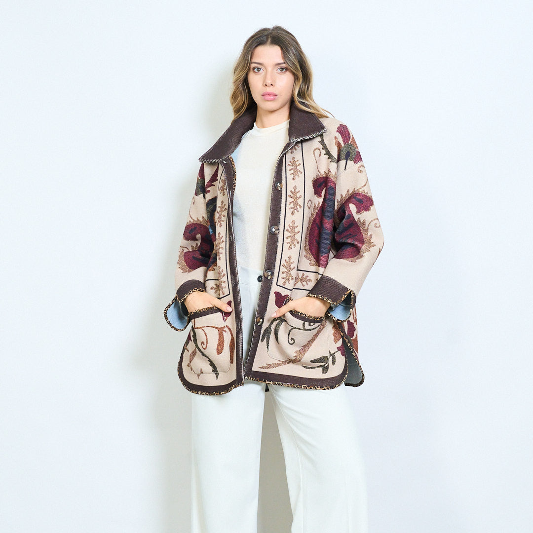 Paisley Floral Graphic Printed Button Up Knit Jacket