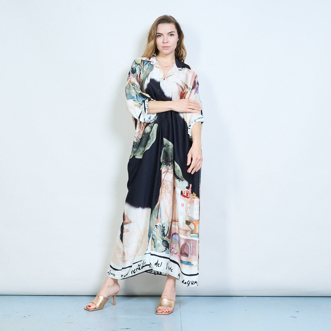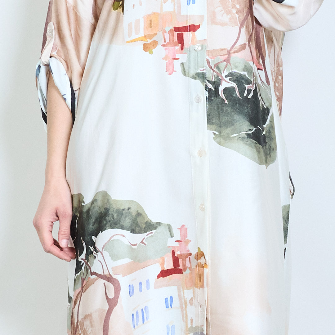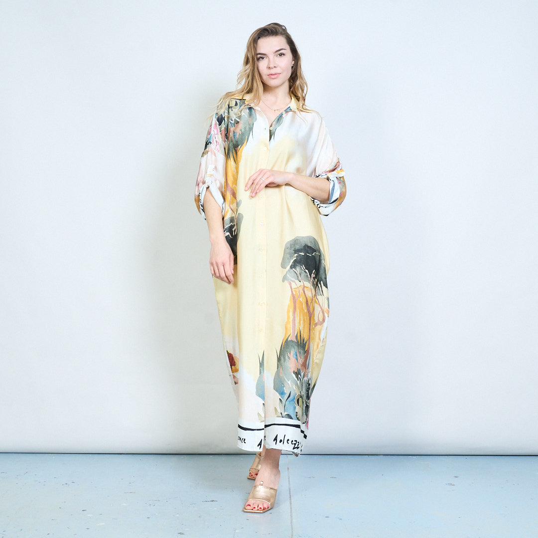 Артистична рокля с риза отпред с щампани копчета на едро