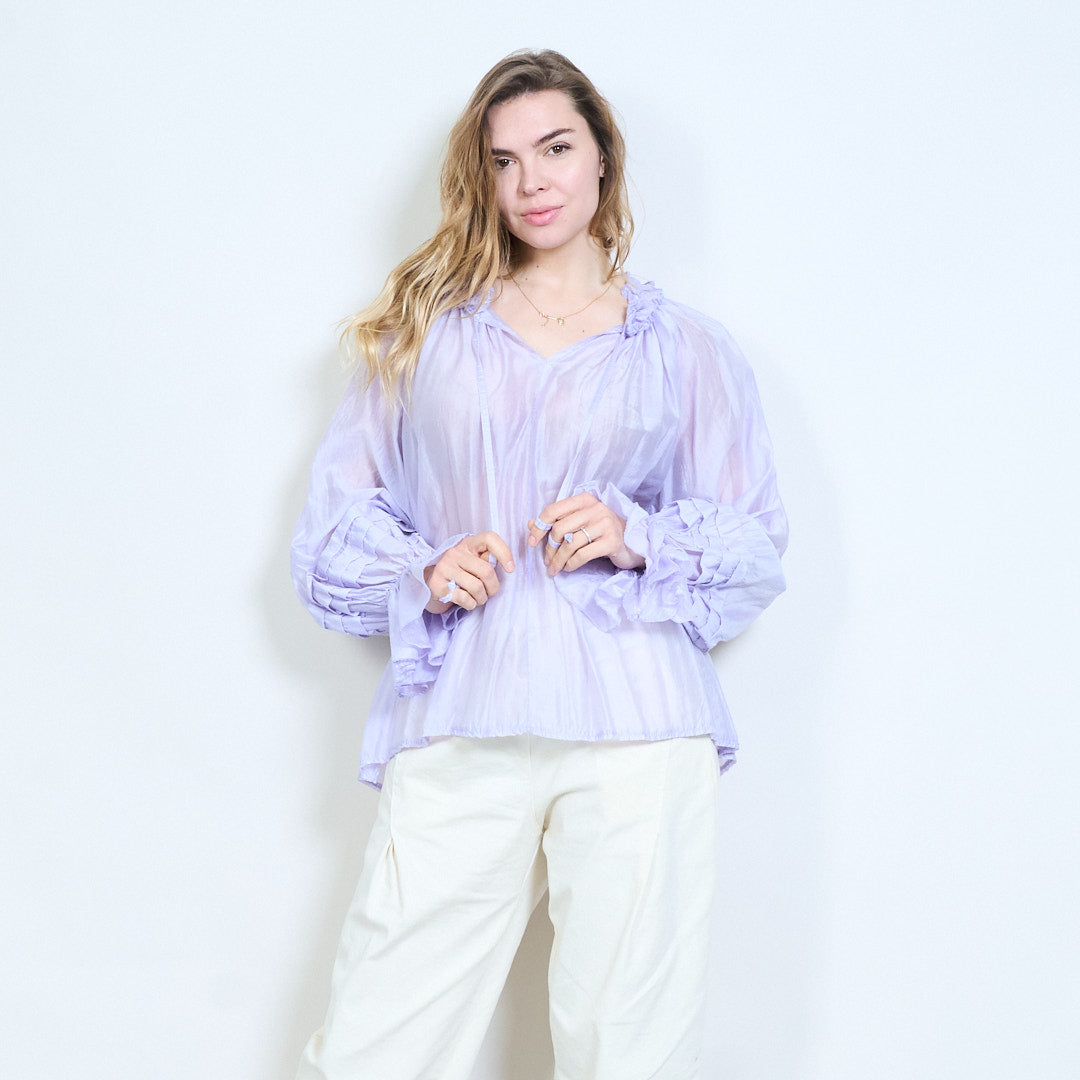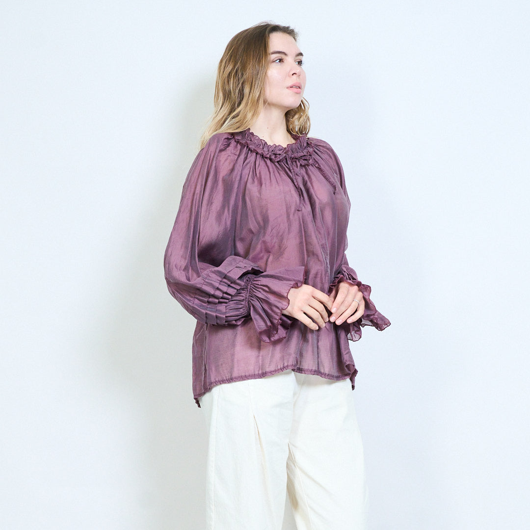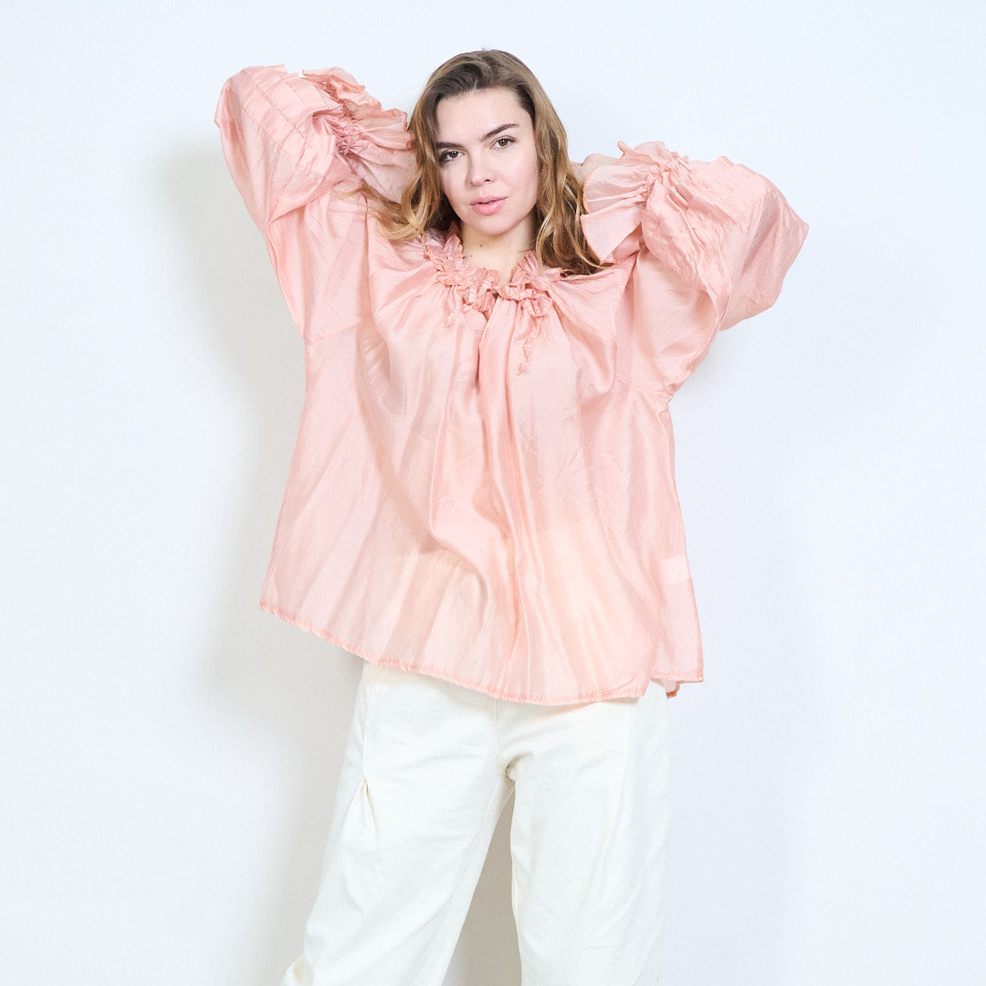 - Дълги ръкави, завършени с набрани маншети за допълнителна форма