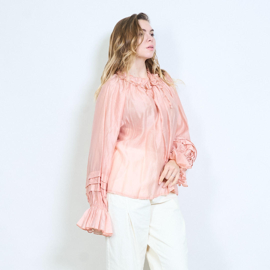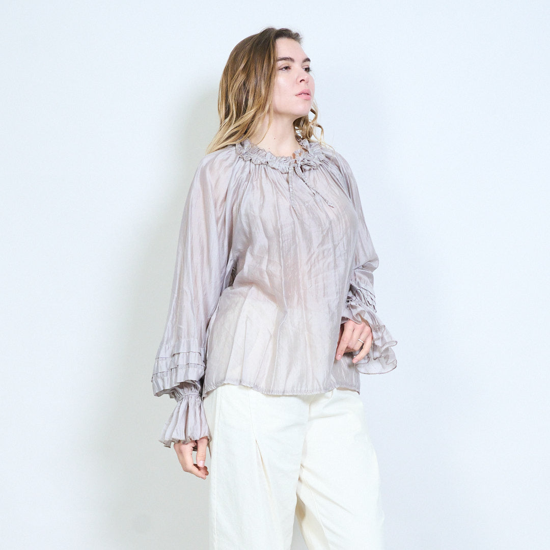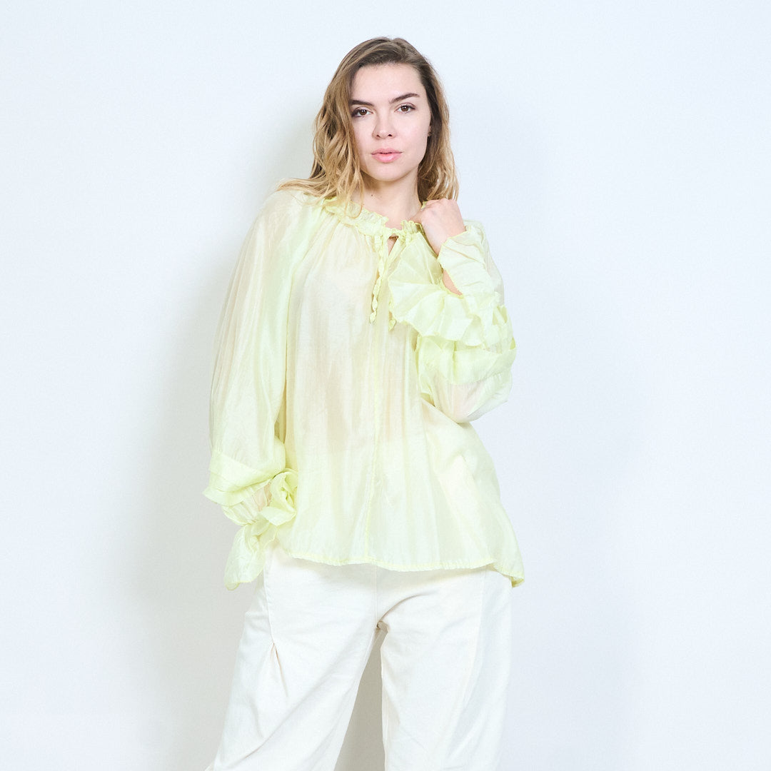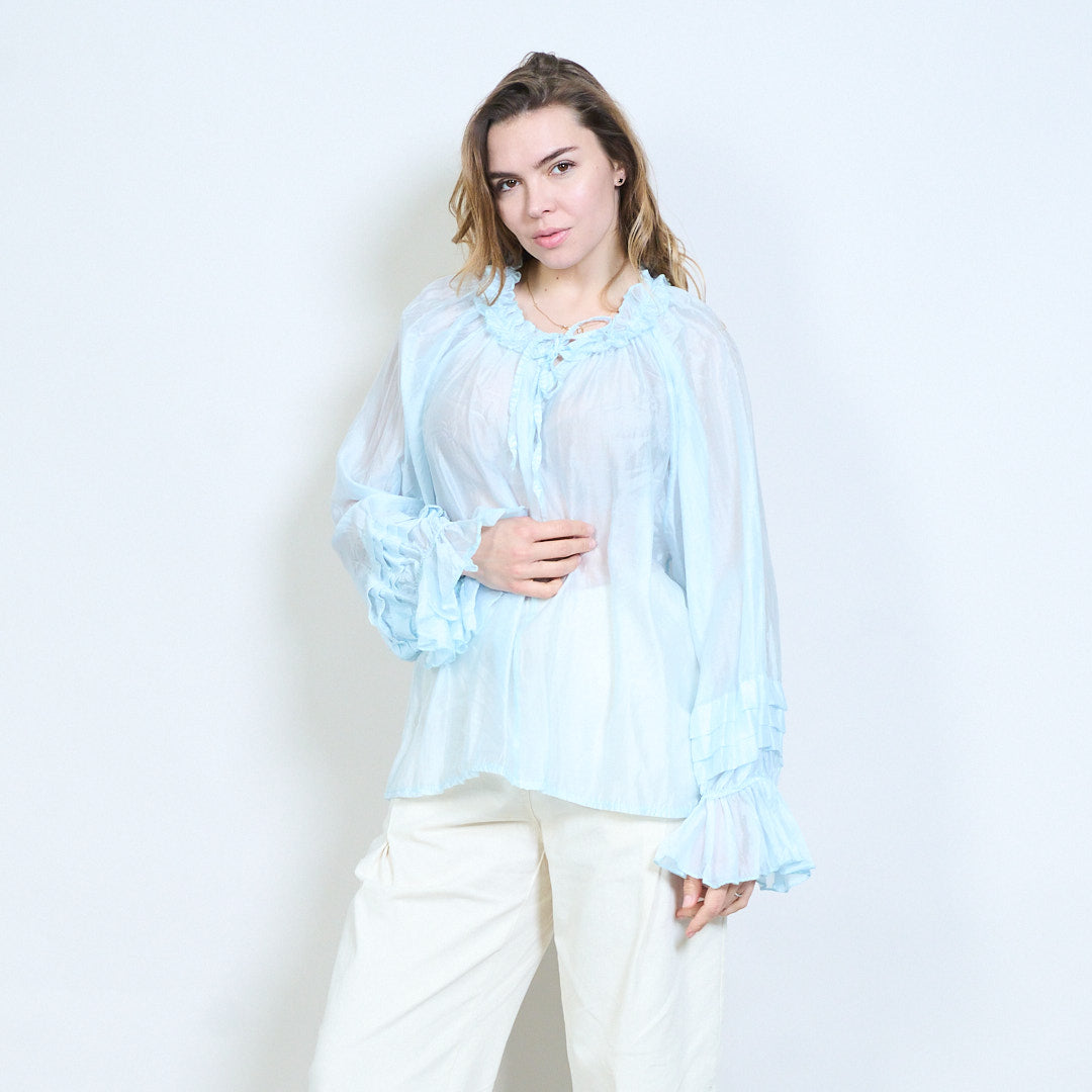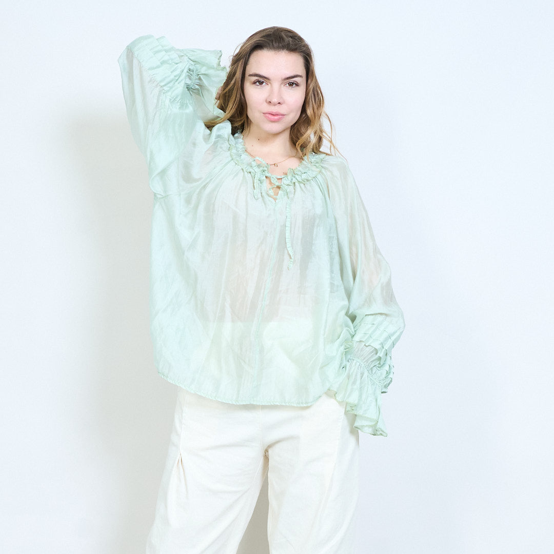 Прозрачна блуза с дълги ръкави с вратовръзка с волани на едро