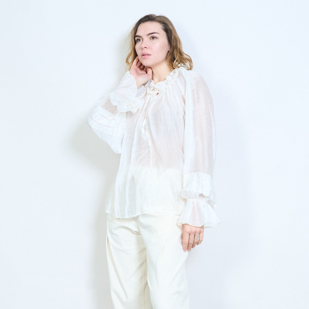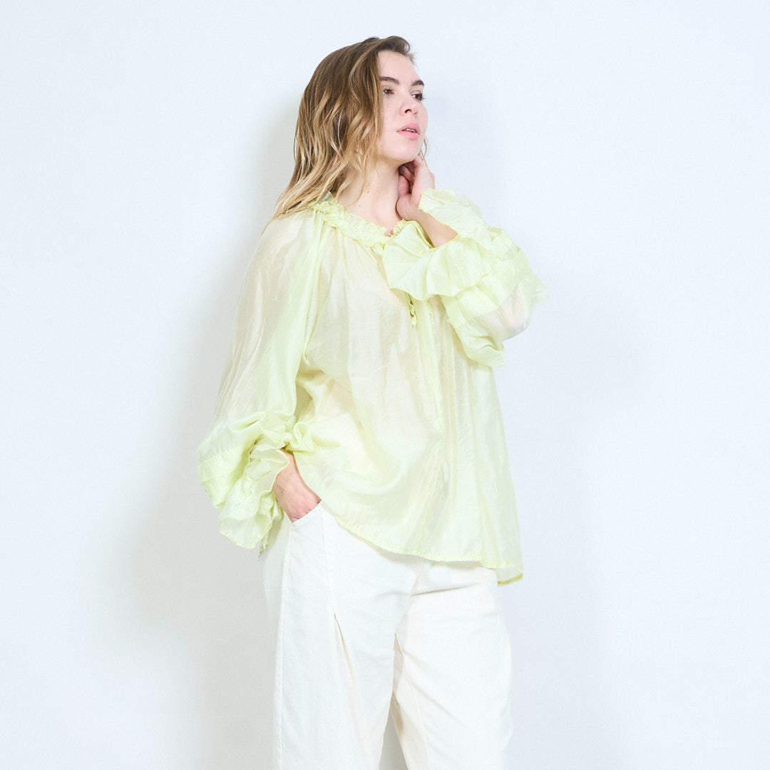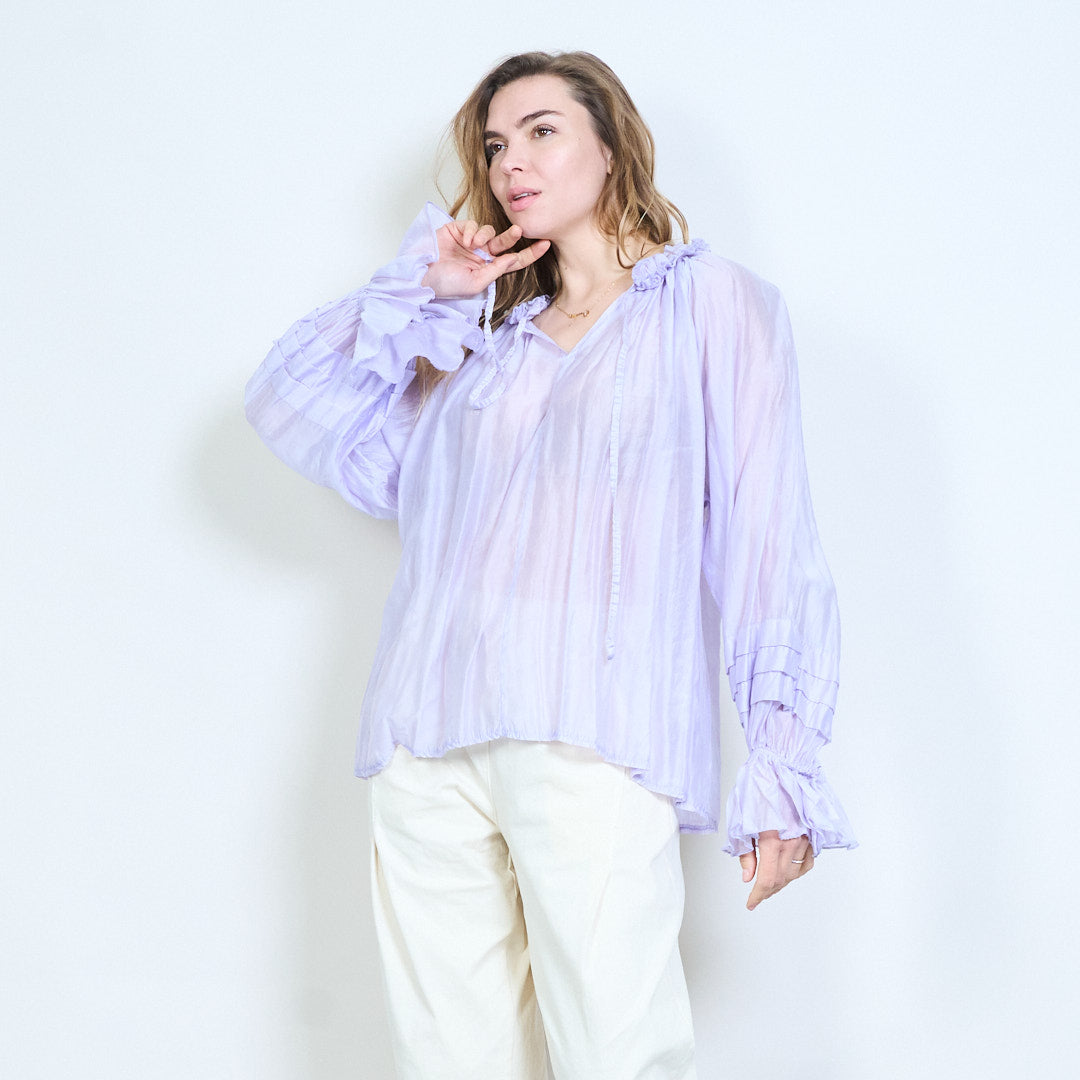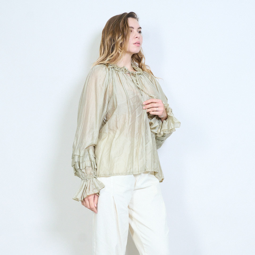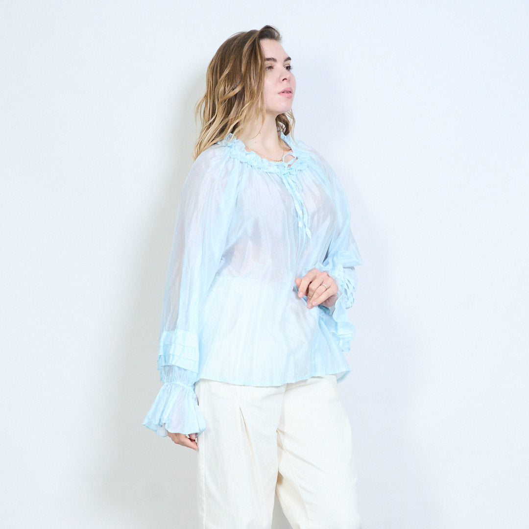 Прозрачна блуза с дълги ръкави с вратовръзка с волани на едро