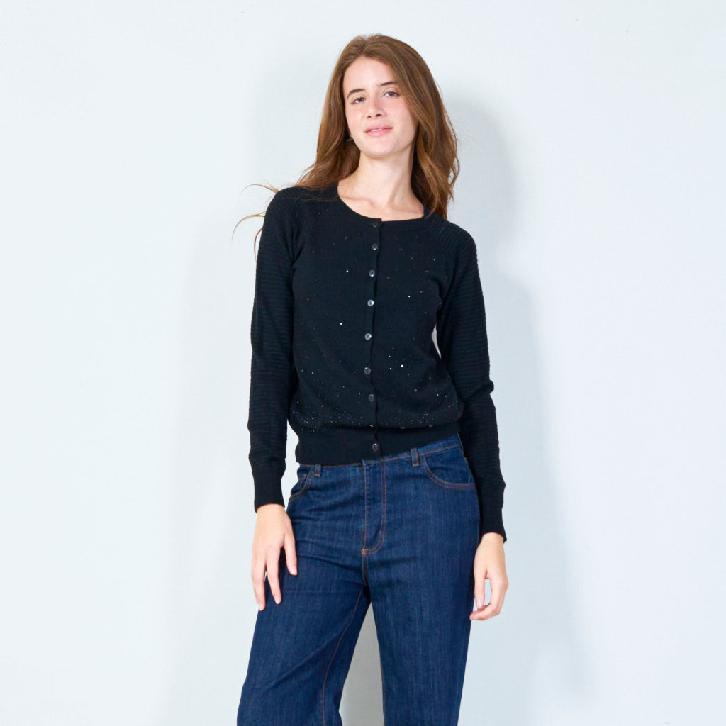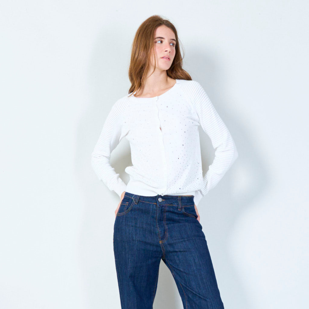• Текстурирани плетени детайли върху раменете и ръкавите