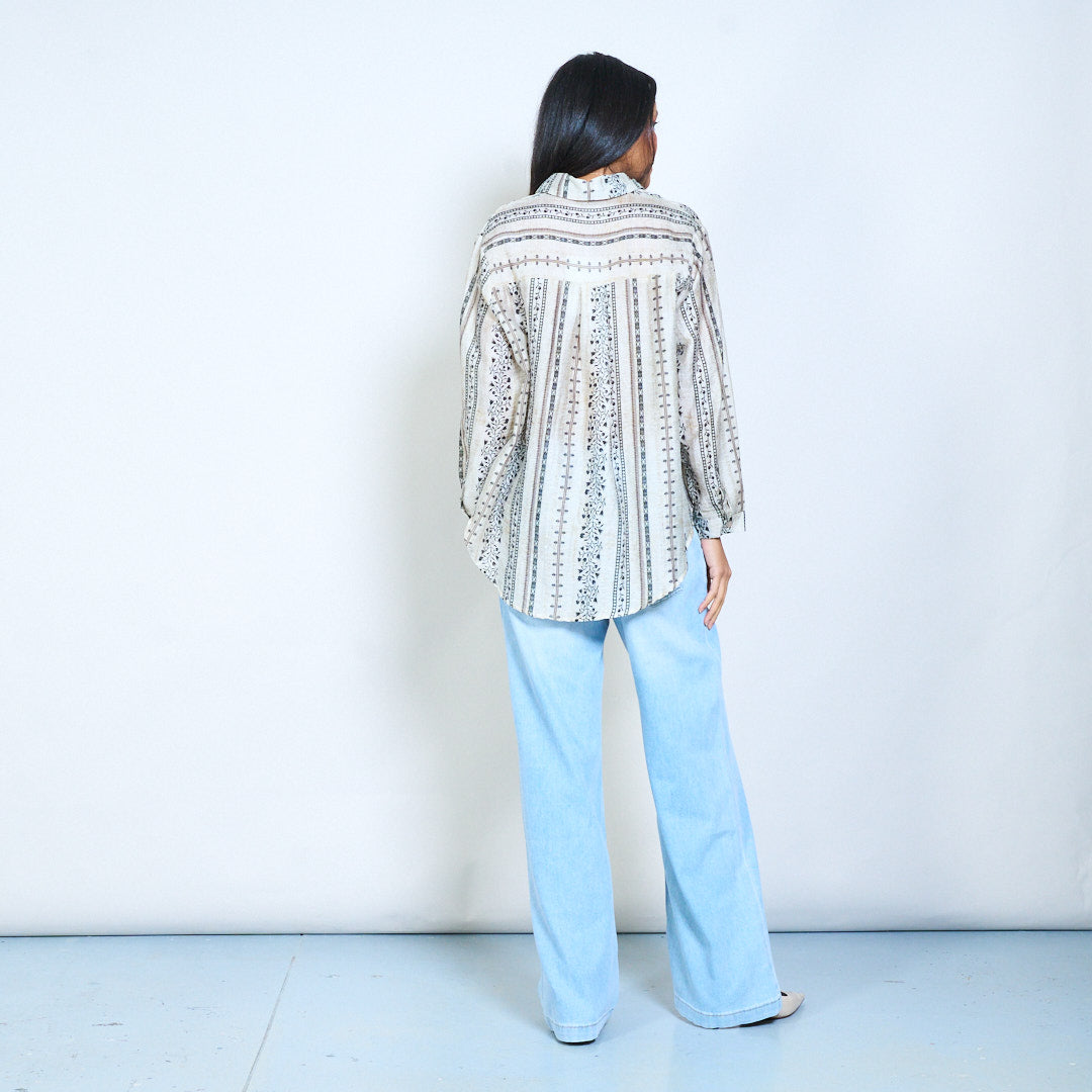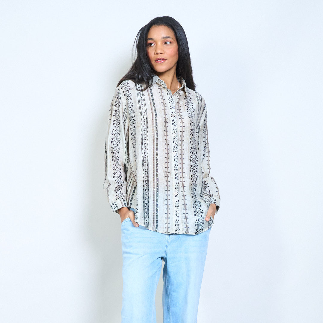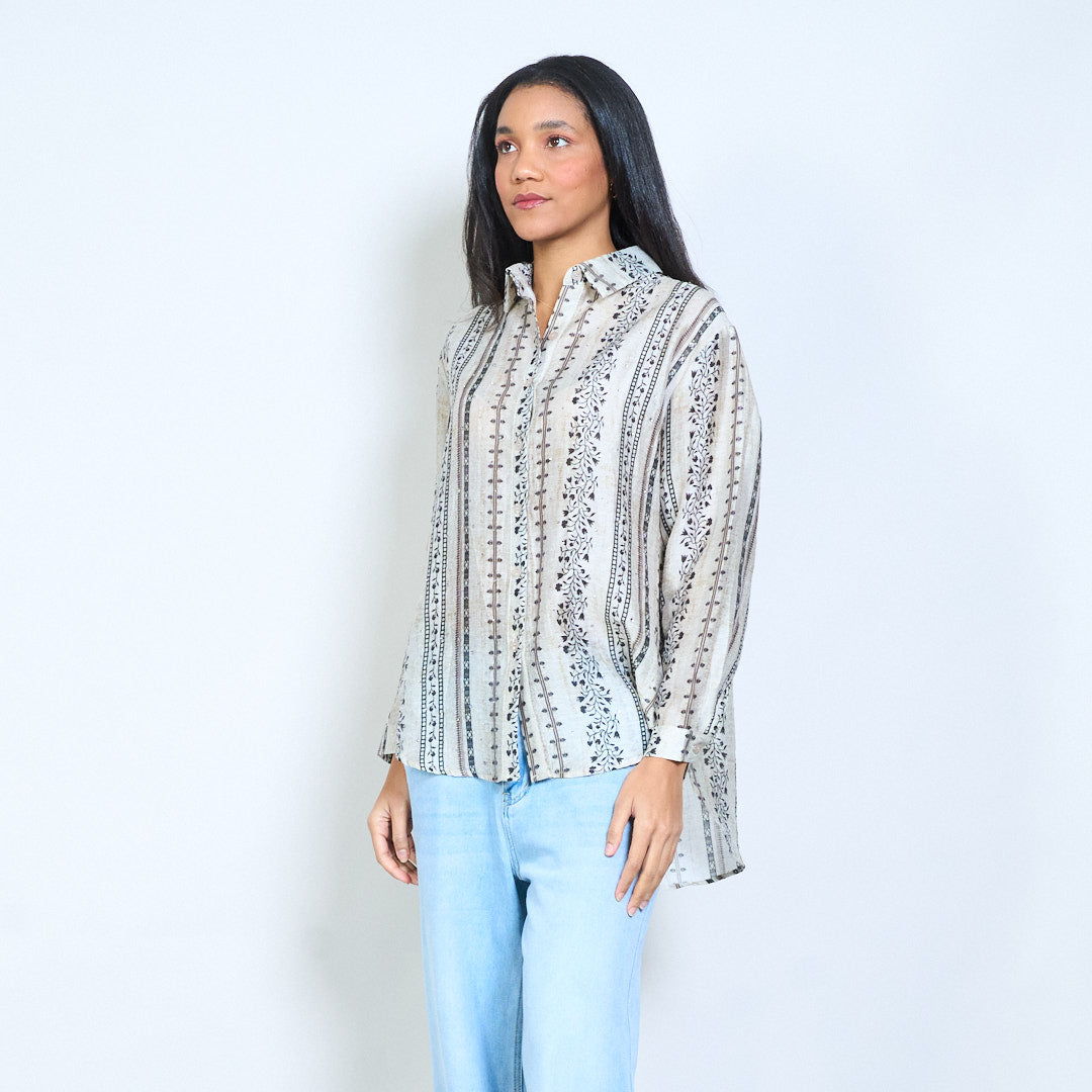 Риза на флорални райета с копчета отпред с класическа яка и дълги ръкави на едро