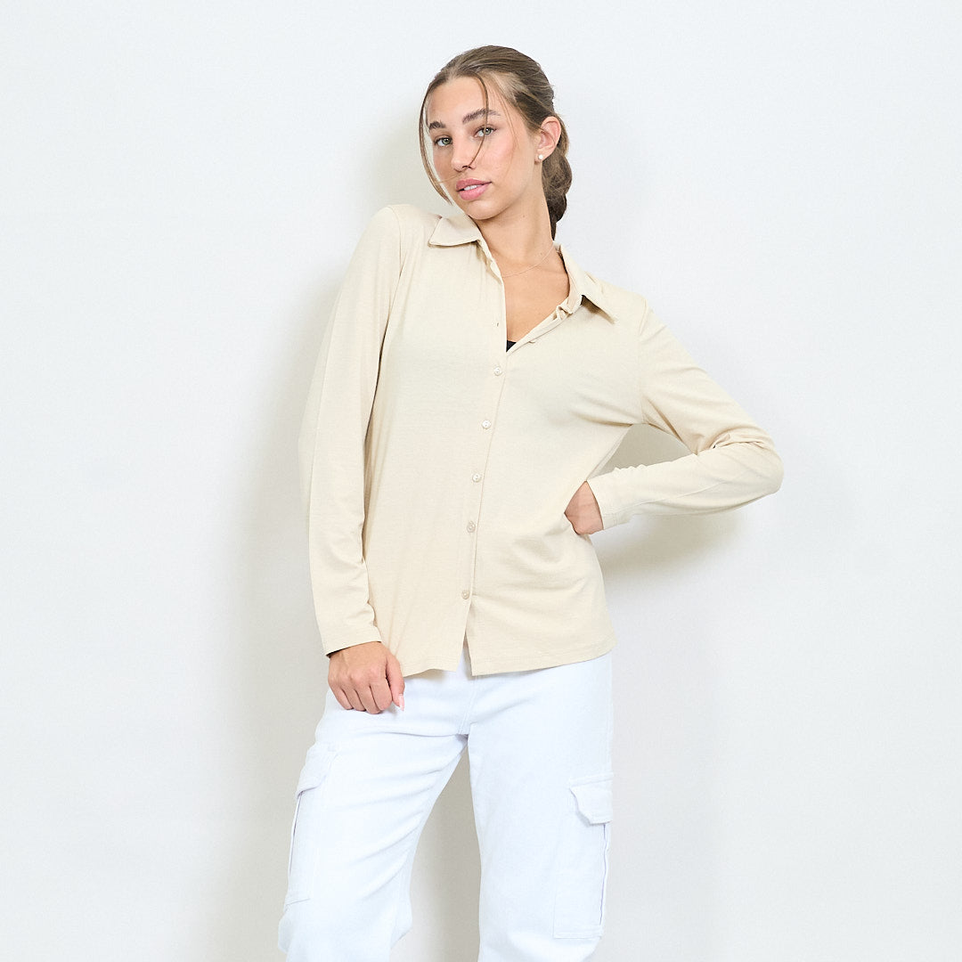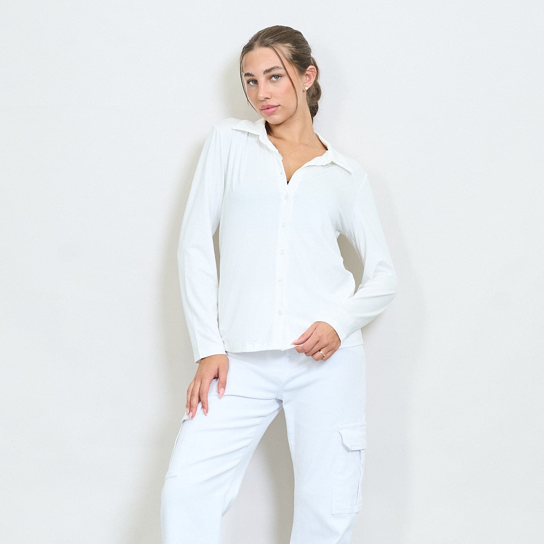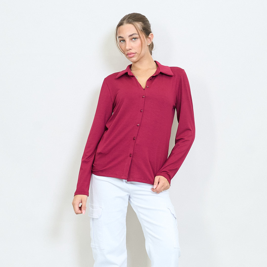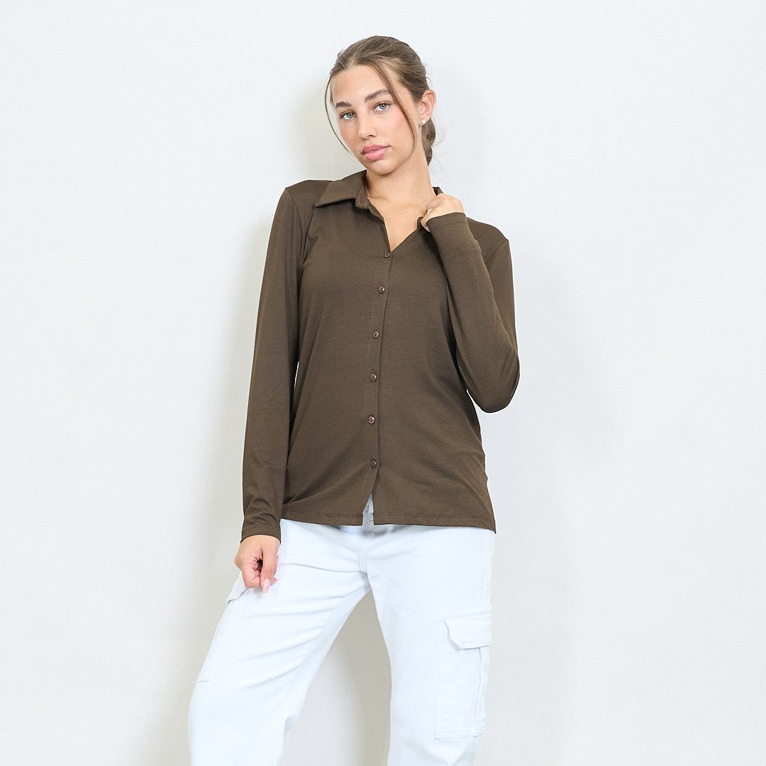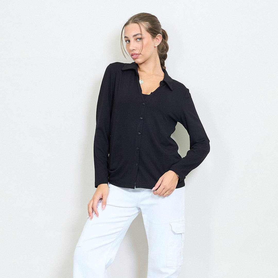 Блуза за минимални разтягащи се бутони с класическа яка на едро